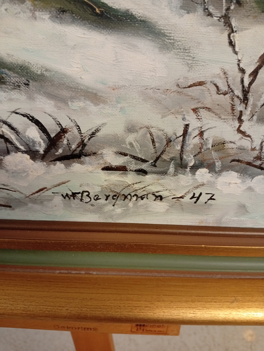Bilder OIDENTIFIERAD KONSTNÄR. Olja på duk, signerad W. Bergman & daterad -47