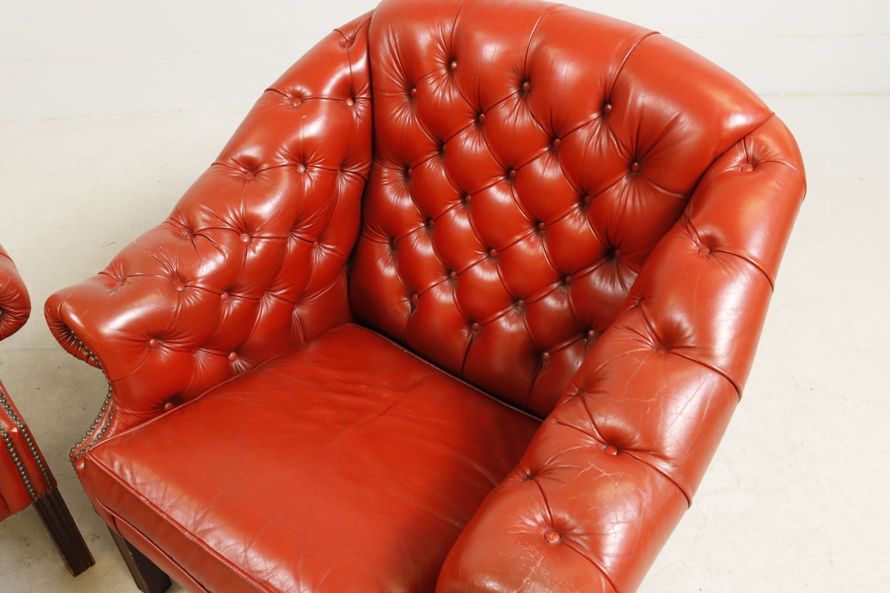 Fåtöljer, 1 par, rött skinn