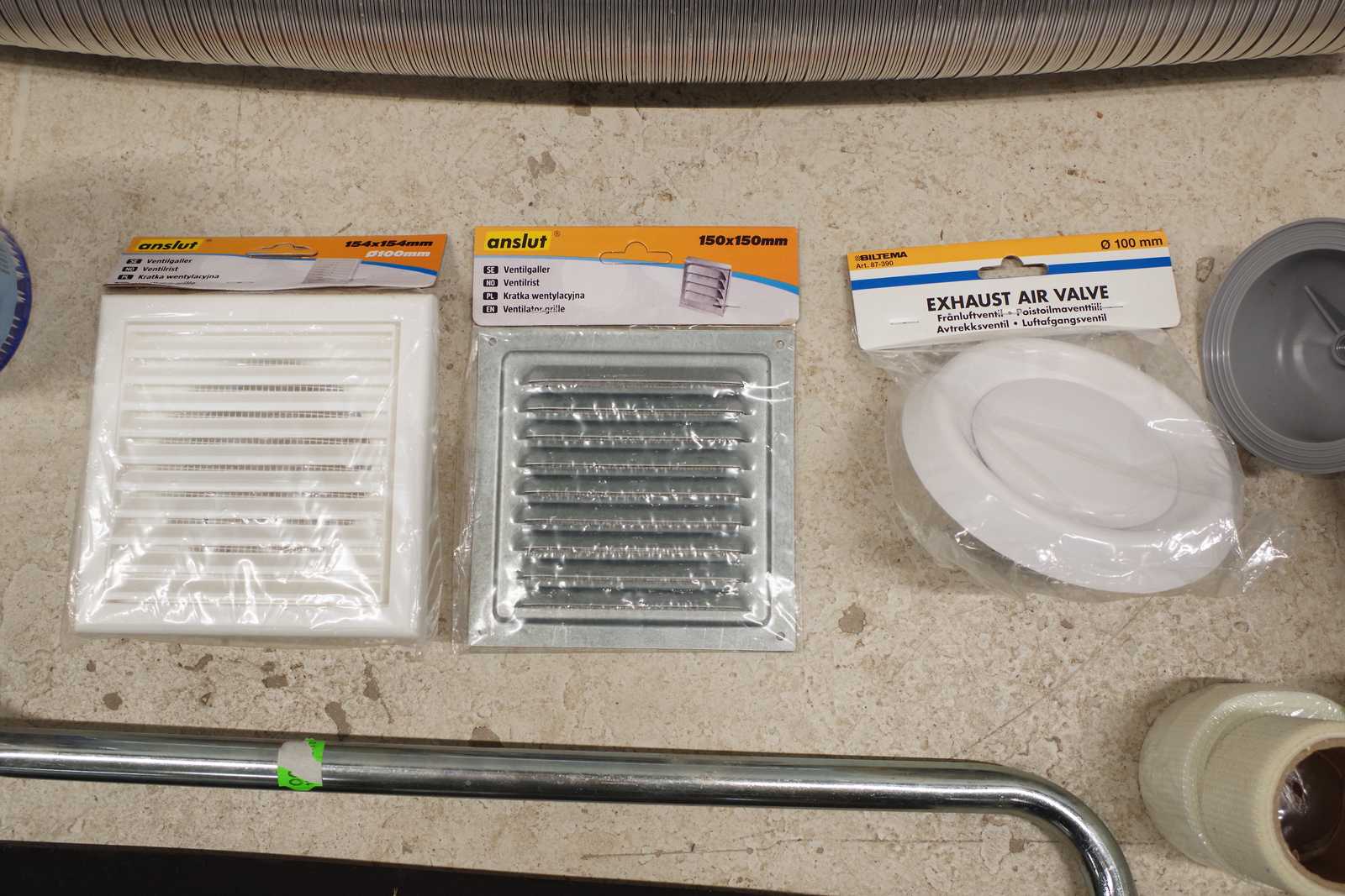 parti DIVERSE, bl.a. ventilgaller & glasfiberremsor, nyskick/oanvända