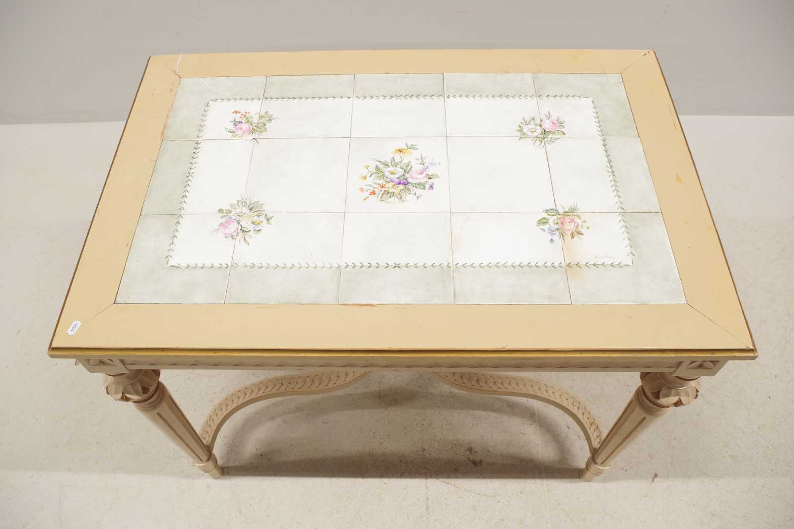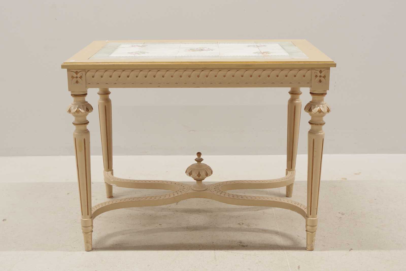 SALONGSBORD, gustaviansk stil med kakelplattor, H: 71x 92x 60cm (bruksslitage, en kakelplatta trasig)