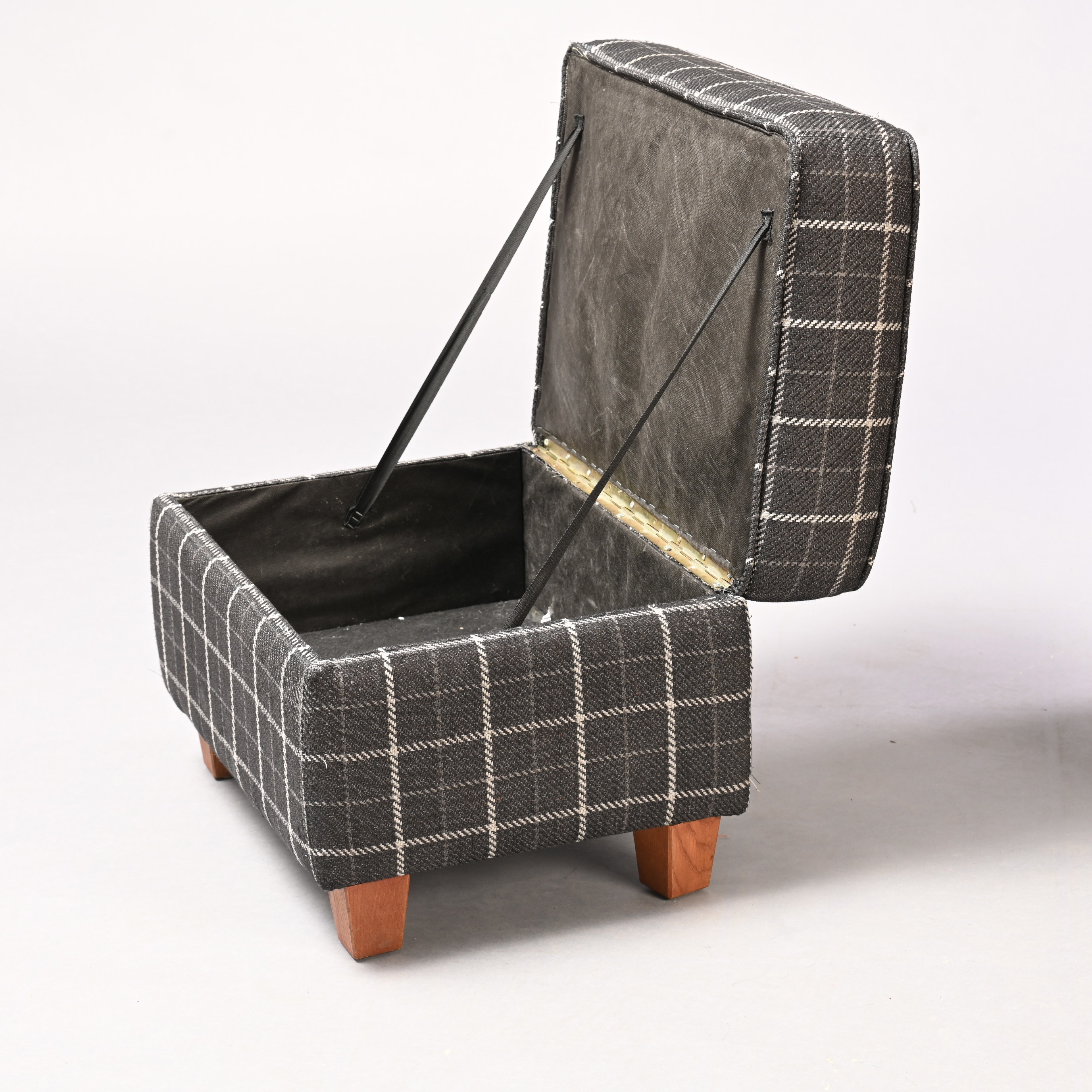 Klädd i rutig textil, fotpall med förvaring, sitthöjd 46, totalhöjd 97 cm