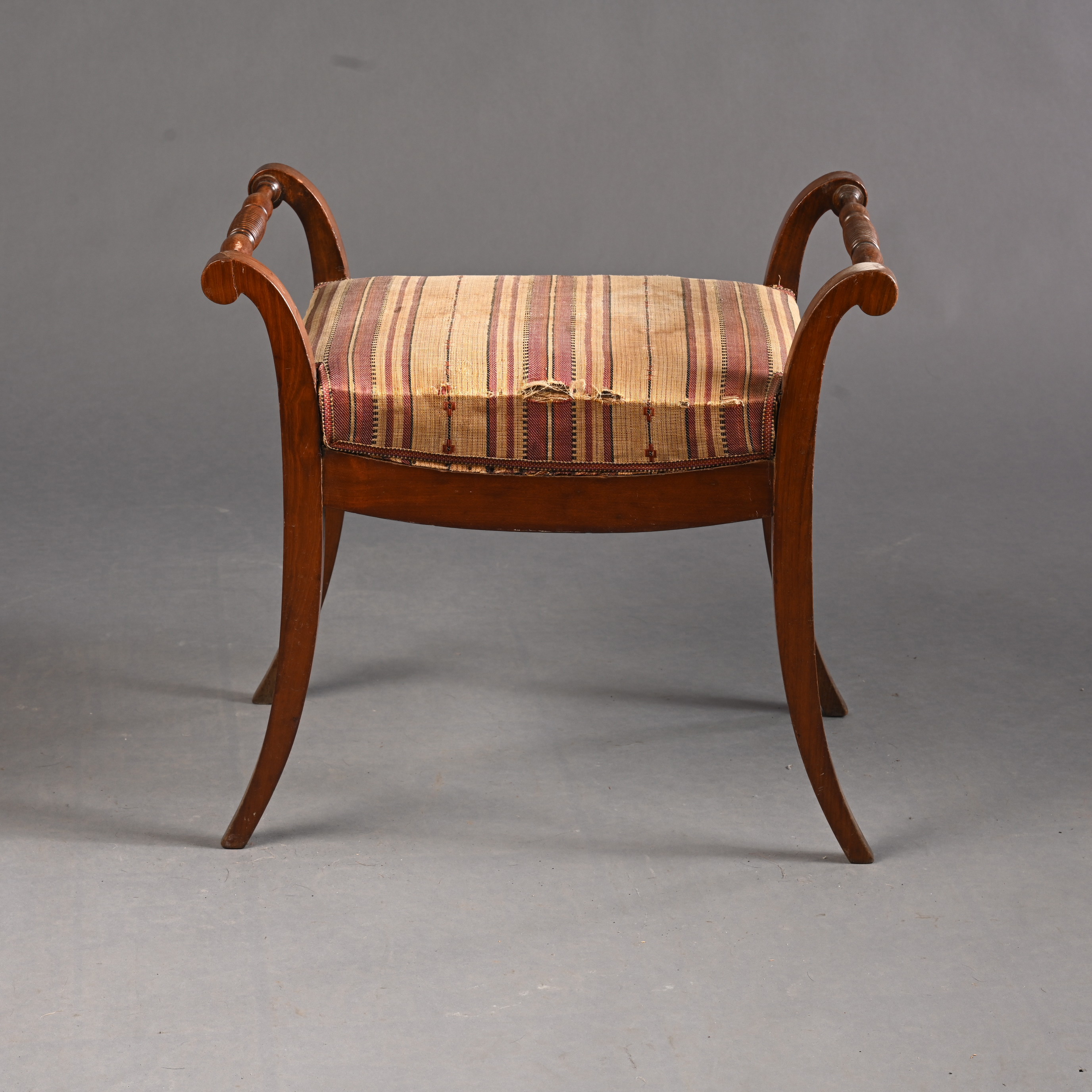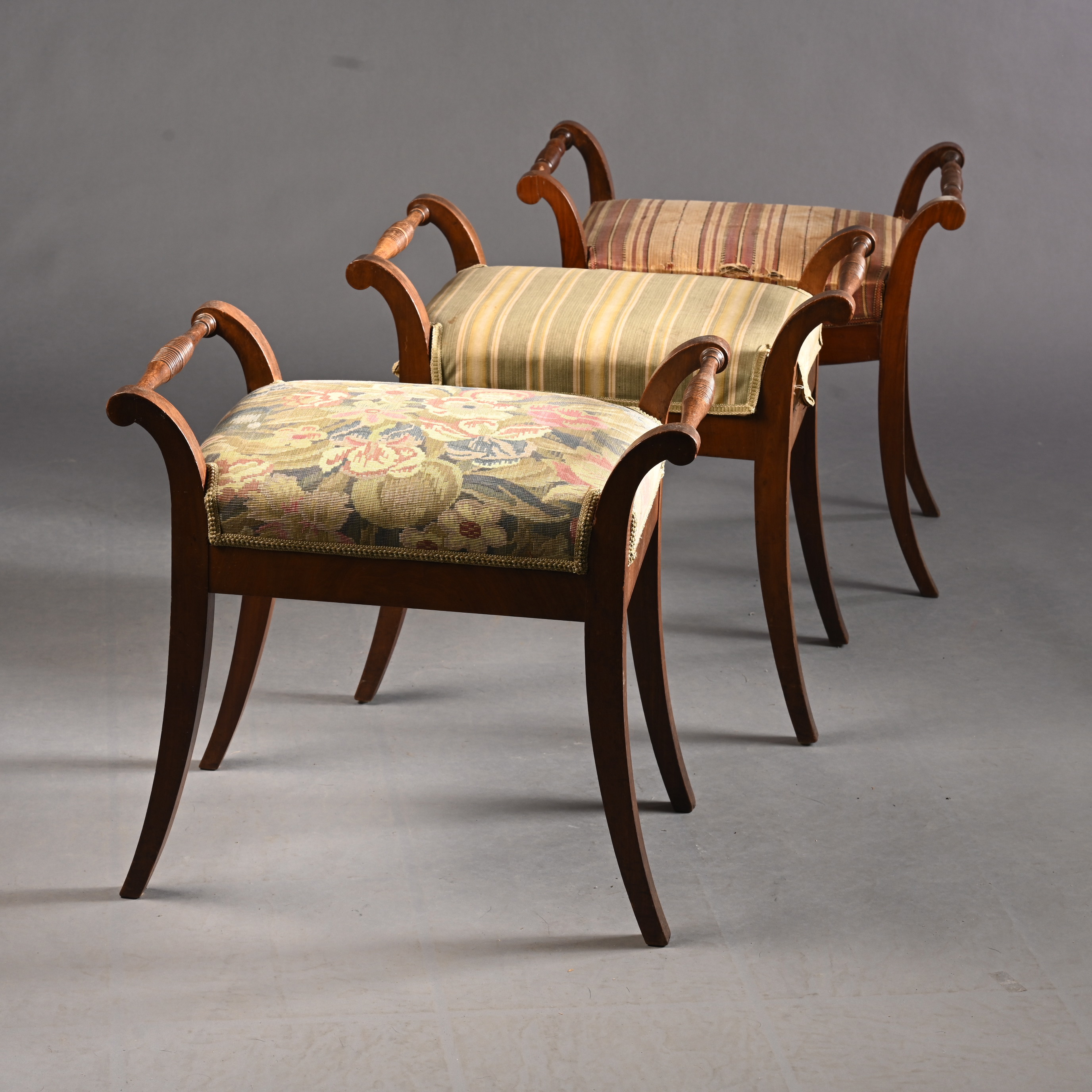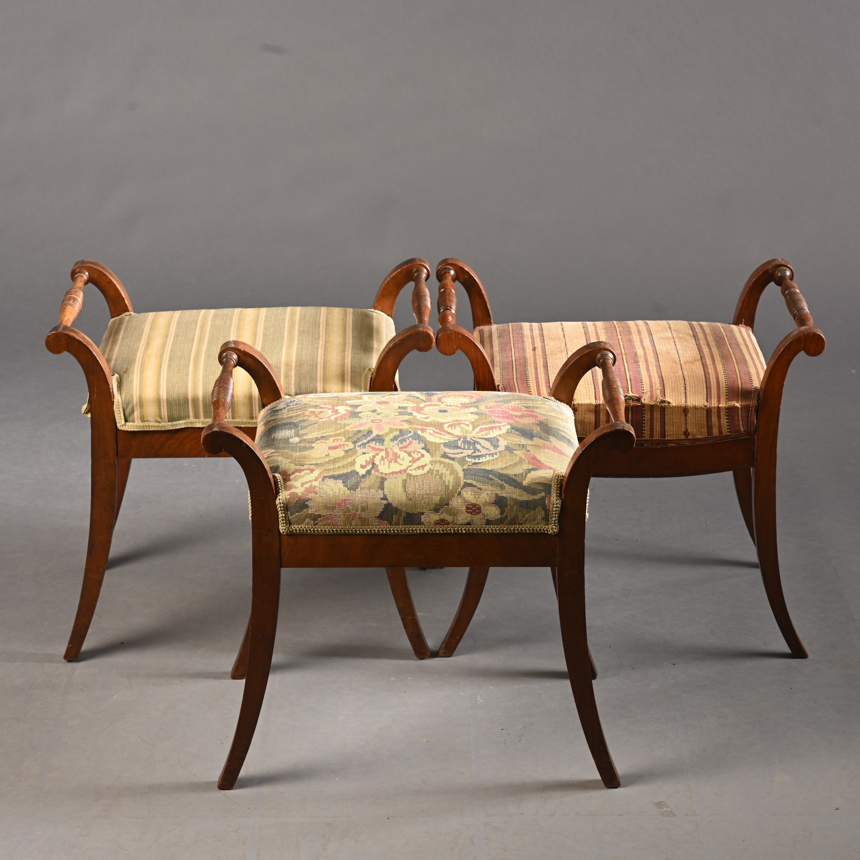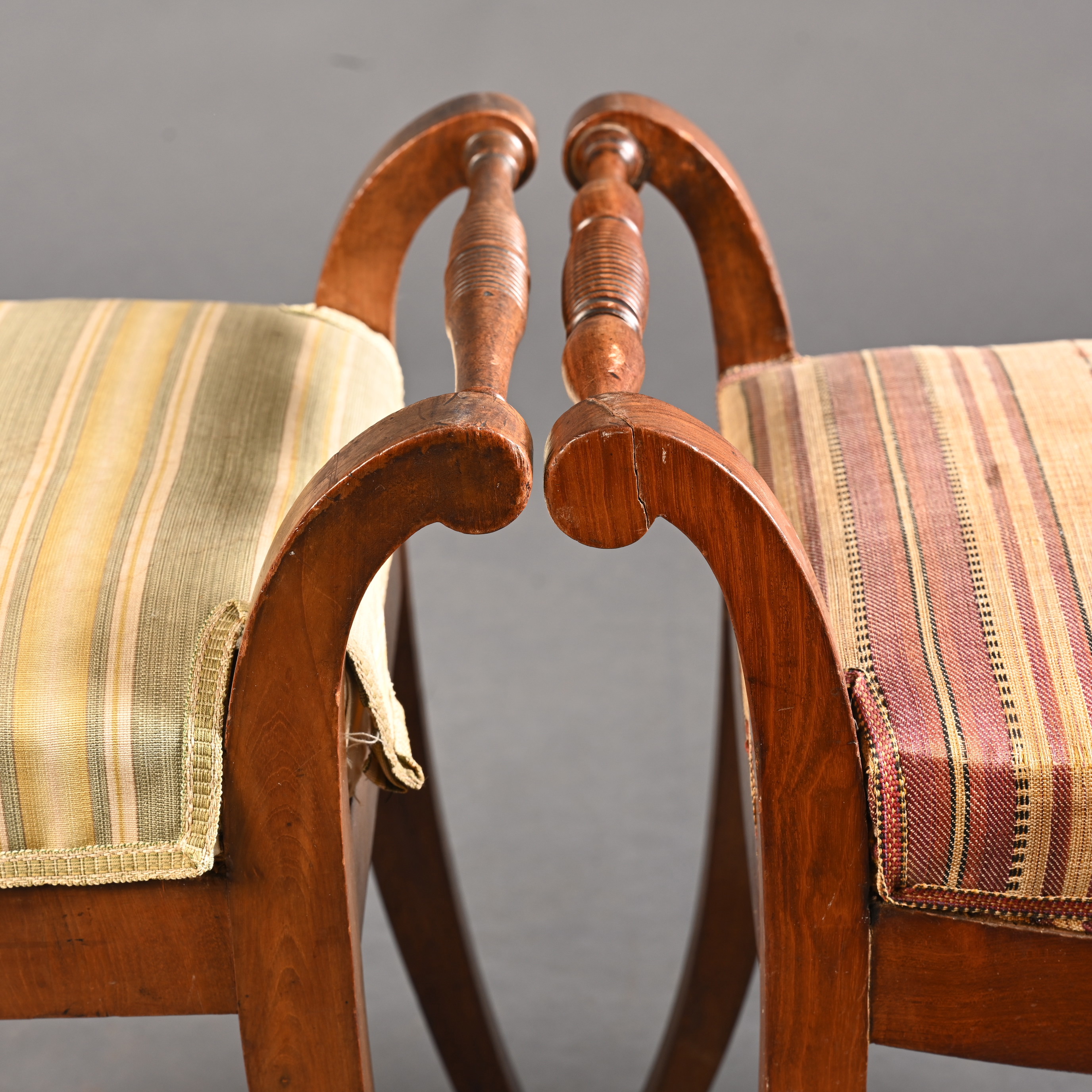 Fanerade i mahogny, sitthöjd ca 45, längd ca 57 cm