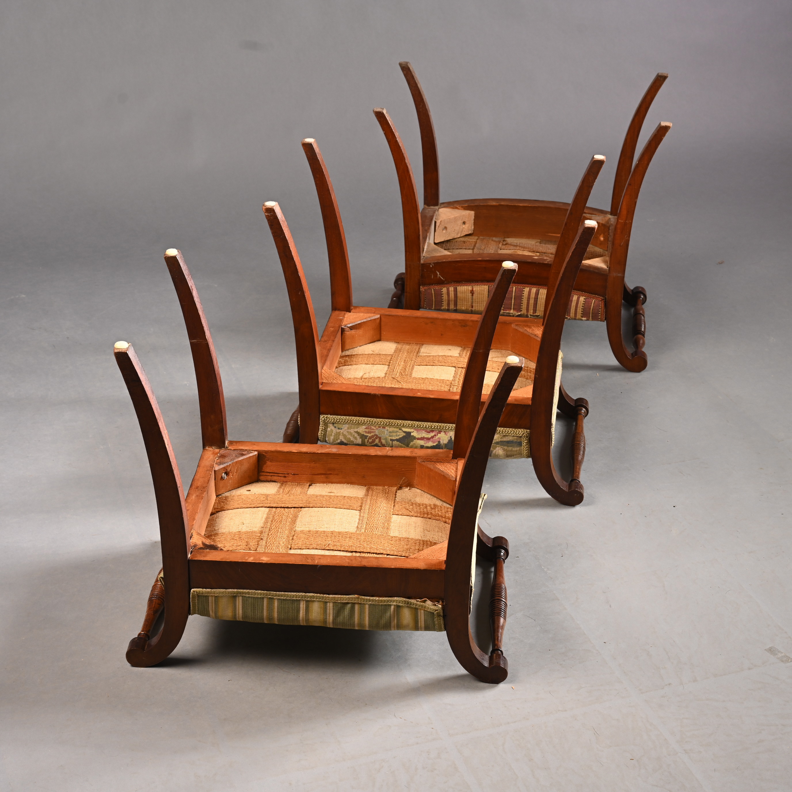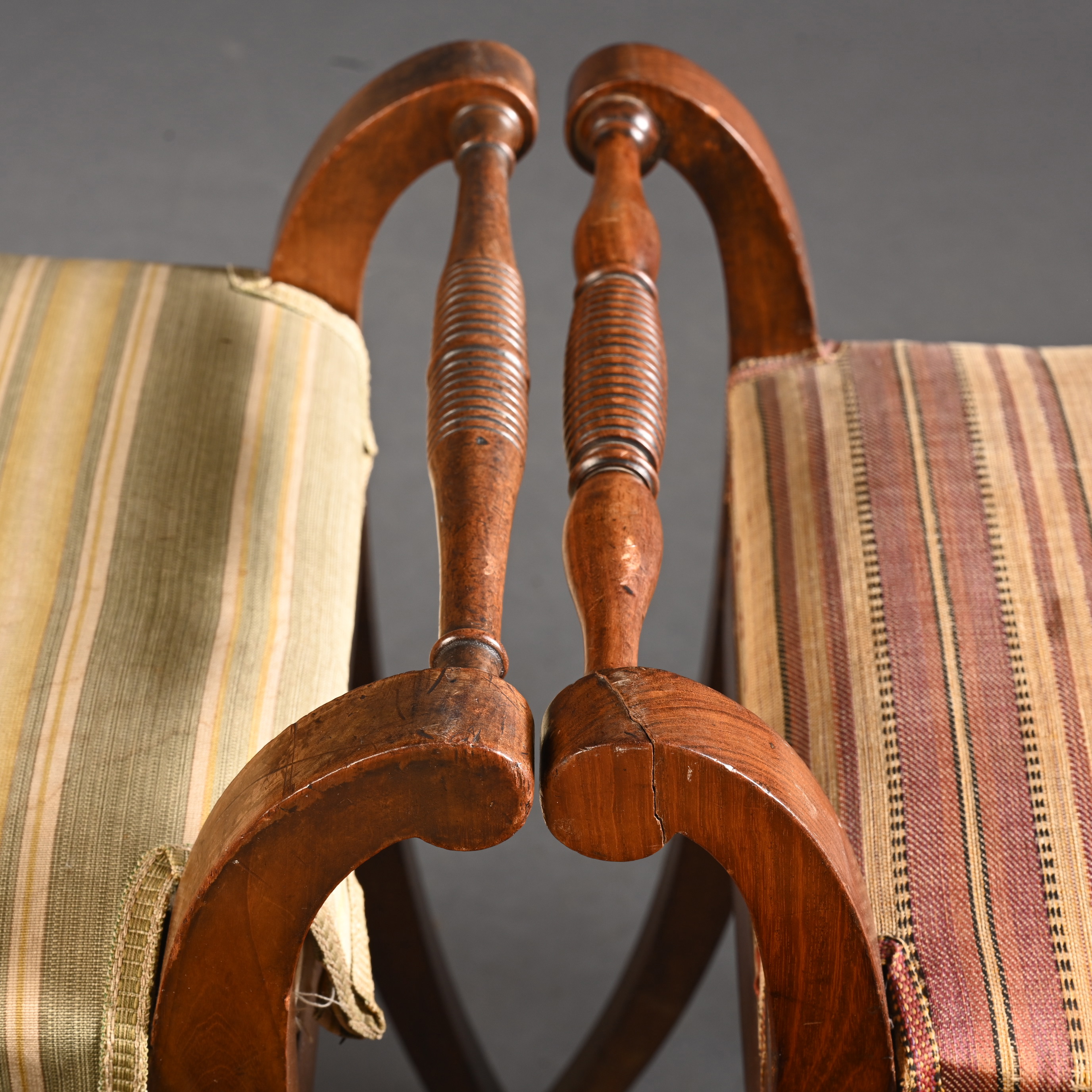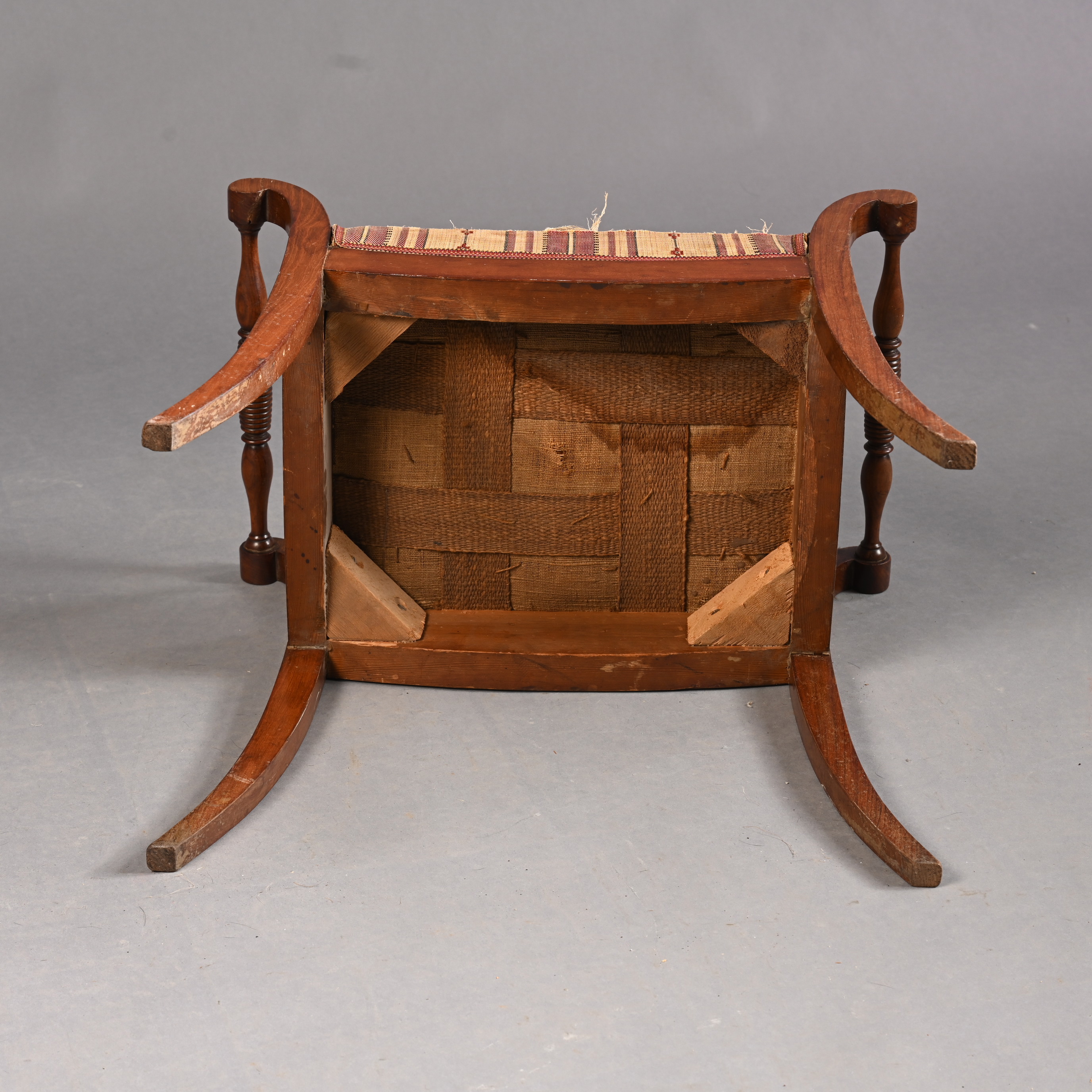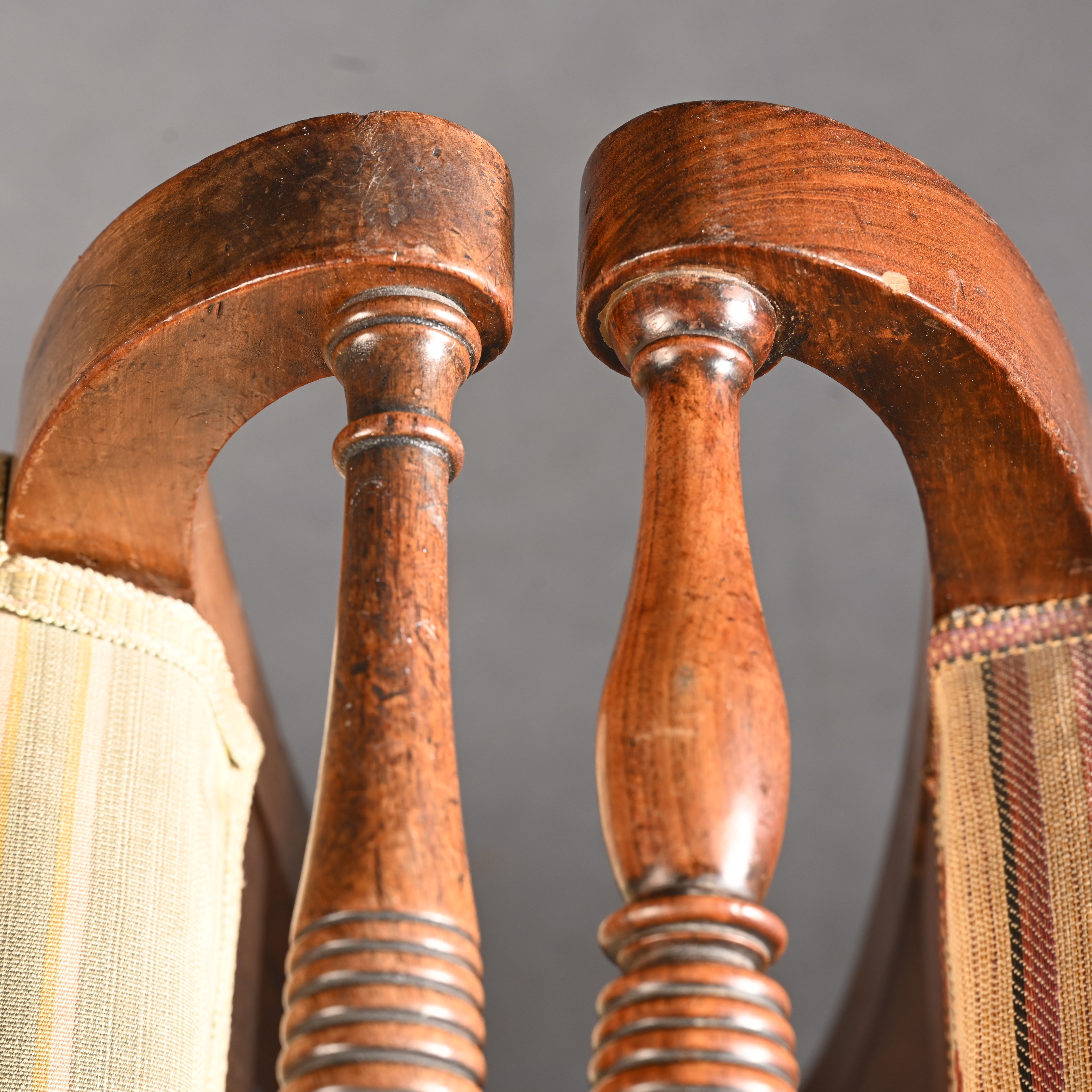 Fanerade i mahogny, sitthöjd ca 45, längd ca 57 cm