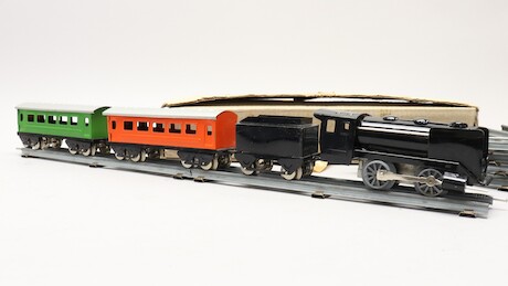 Bilder Modelljärnväg, "Nordexpressen" Skoglunds i Gnösjö, plåt, 1900-talets andra hälft, Spår Skala 0
