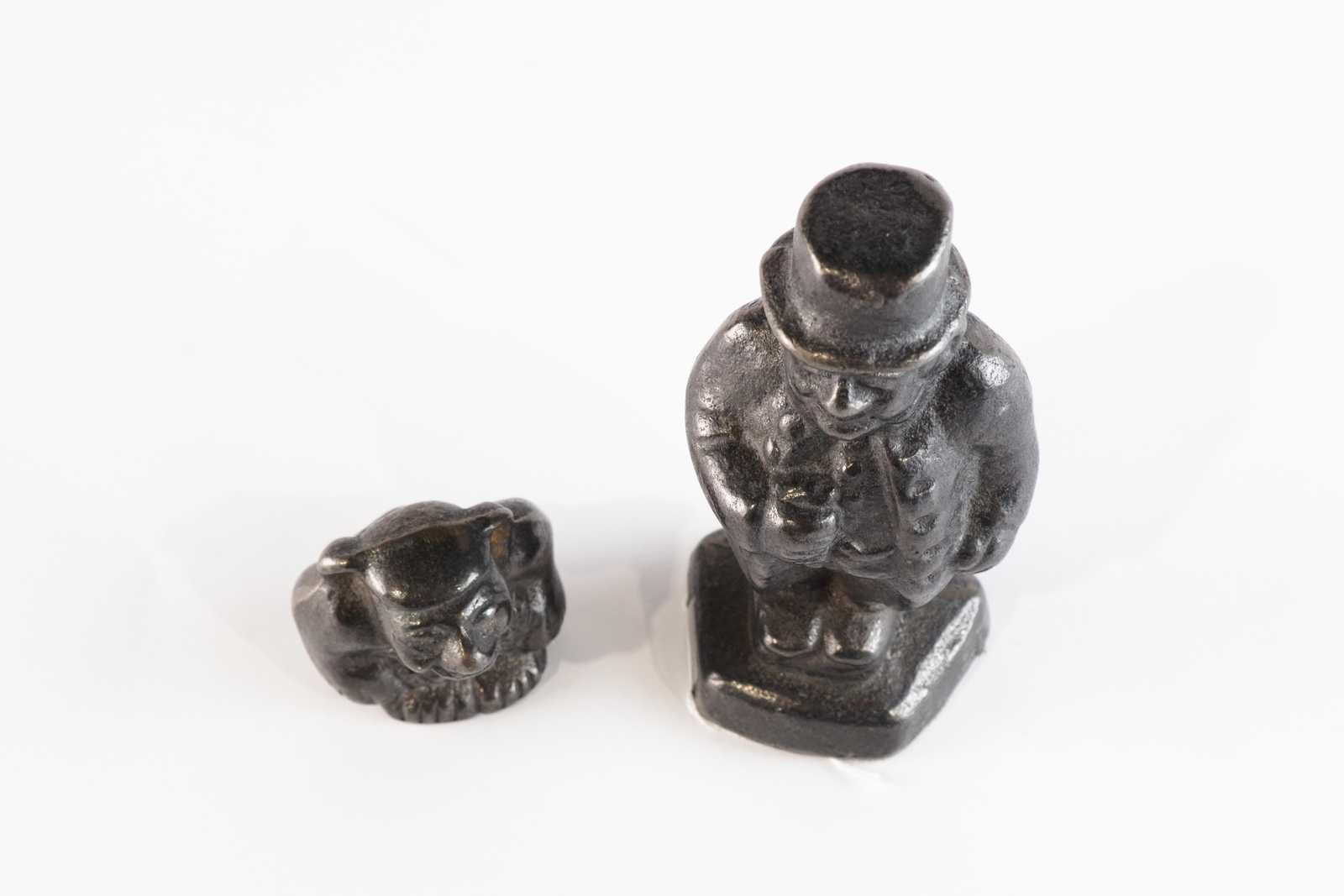 Bilder SKULPTURER 2st gjutjärn. Stämplade K.G. H:13,5cm största.