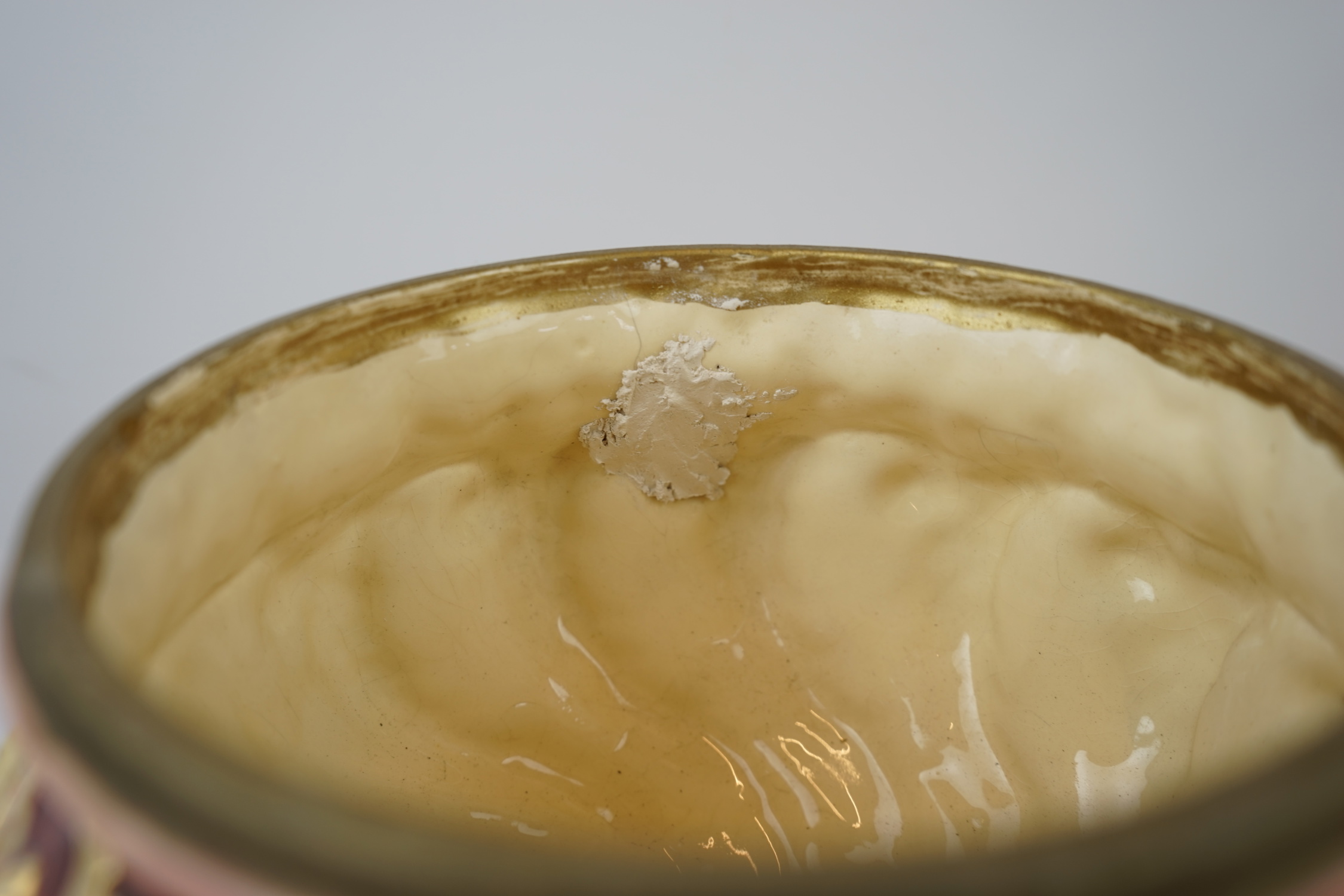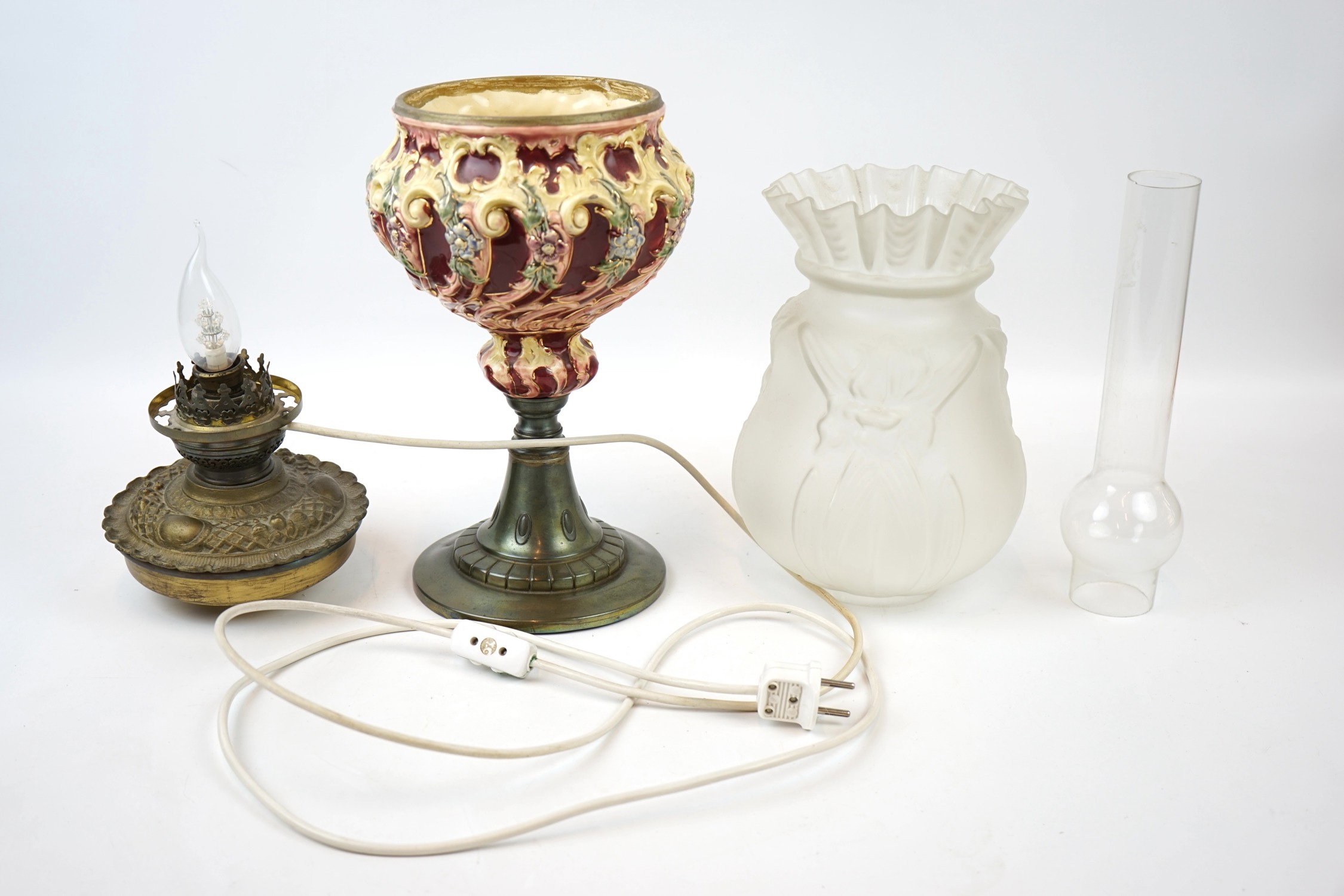 Elektrifierad fotogenlampa, majolika/metall, 1800/1900-tal.