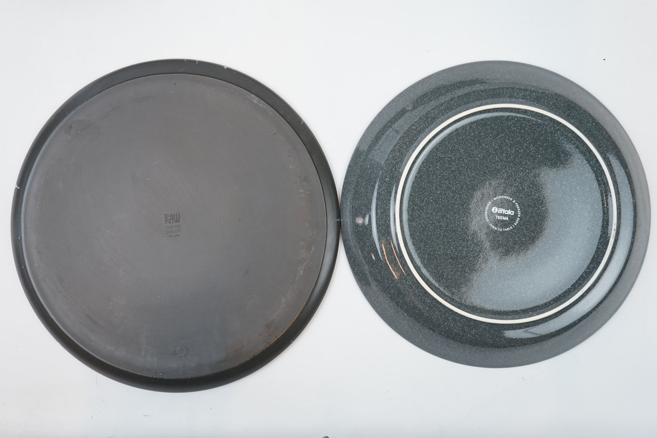 Tallrikar, 7 delar, stengods/porslin, Aida, ''Raw'' och Kaj Franck, ''Teema'', Iittala.