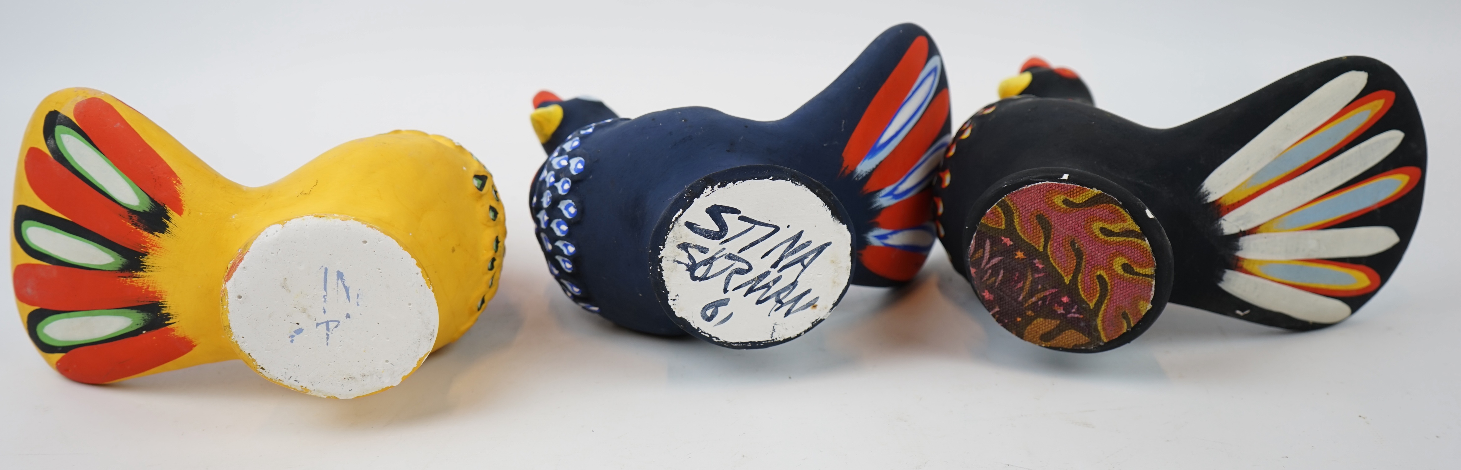 Stina Sörman, ljusstakar, tuppar, 3 st, gips, signerade, daterade 1961.