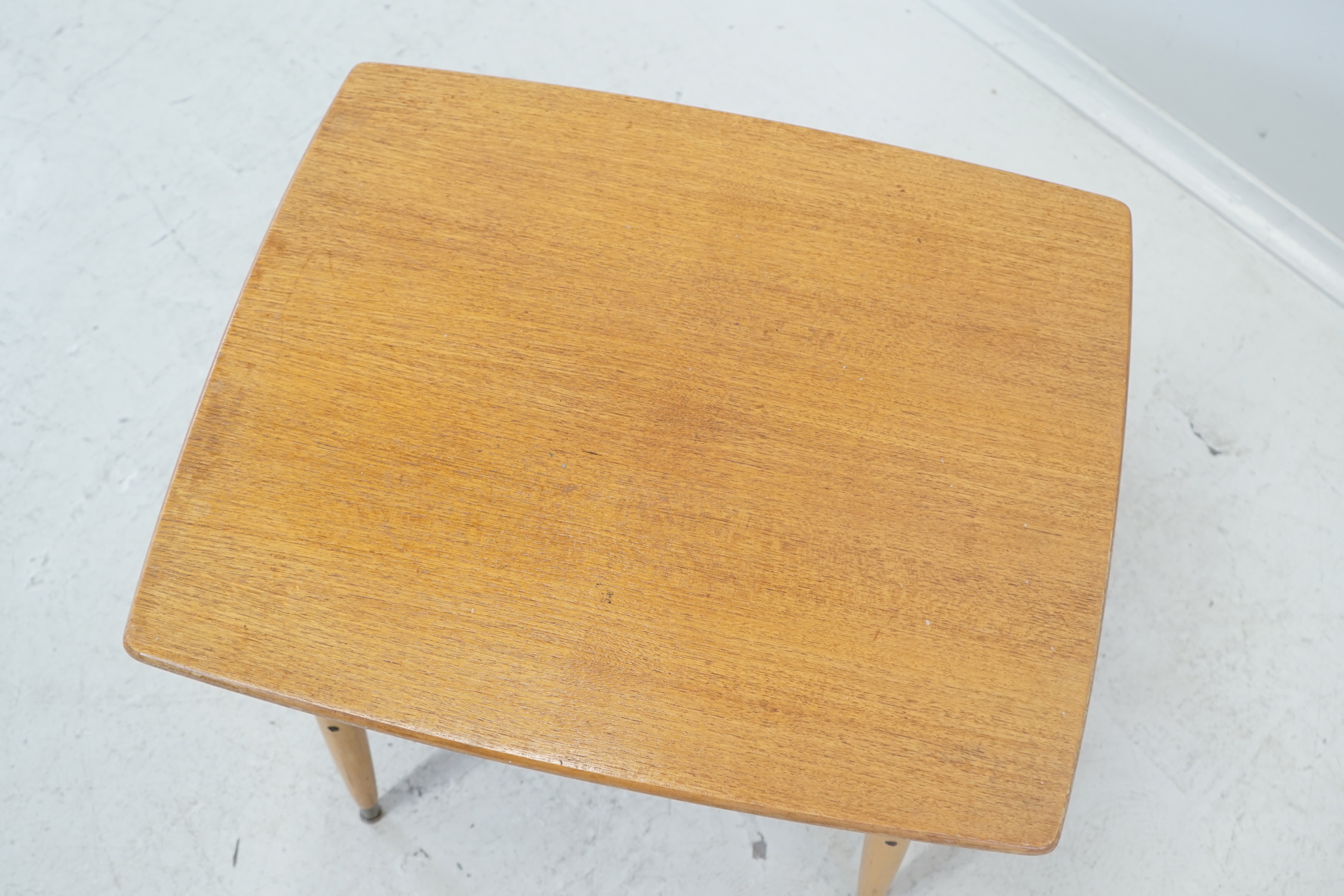 Sidobord, teak, rottinghylla, hjultrissor på två ben, 1900-talets andra hälft.