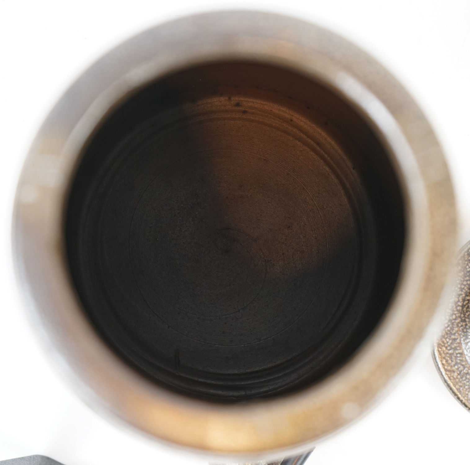 Bilder Krus med tappkran på fot, stengods/metall, Höganäs.