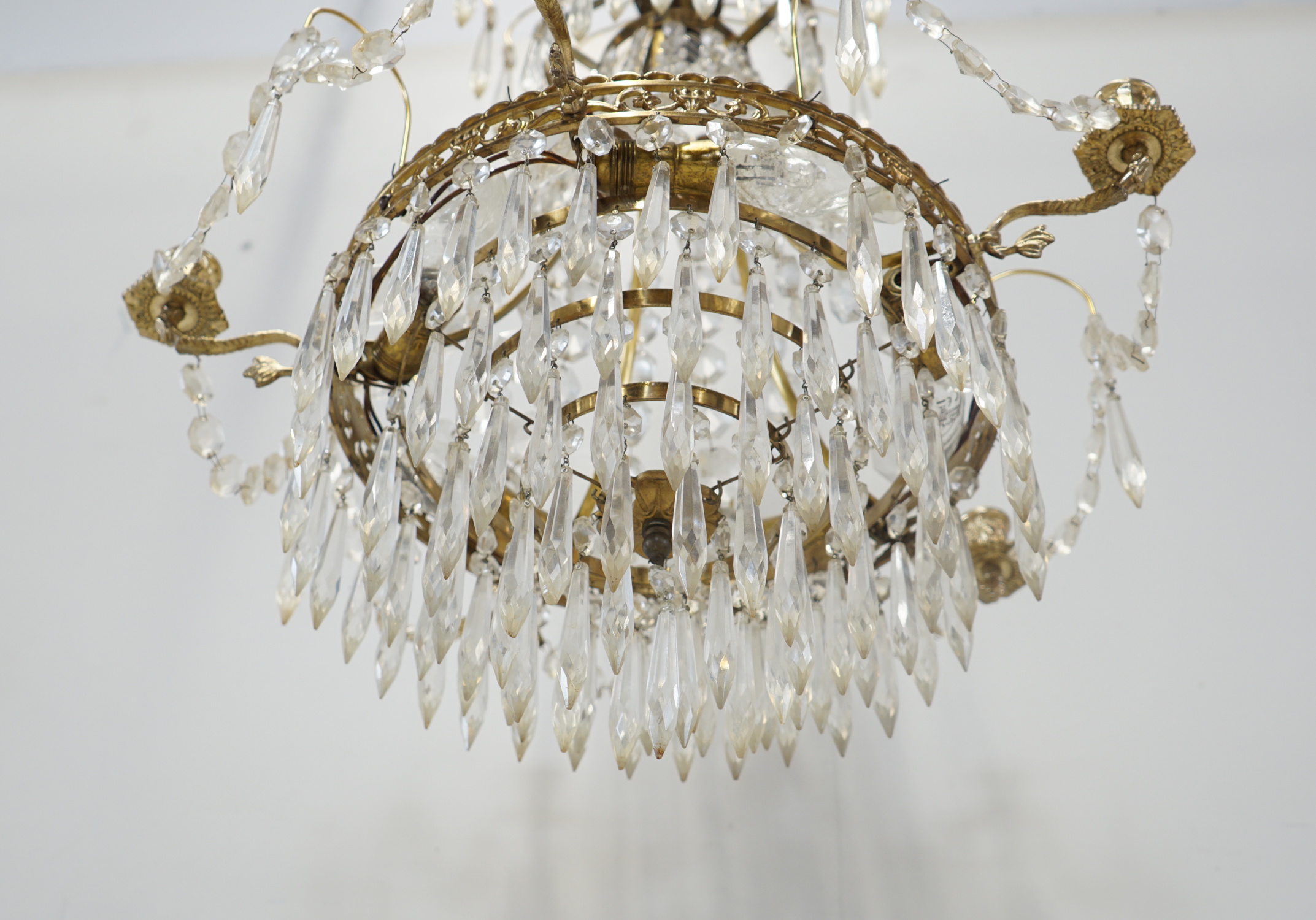 Bilder Takkrona, för 5 ljus, 6 ljuspunkter, glasprismor, mässing, 1900-tal.