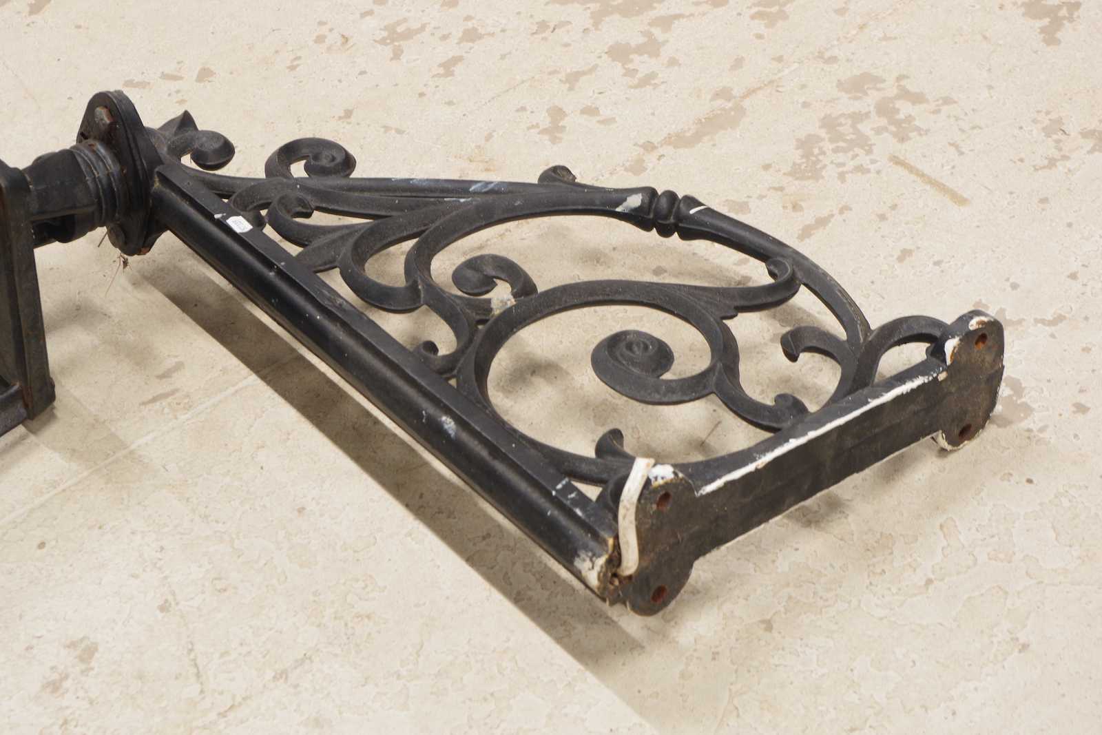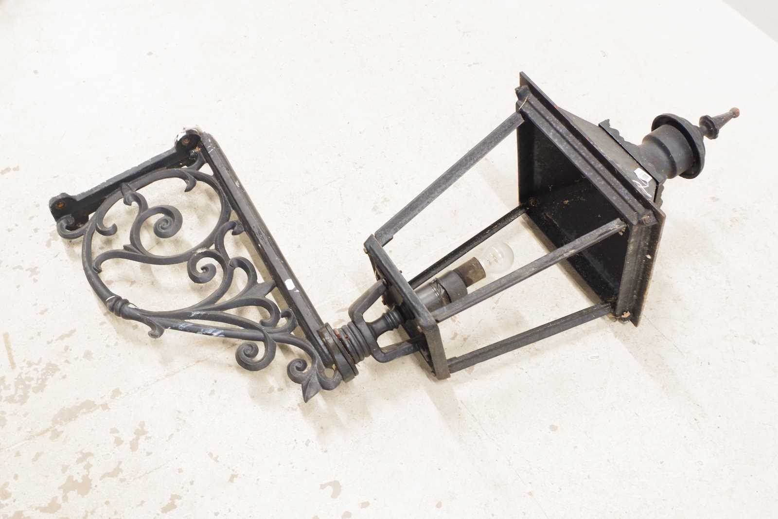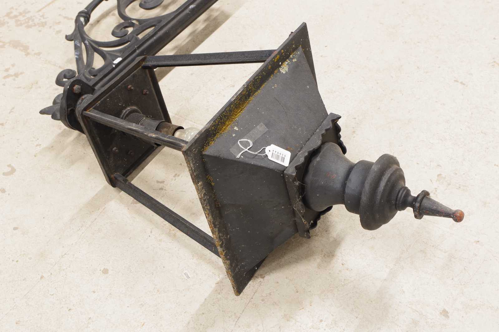 Bilder Stor VÄGGLYKTA i gjutjärn. H: ca 120cm totalt, lyktans H: ca 88cm (Tung!)