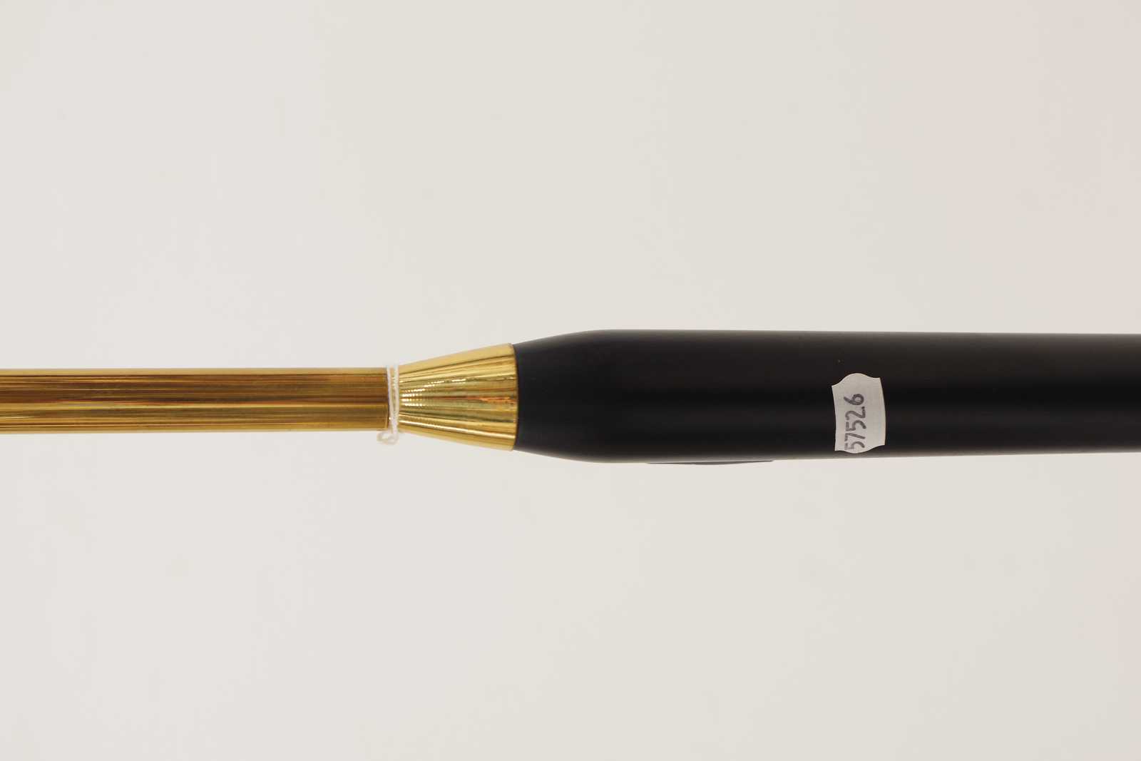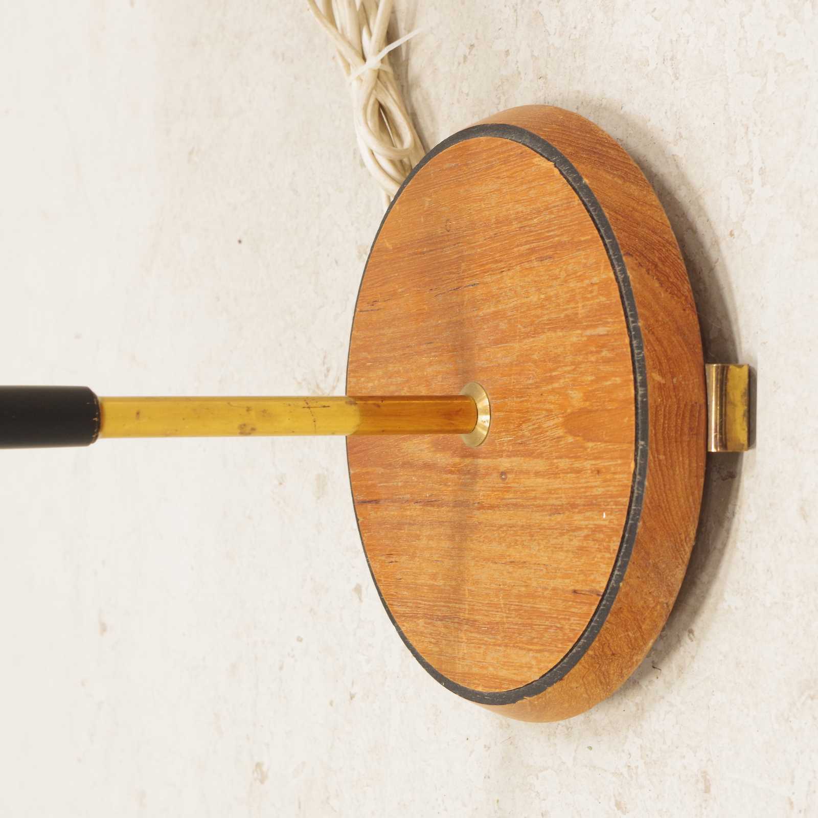 Bilder GOLVLAMPA, mässing & teak, flätad lampskärm, H: 152cm
