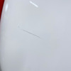 Klädsel på dynan är i bra skick. Klädseln på insidan av skalat är missfärgat. Klädsel på ryggstödet är missfärgat (blekt) uppe på nackstödet. Skalet har en tydlig repa. Slitage. Små märken på foten.