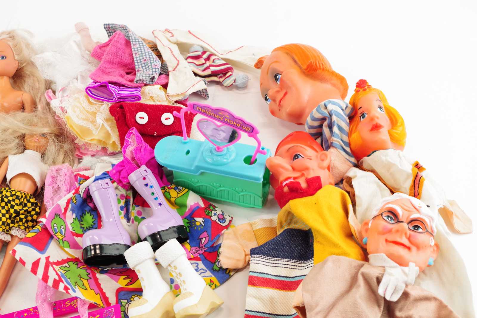 Bilder parti DOCKOR bl.a. Barbie och kasperdockor, DOCKKLÄDER mm