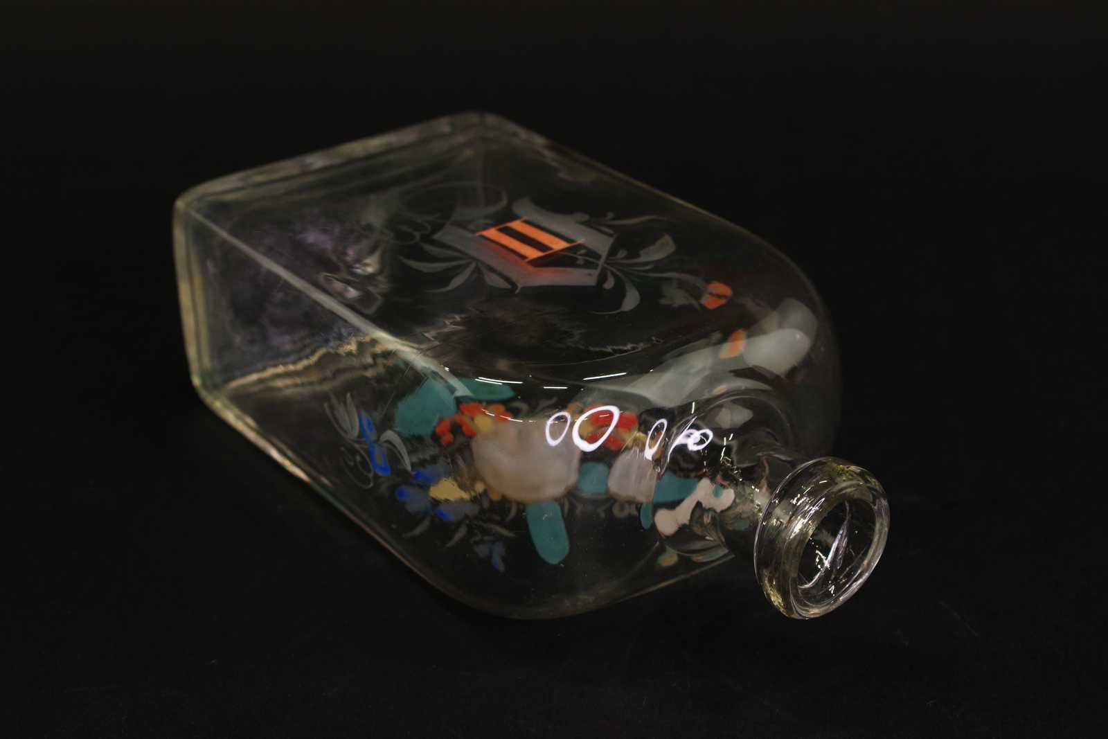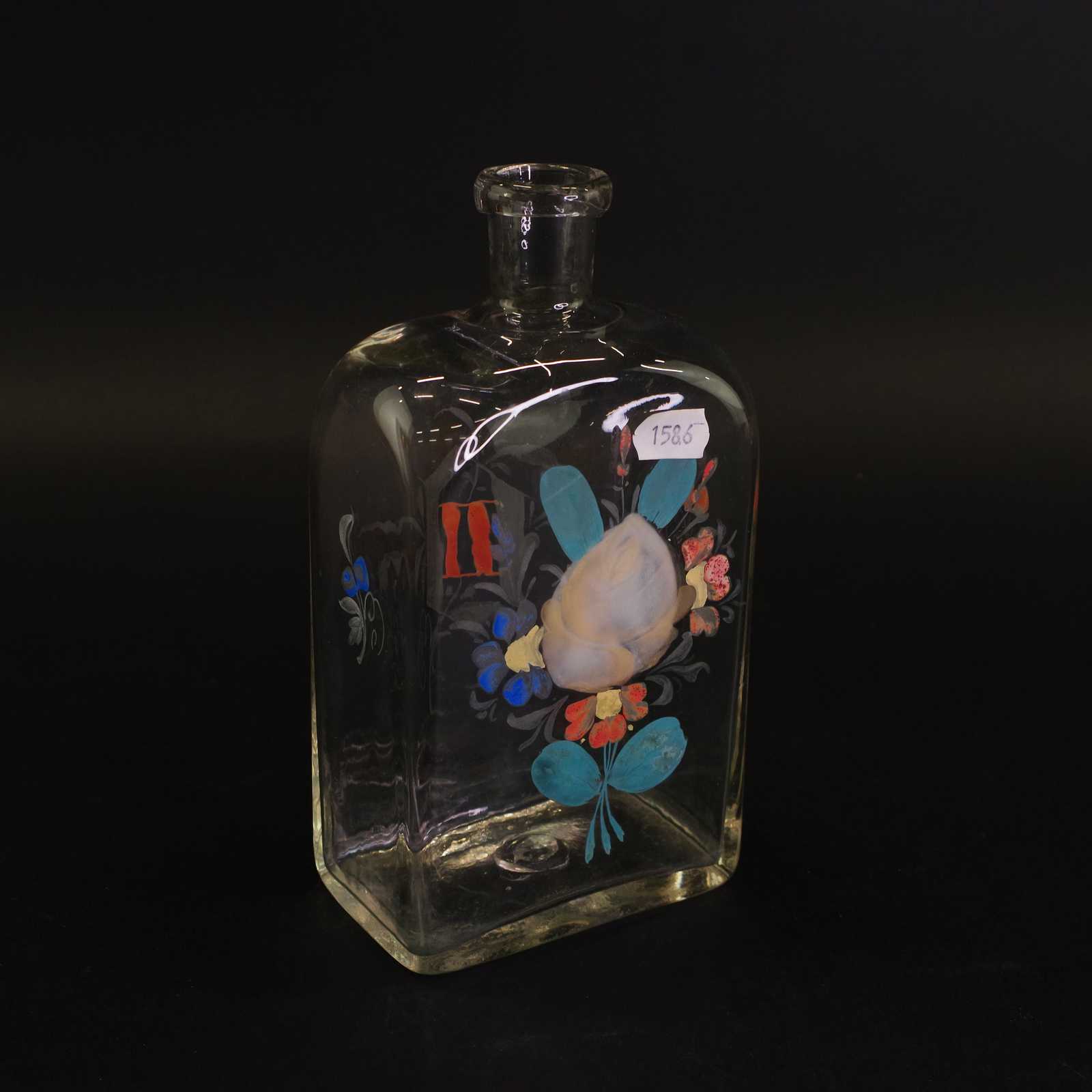 BRÄNNVINSFLASKA målad dekor H:19 cm (klippt botten)