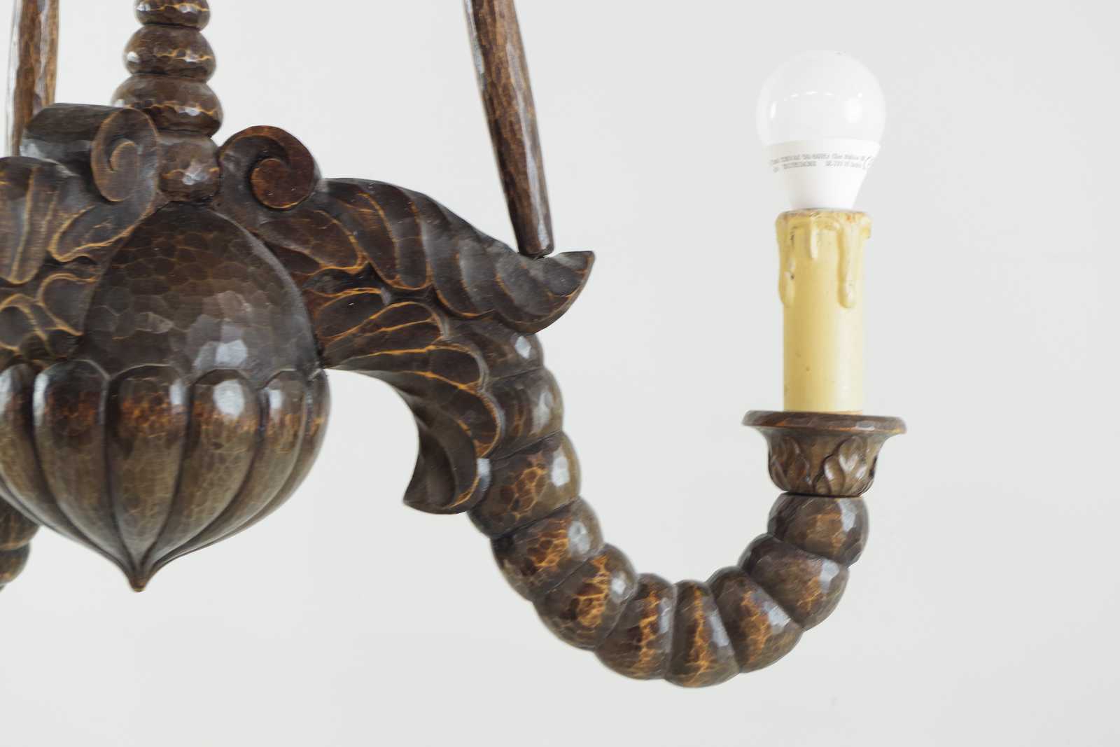 TAKLAMPA skuren i trä, 1900 talets första hälft. D:46cm H:65cm