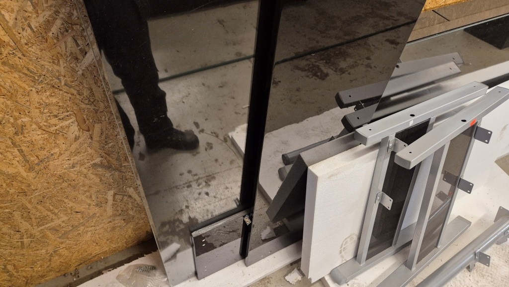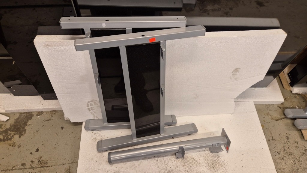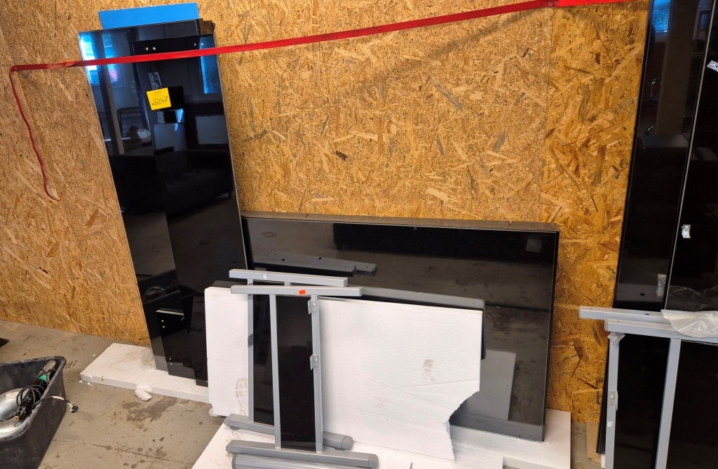 Skrivbord med pianolack/glasskivaMått: 190/60x170x90cmSkrivbordet är demonterat enl. bilder, mindre skavanker kan finnas.
