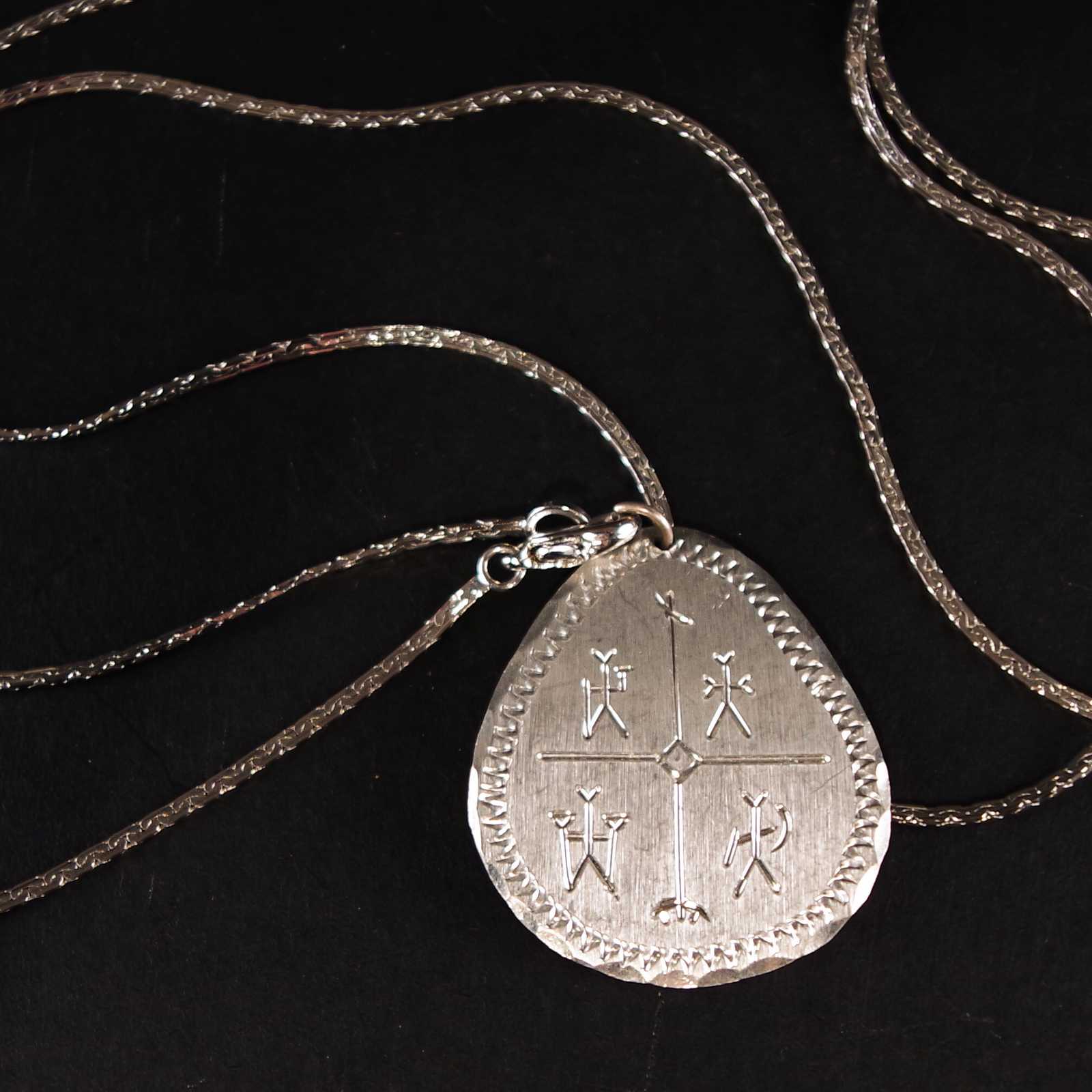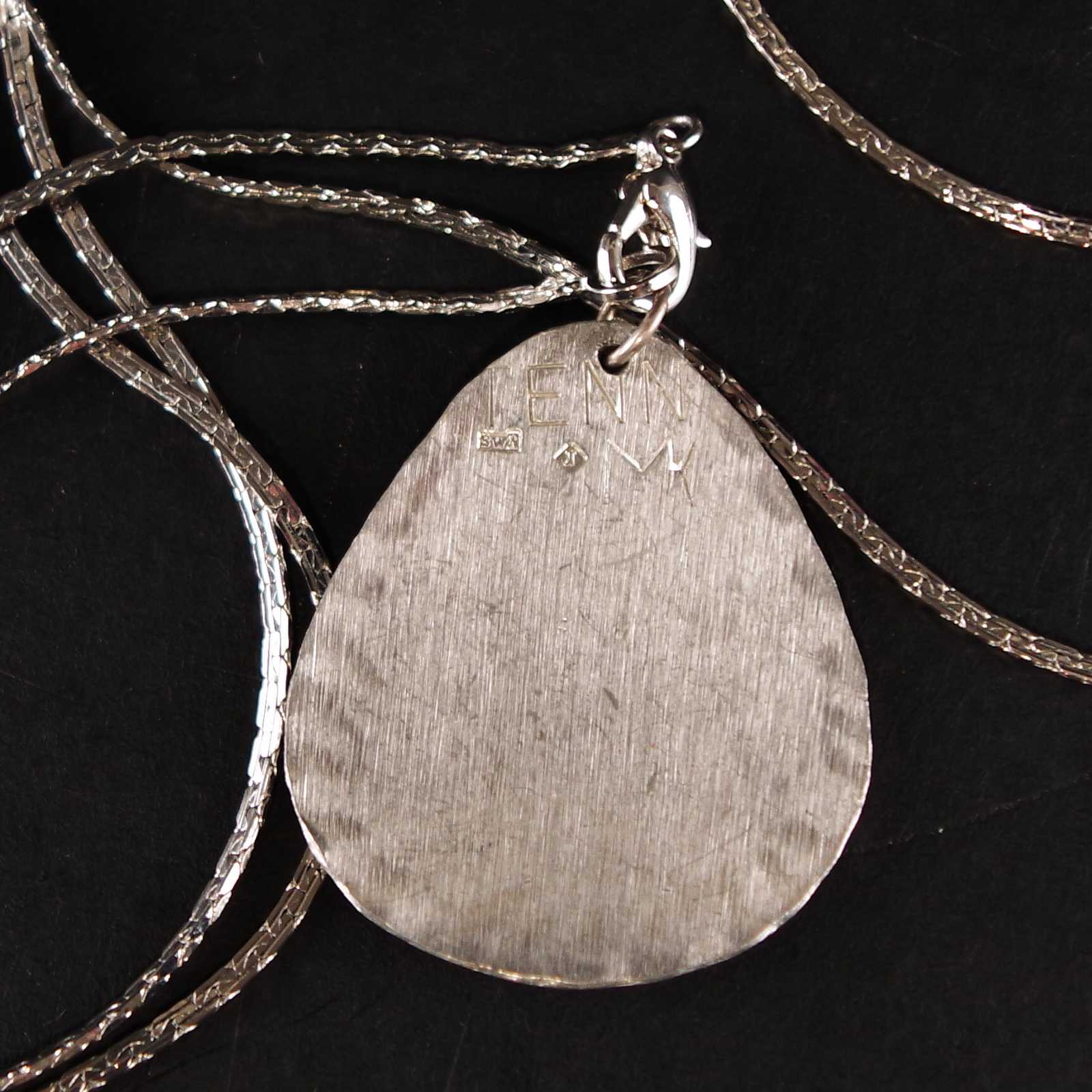 Bilder HALSBAND med hänge, tenn signerat. 3,5x4cm.