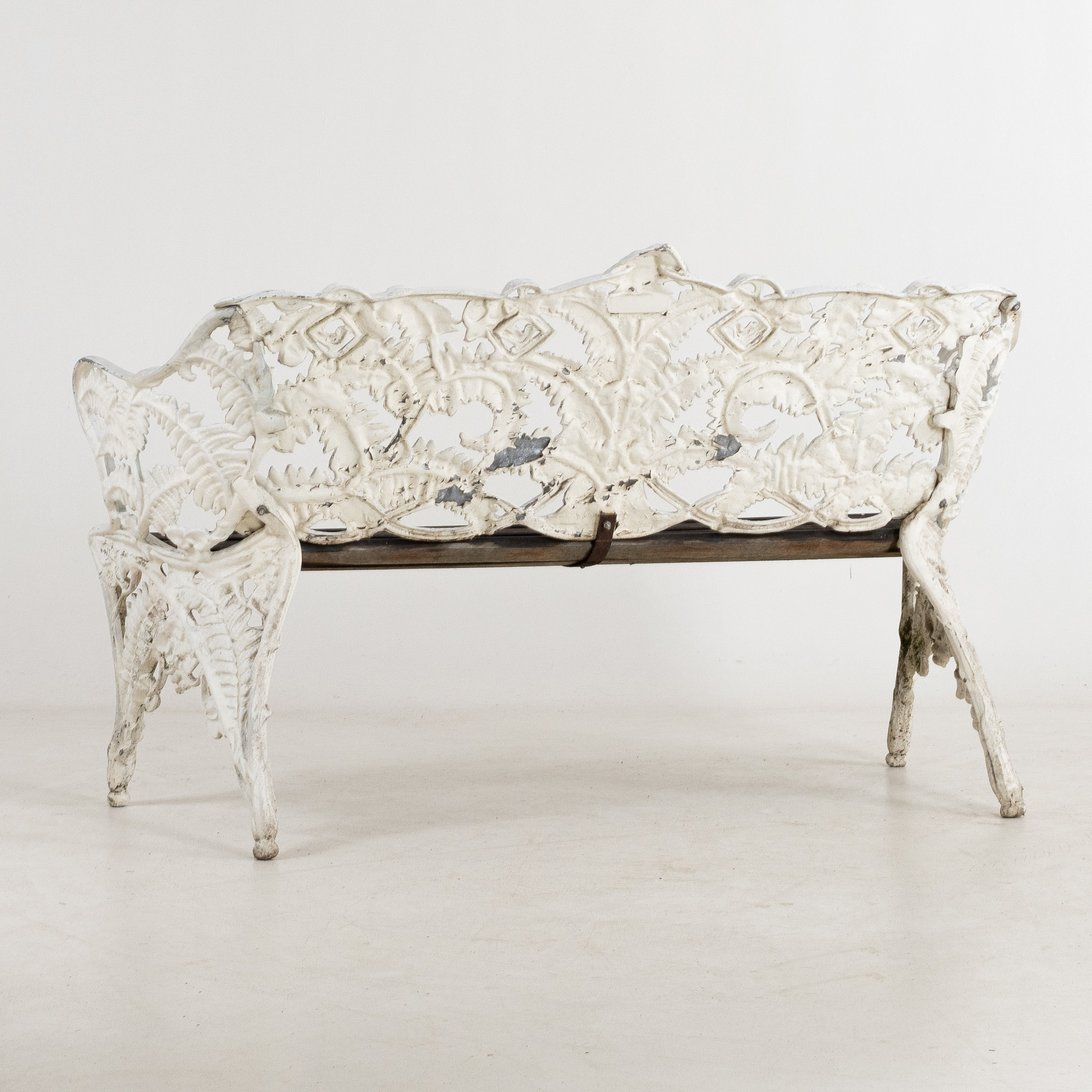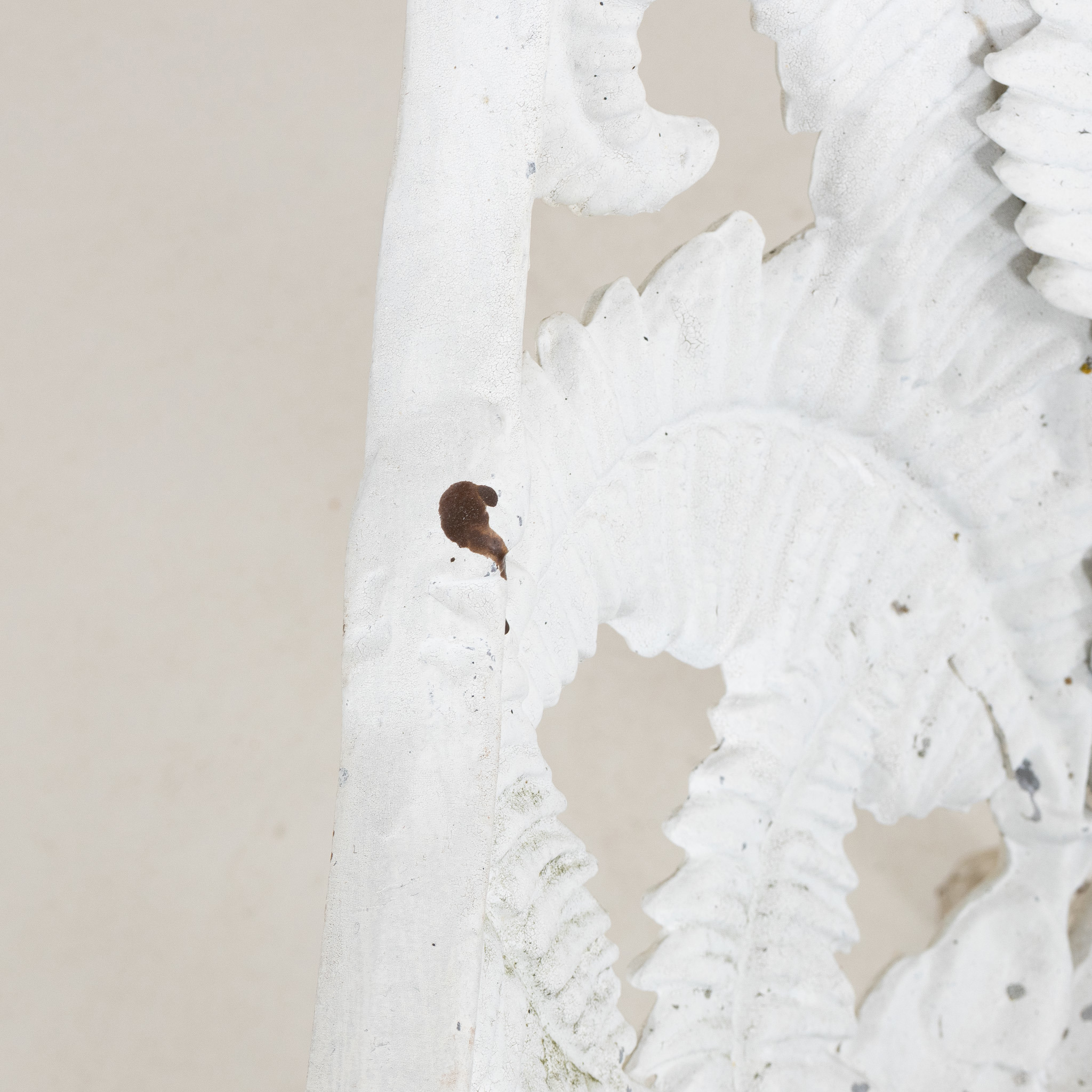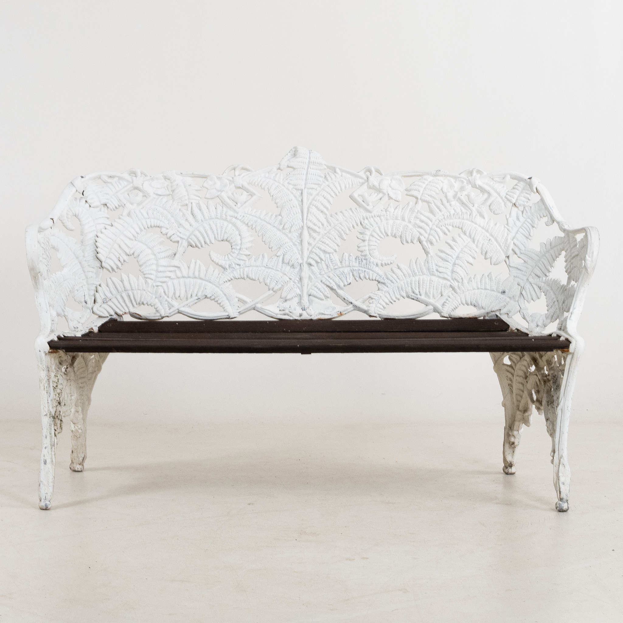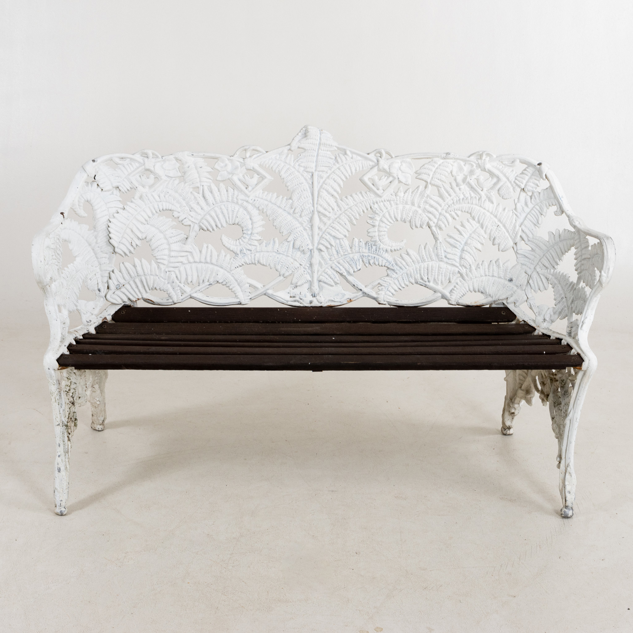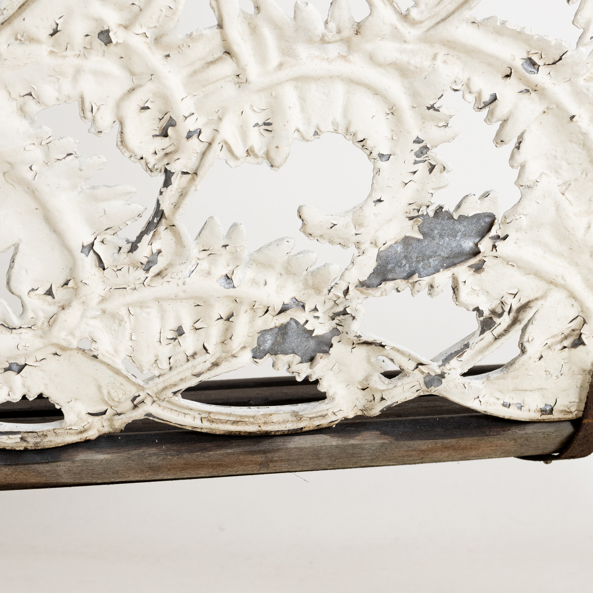 Vitmålad, genombruten dekor av ormbunkar, höjd ca 41 cm, längd 140 cm