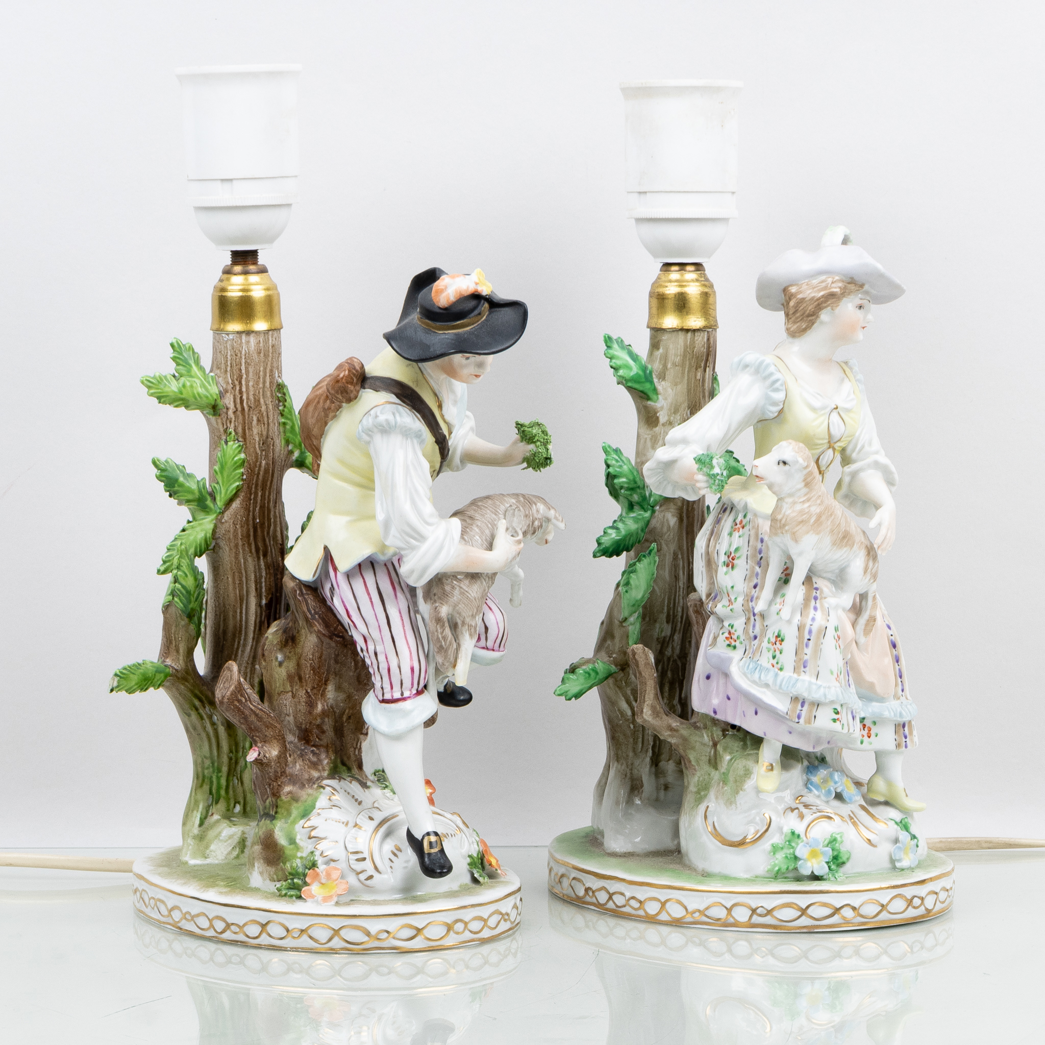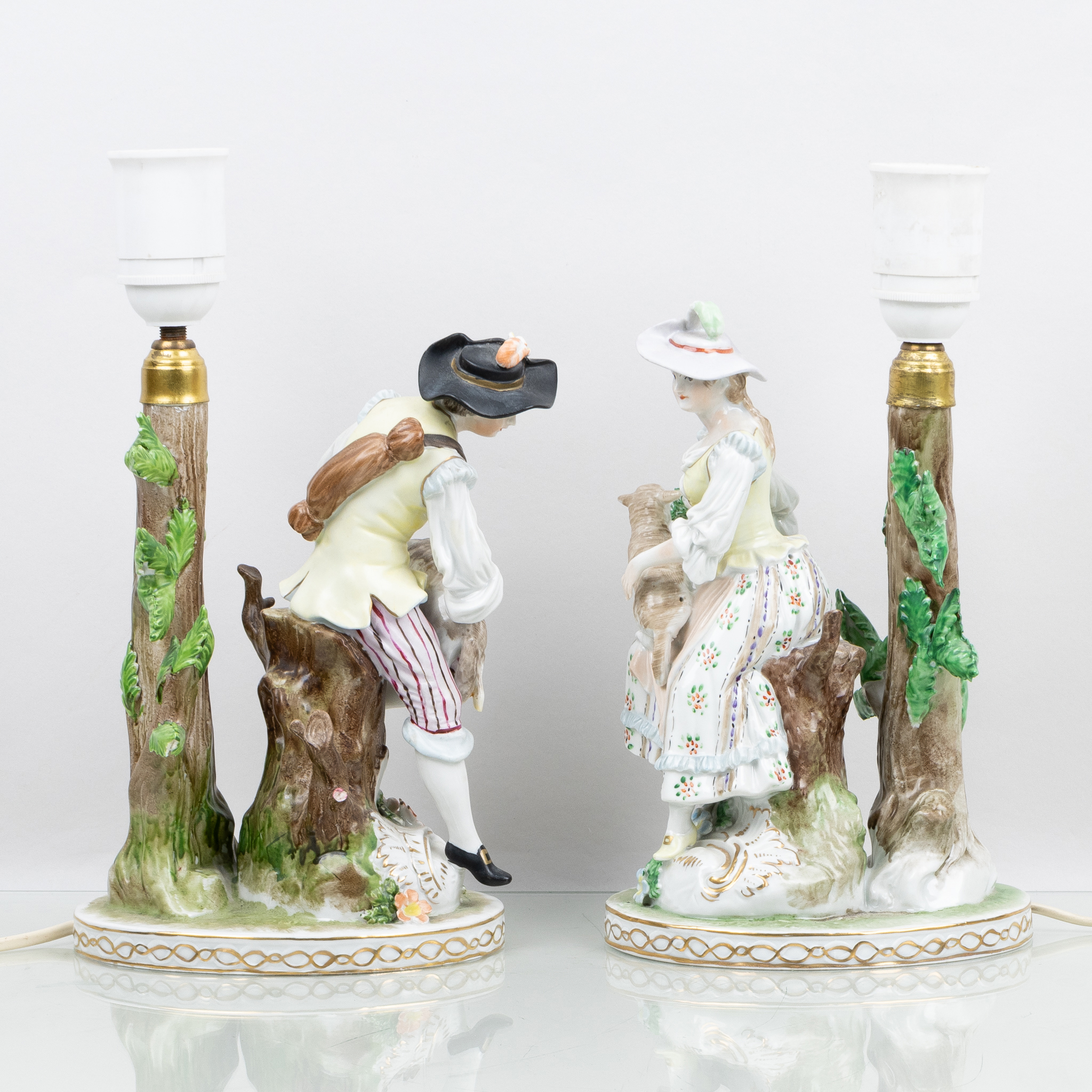 BORDSLAMPOR, 1 par, porslin, Dresden, 1900-talets första hälft