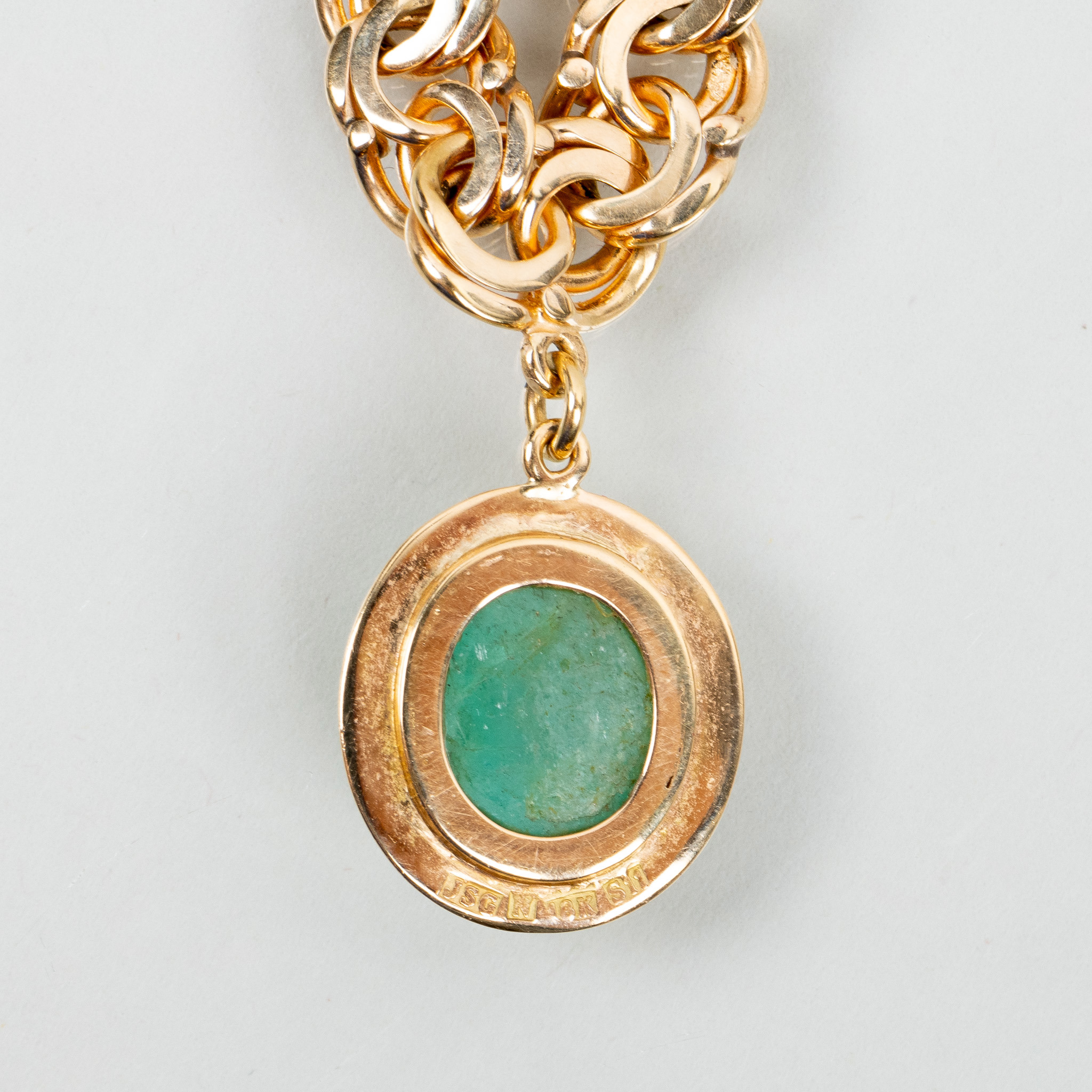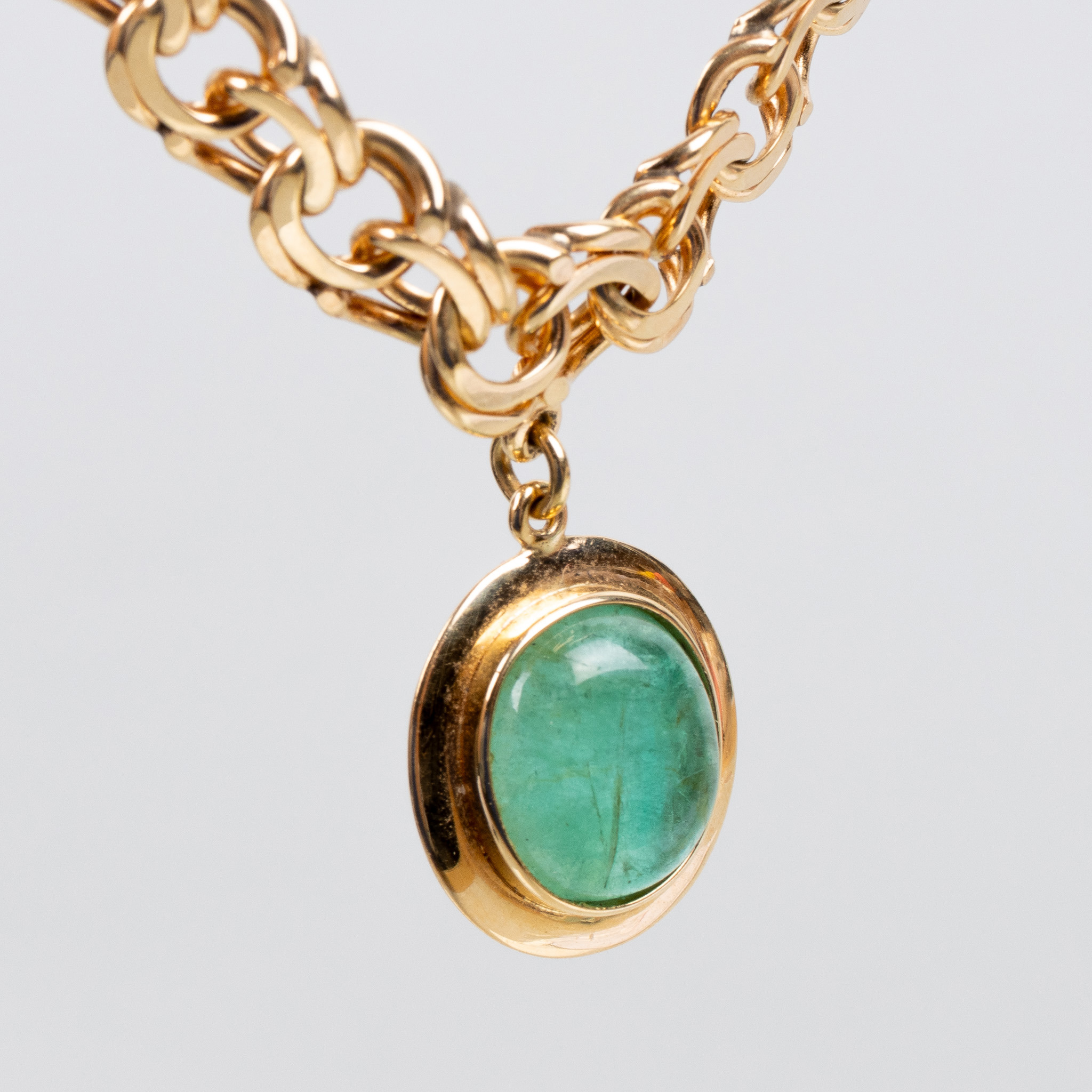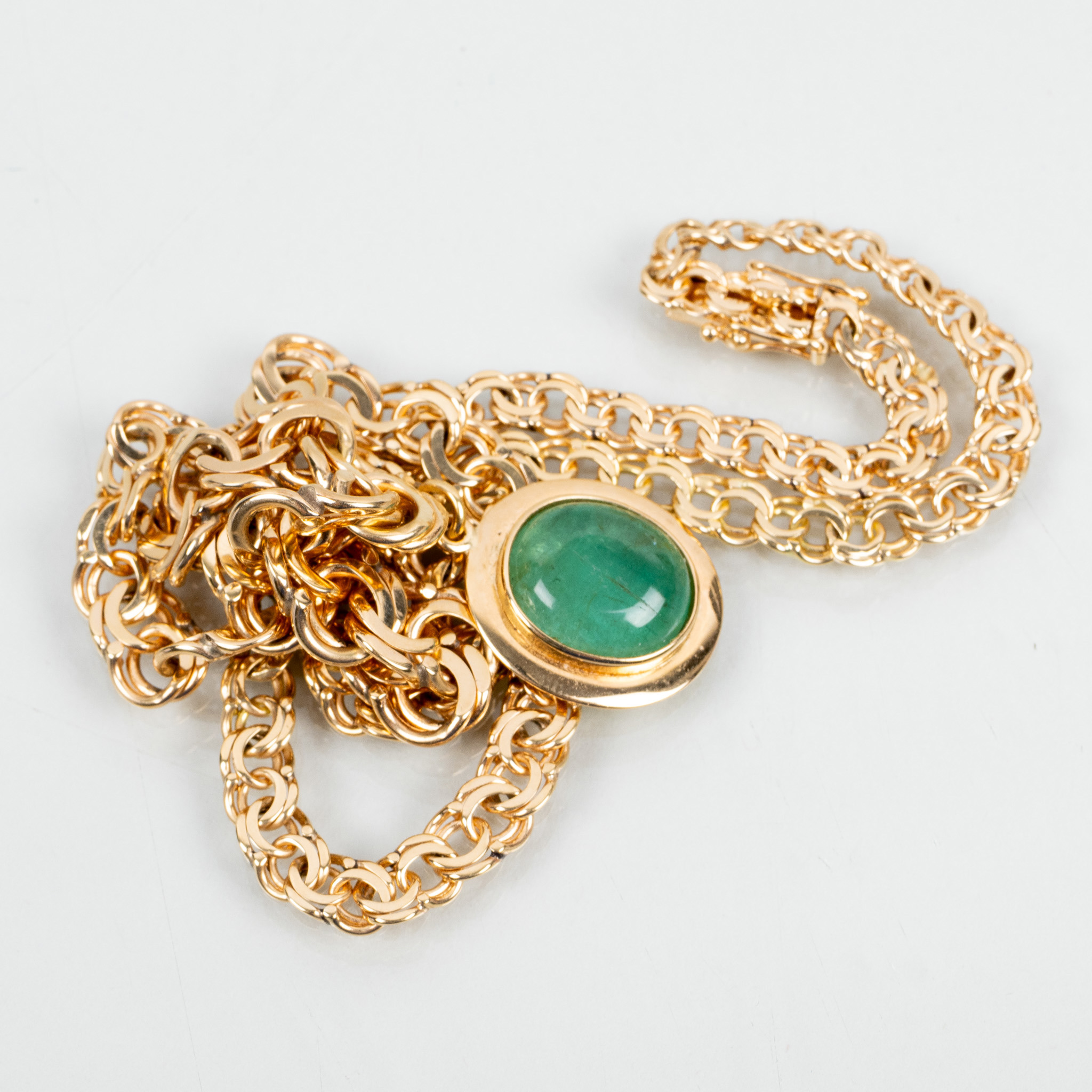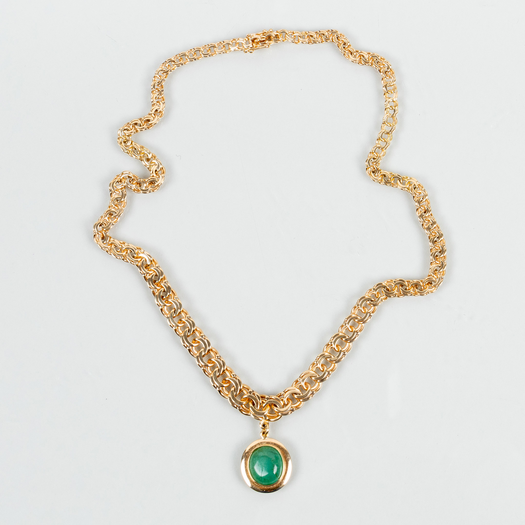 Bilder COLLIER, 18k guld, hänge med cabochonslipad smaragd Johansson & Schöttle Norrköping 2016, tot vikt ca 29,4 g