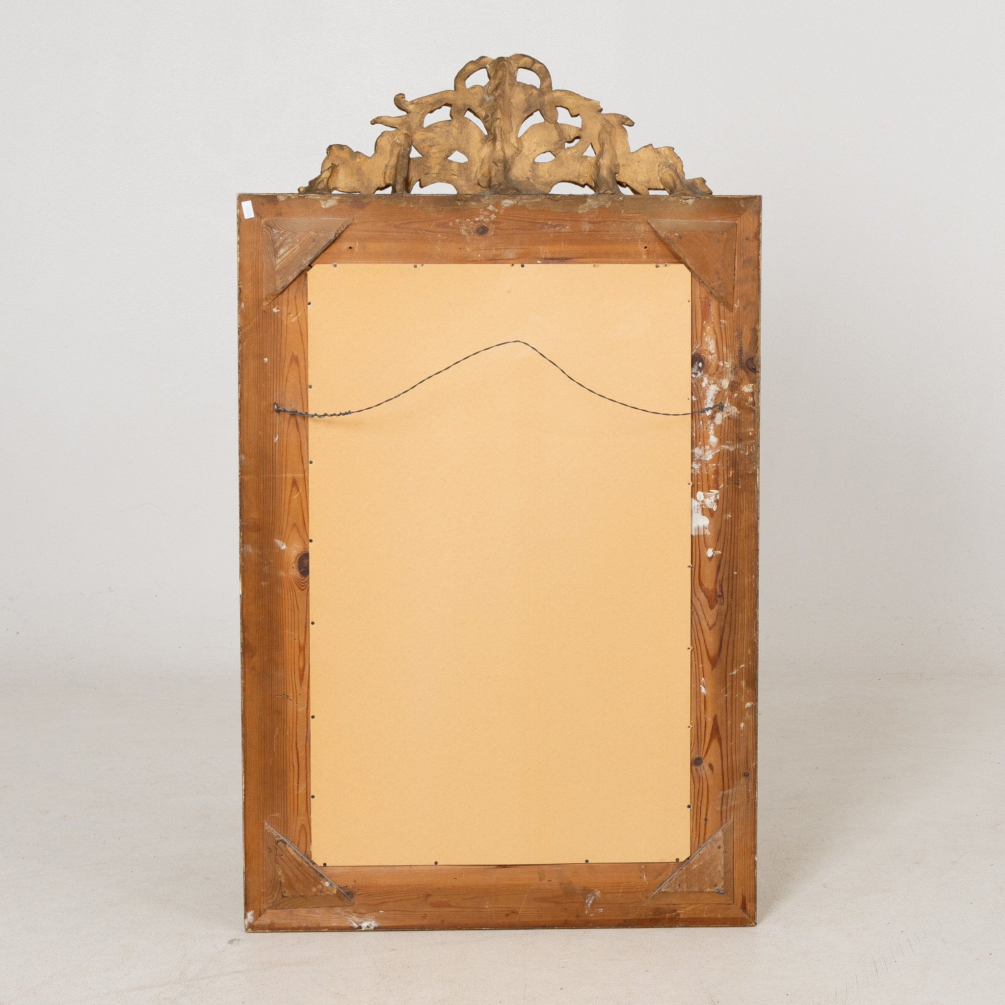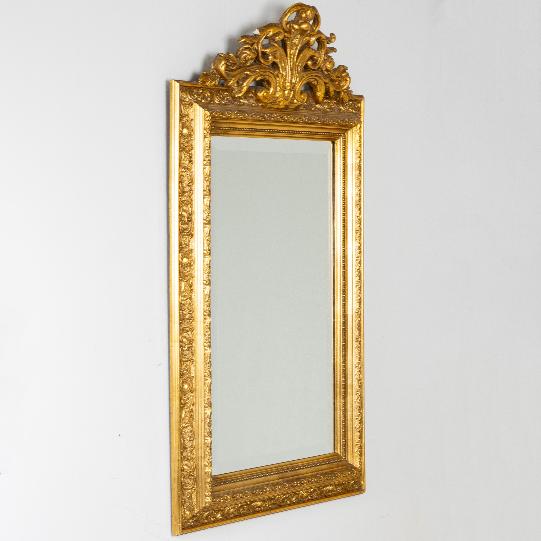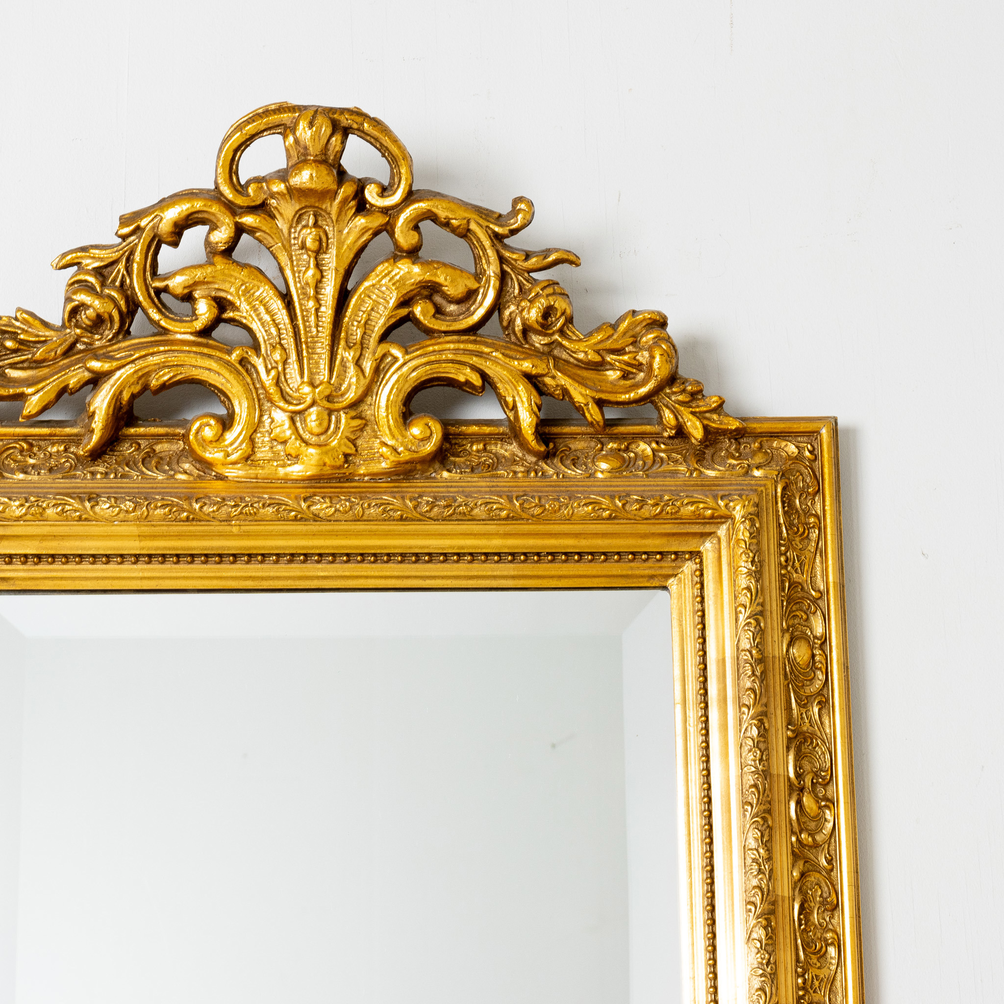 Ram med riklig pastellagedekor, genombrutet krön, fasettslipat glas, ca 107 x 62 cm