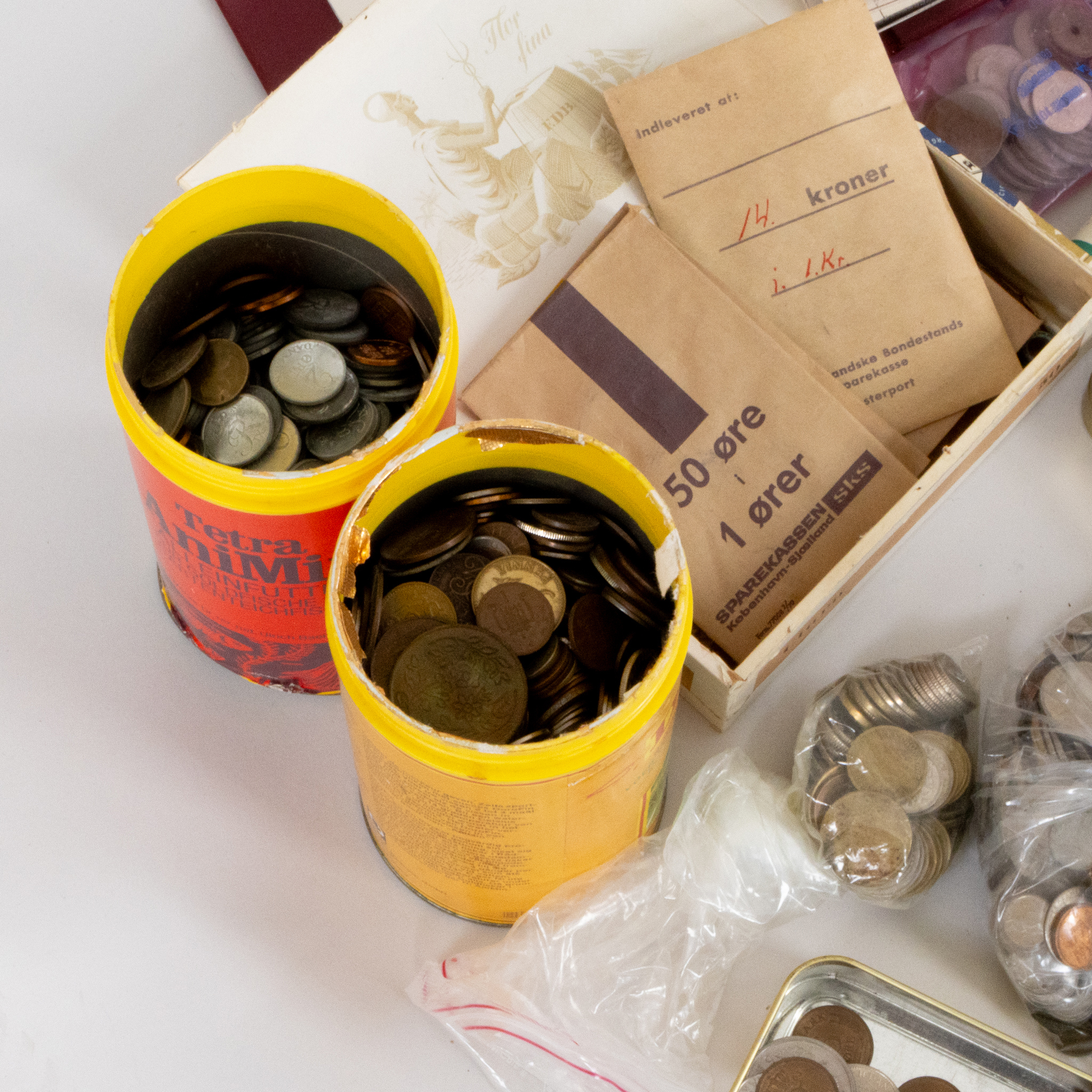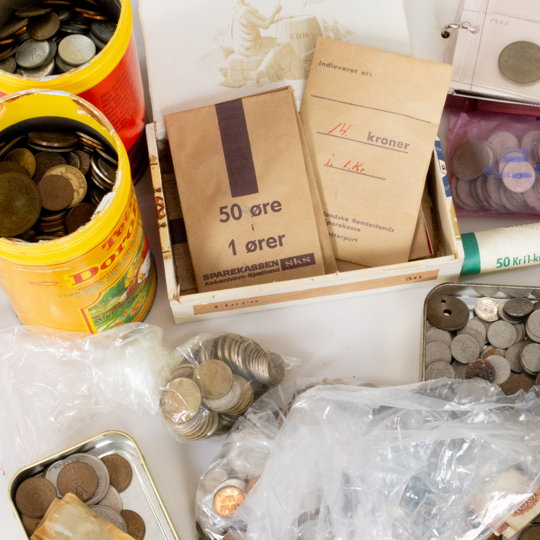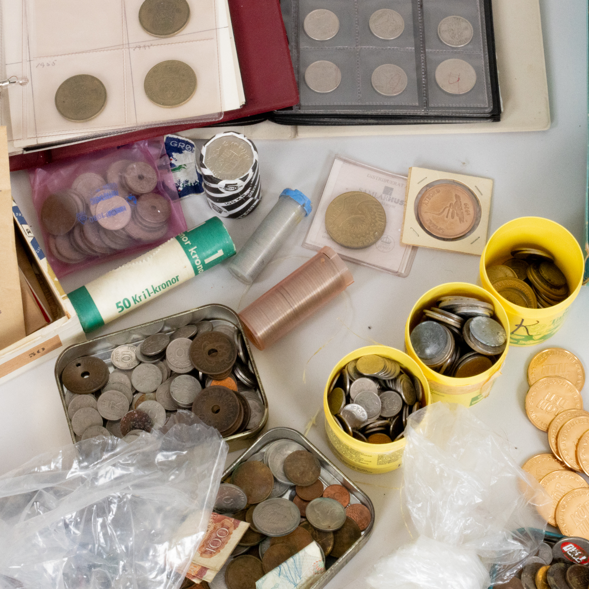 Bilder SAMLING MYNT OCH SEDLAR, olika valörer, mestadels Svenska och Danska 1900-tal, total vikt ca 23 kg