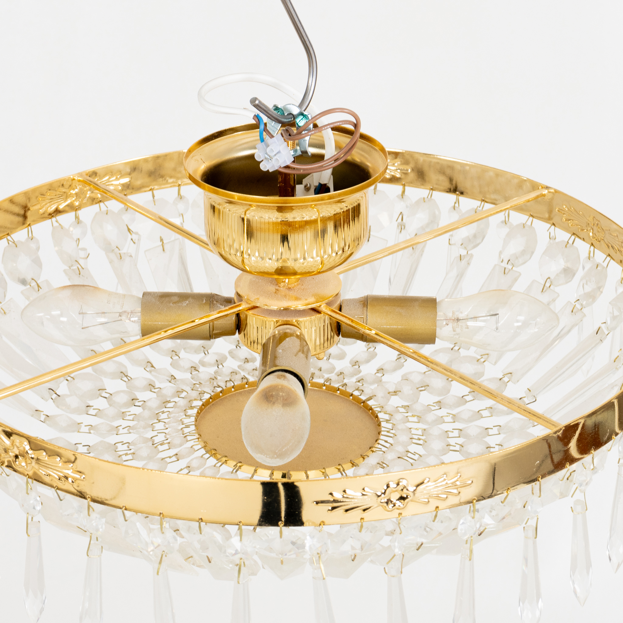 Stomme av mässing, med prismor, fyra ljuspunkter, diameter ca 43, höjd ca 25 cm