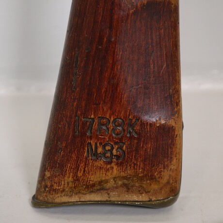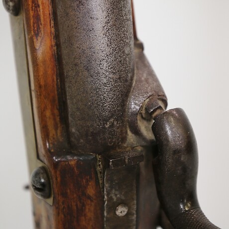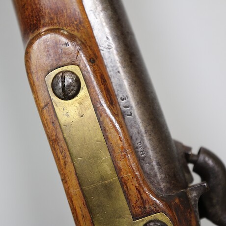 Bilder Slaglåsgevär 1800-tal, märkt "CB", troligen ombyggt från flintlås, helstock L=147 + 2st äldre bajonetter