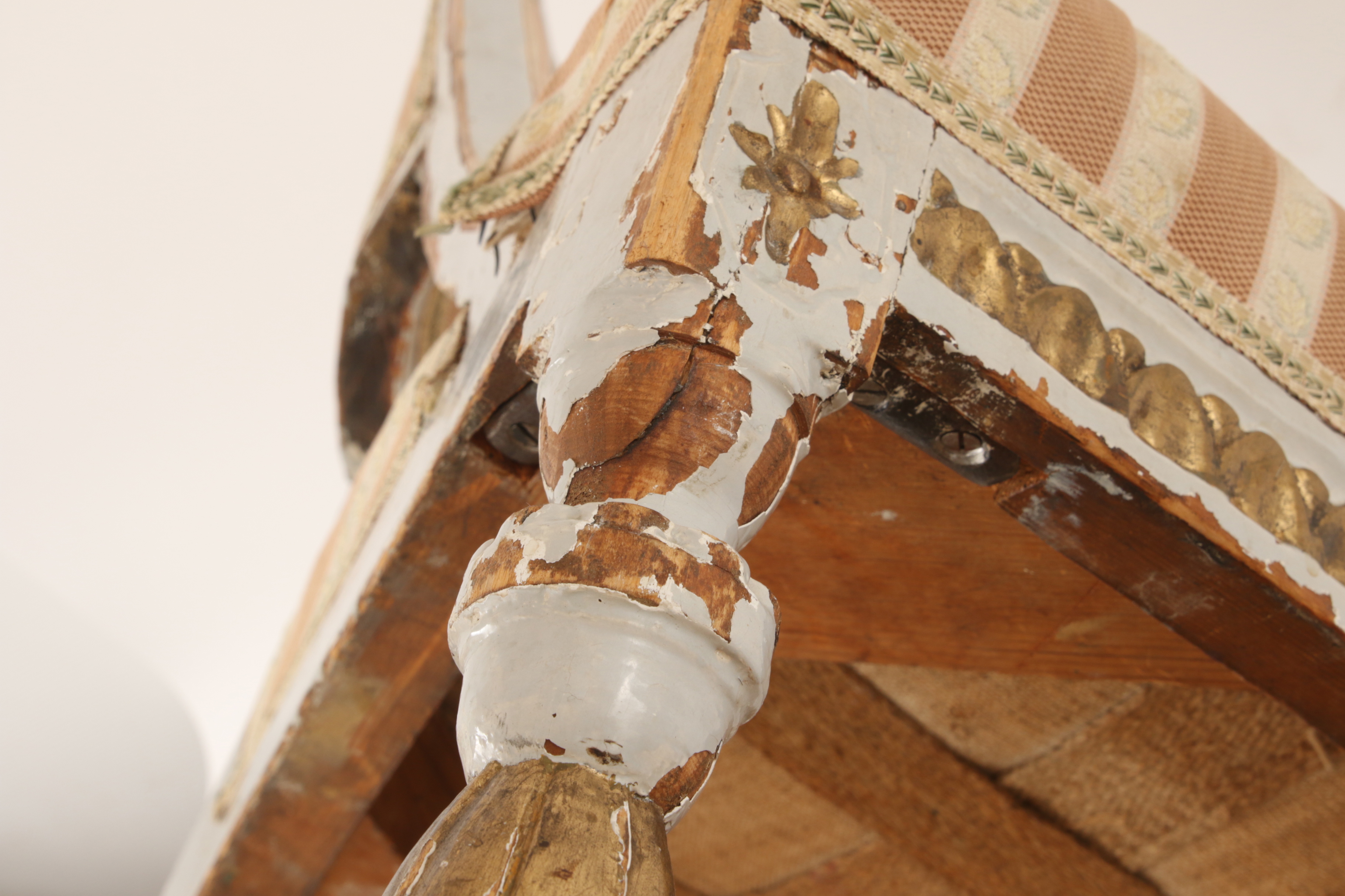 Bladhölstrade ben. Skuren bård. Bemålad och bronserad.