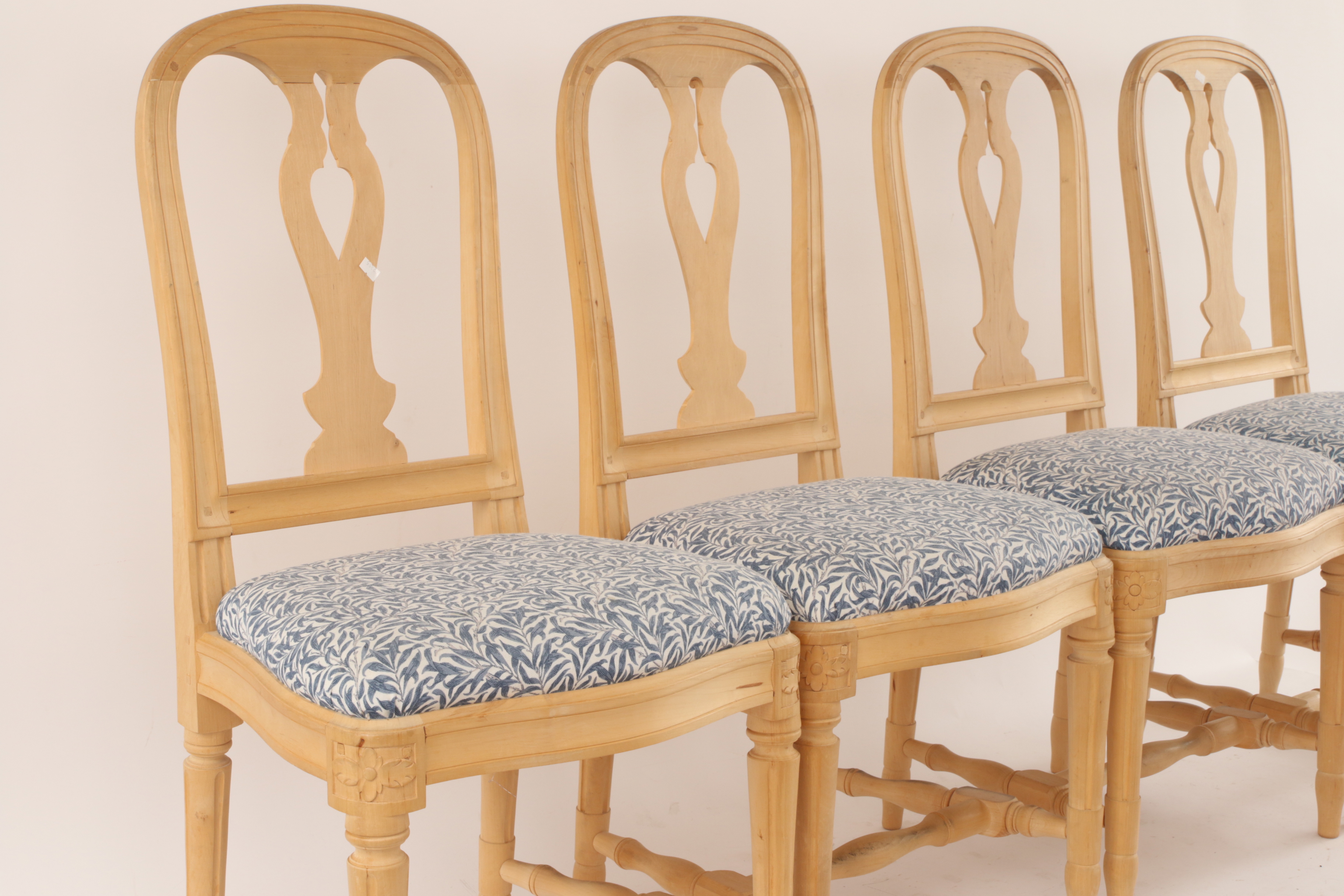 Björk. Lösstoppade sitsar klädda med "Willow Boughs Minor", William Morris.