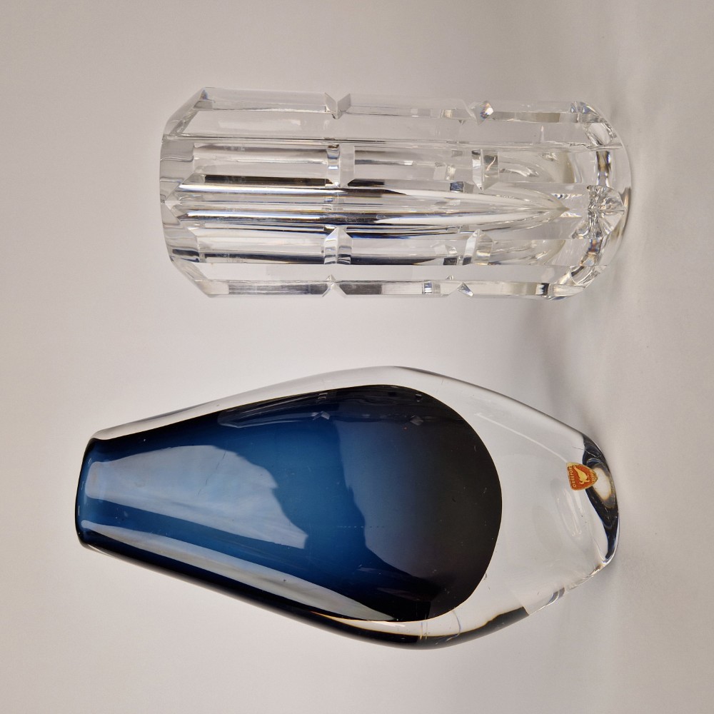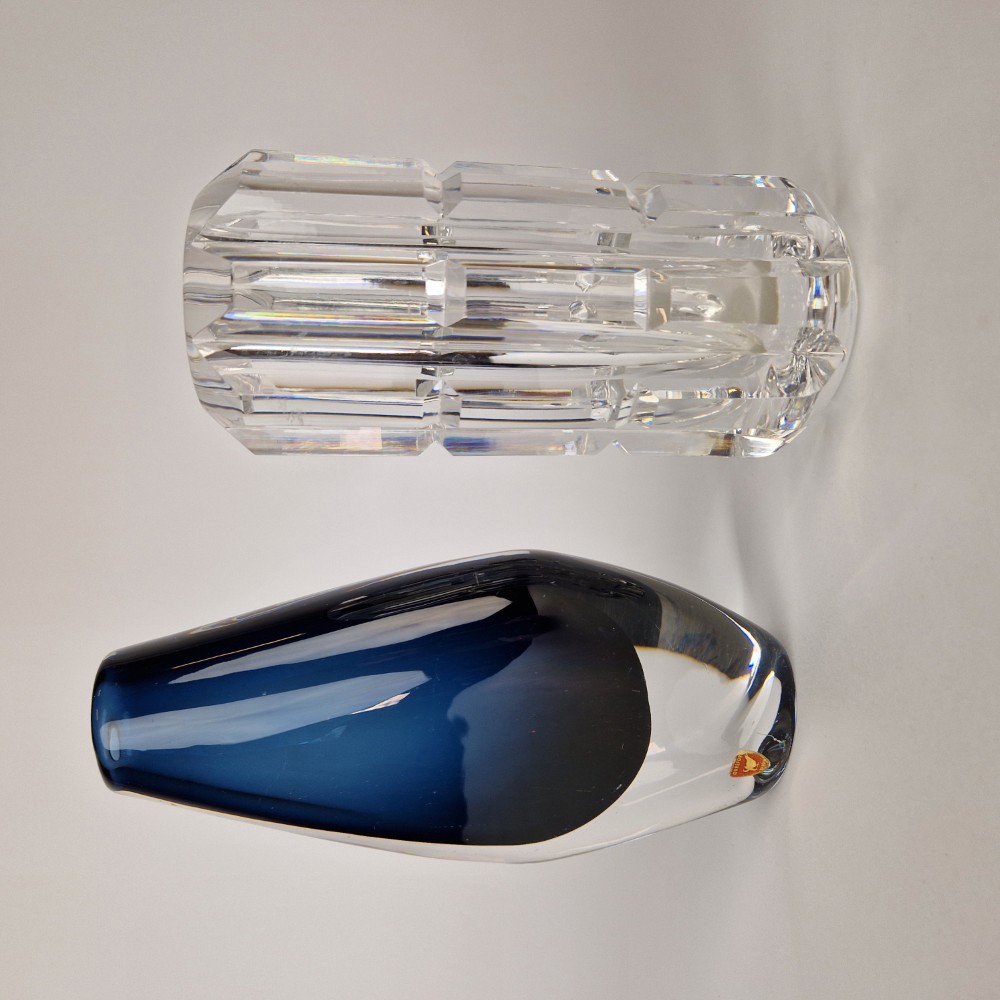 Nils Landberg, klarglas med blått underfång, höjd 21 cm.