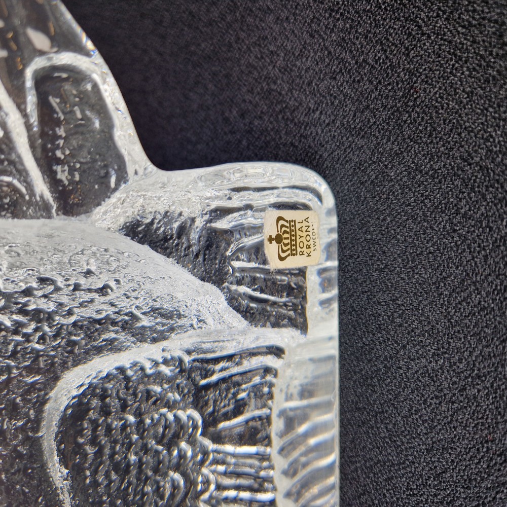 Glasblock, Mats Jonasson, "Tjäder", Royal Krona, höjd 21 cm.