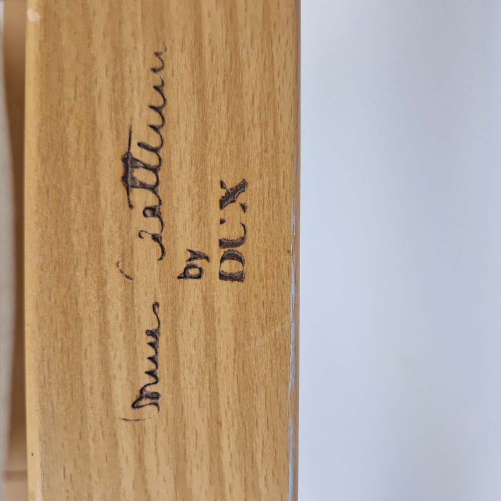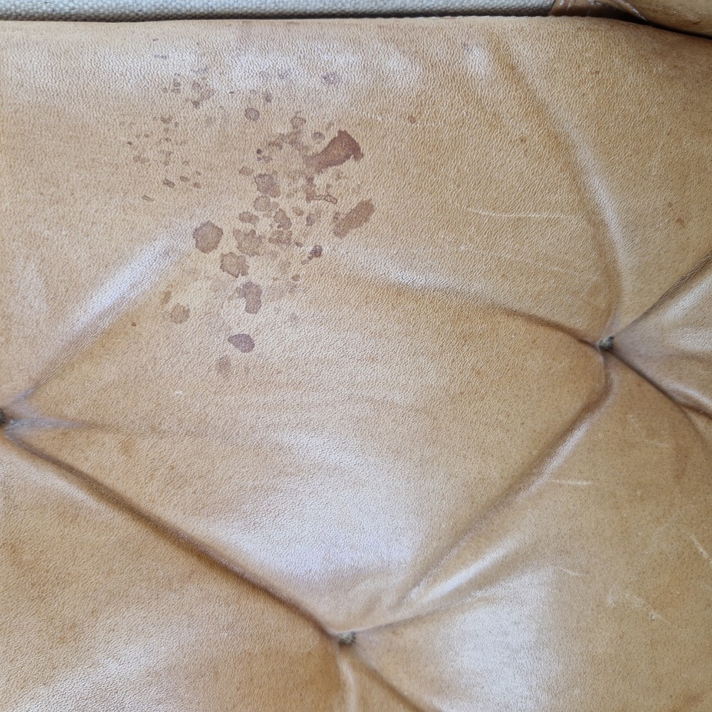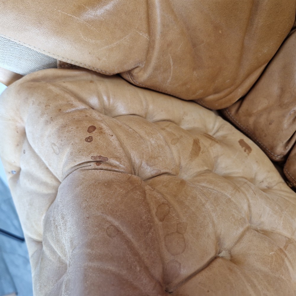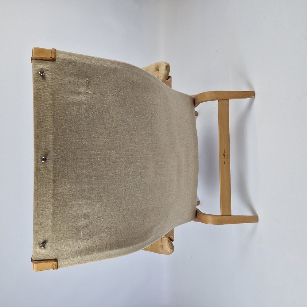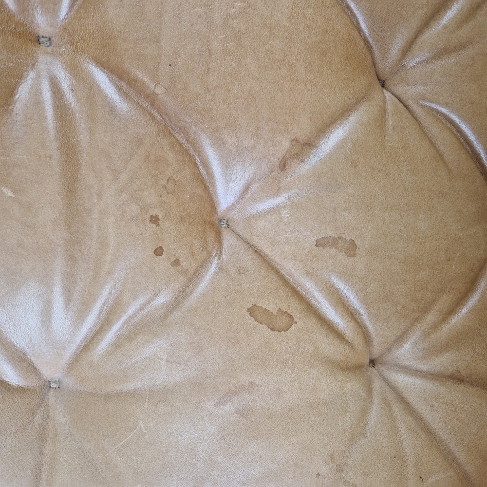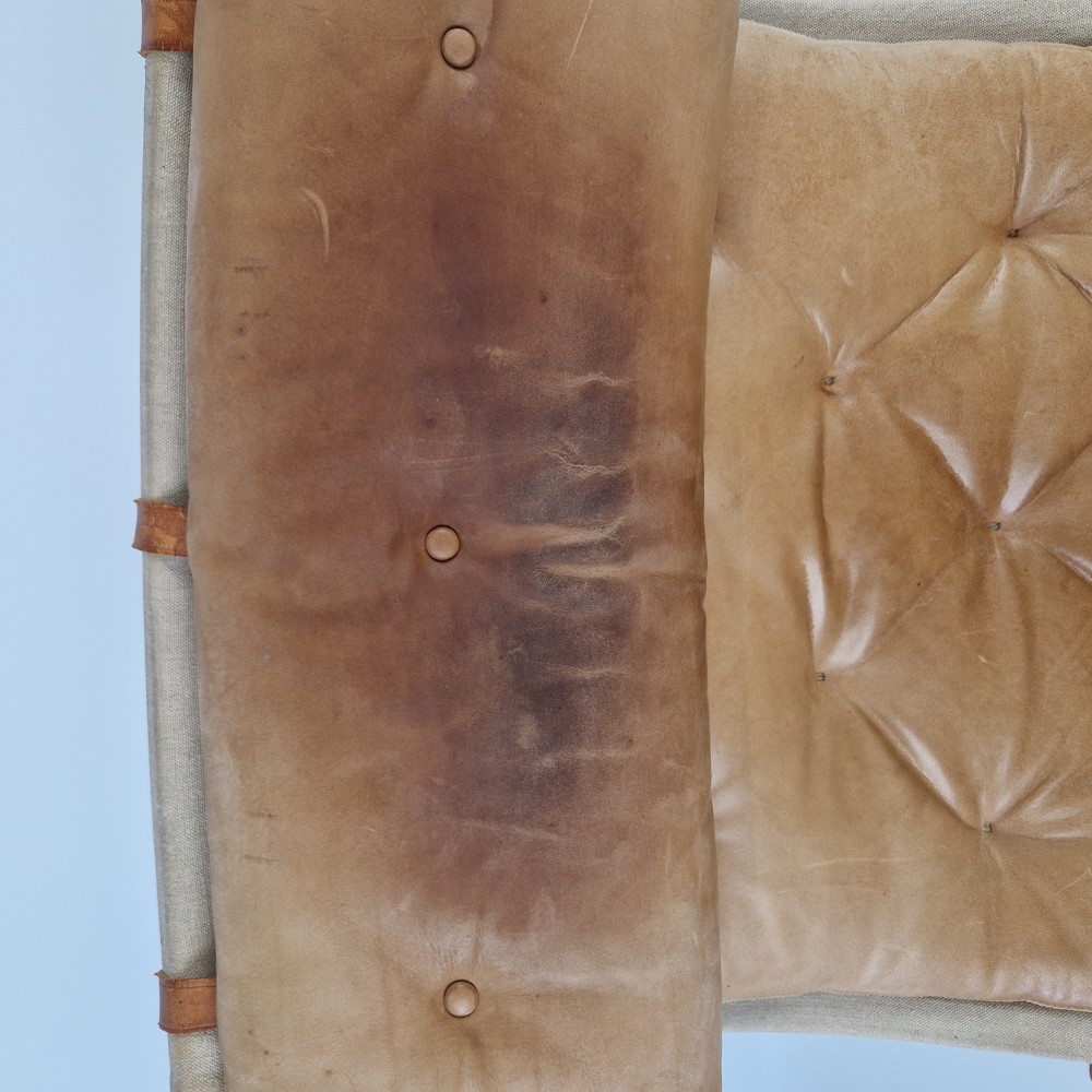 Fåtöljer, ett par och en fotpall, DUX. Böjträ i bok med ljus skinnklädsel. Brännstämplade.