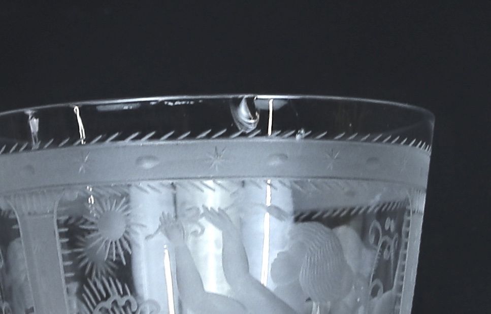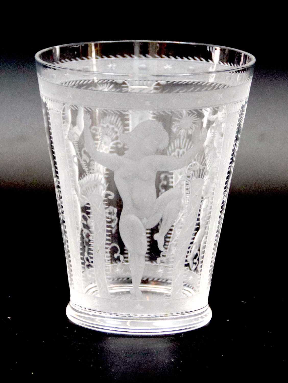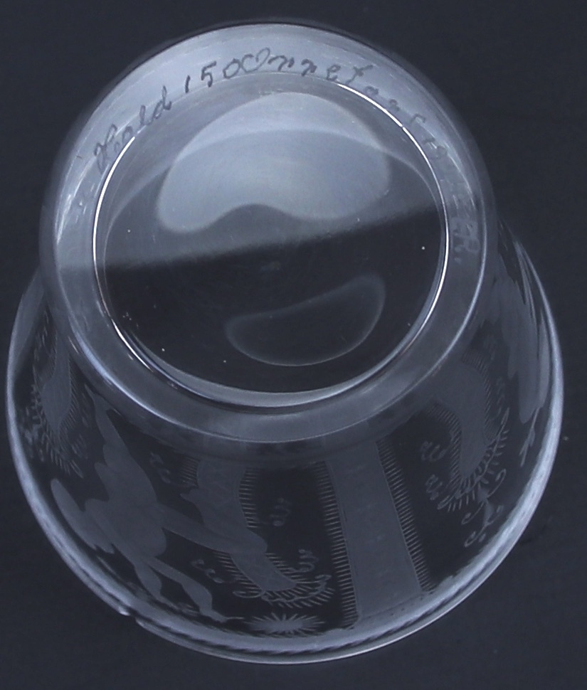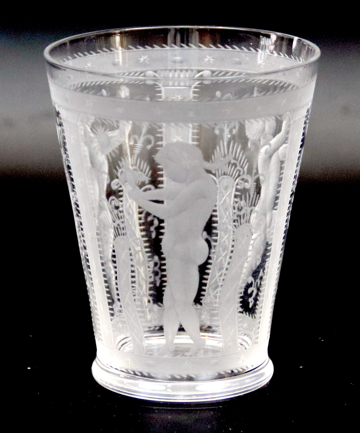 Edward Hald, bägare, slipat glas, signerad, Orrefors 1924. Gravörsignerad E.R.