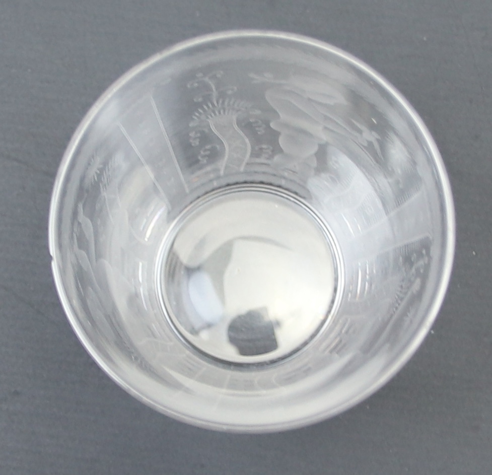Bilder Edward Hald, bägare, slipat glas, signerad, Orrefors 1924. Gravörsignerad E.R.