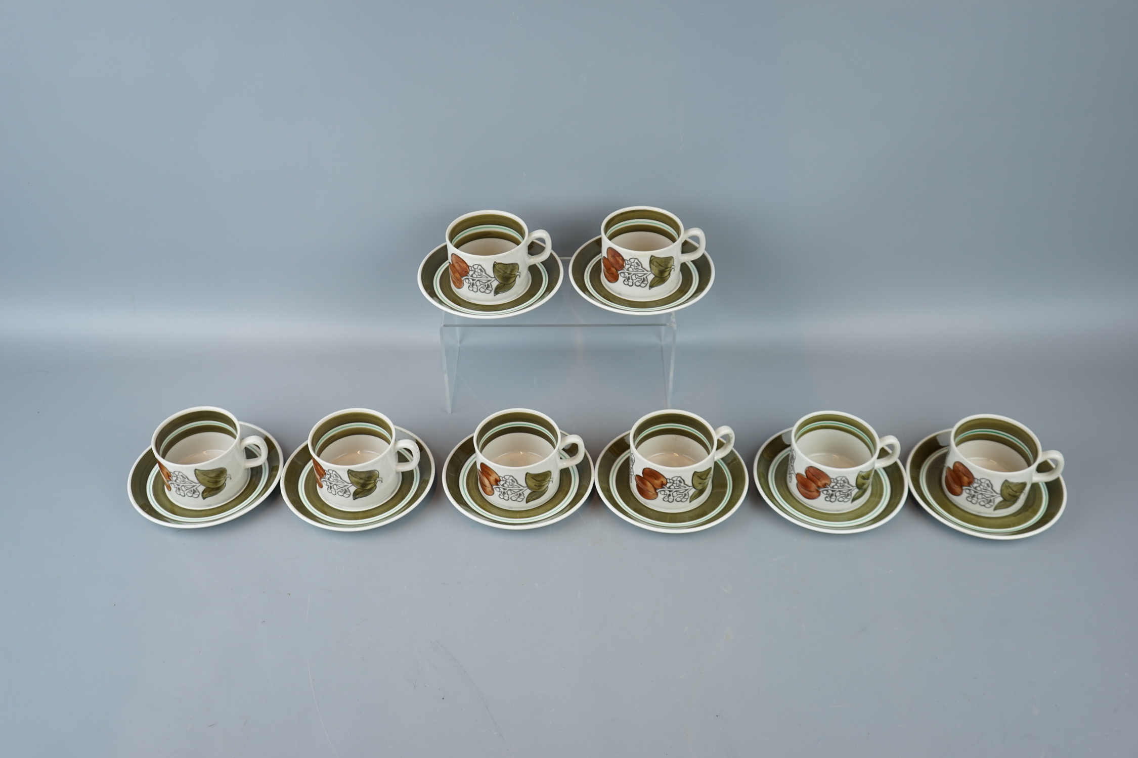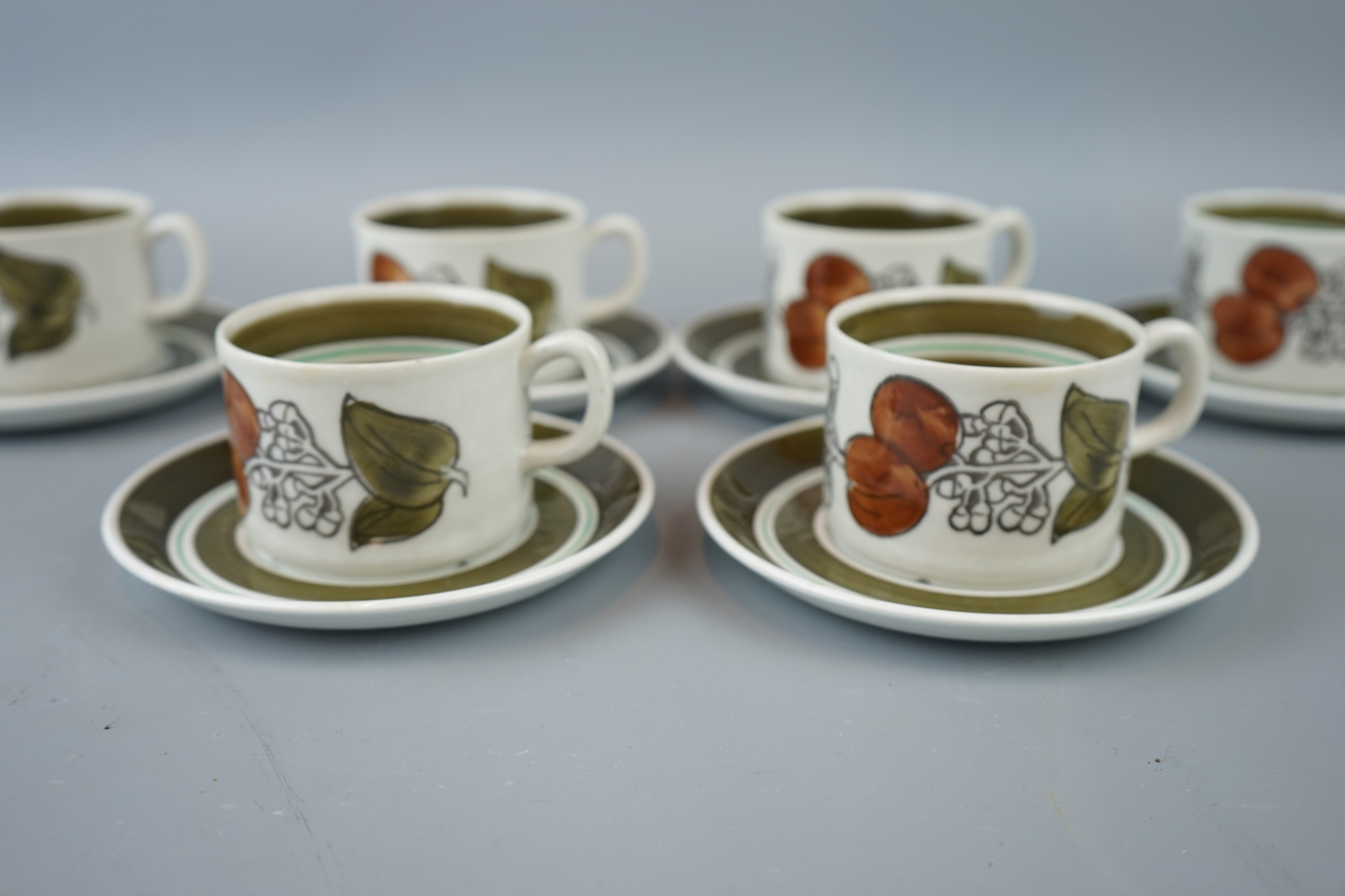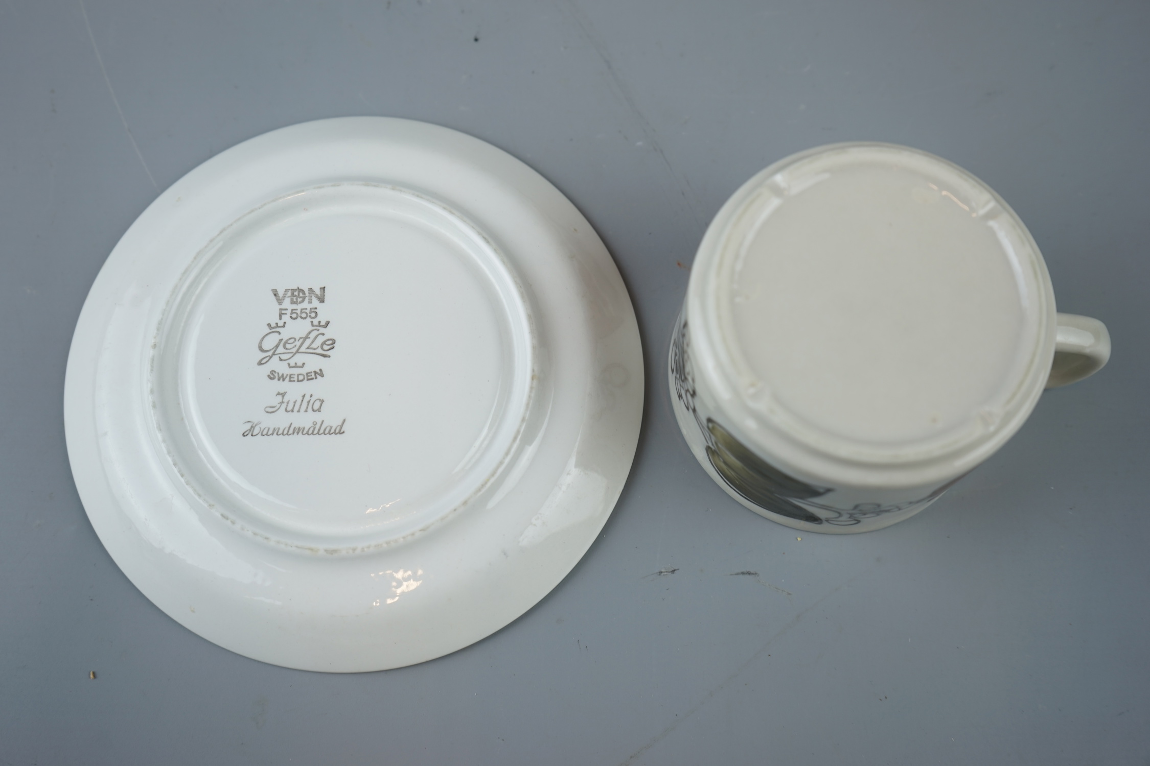 Bilder Jackie Lynd, kaffekoppar och fat, 8 st, porslin, "Julia", Gefle, 1976.