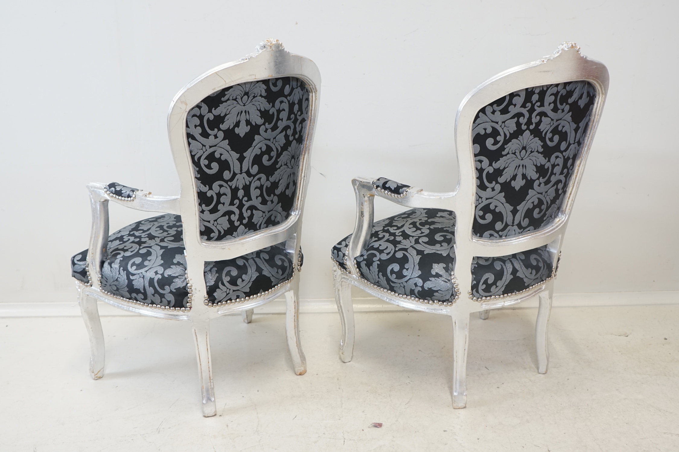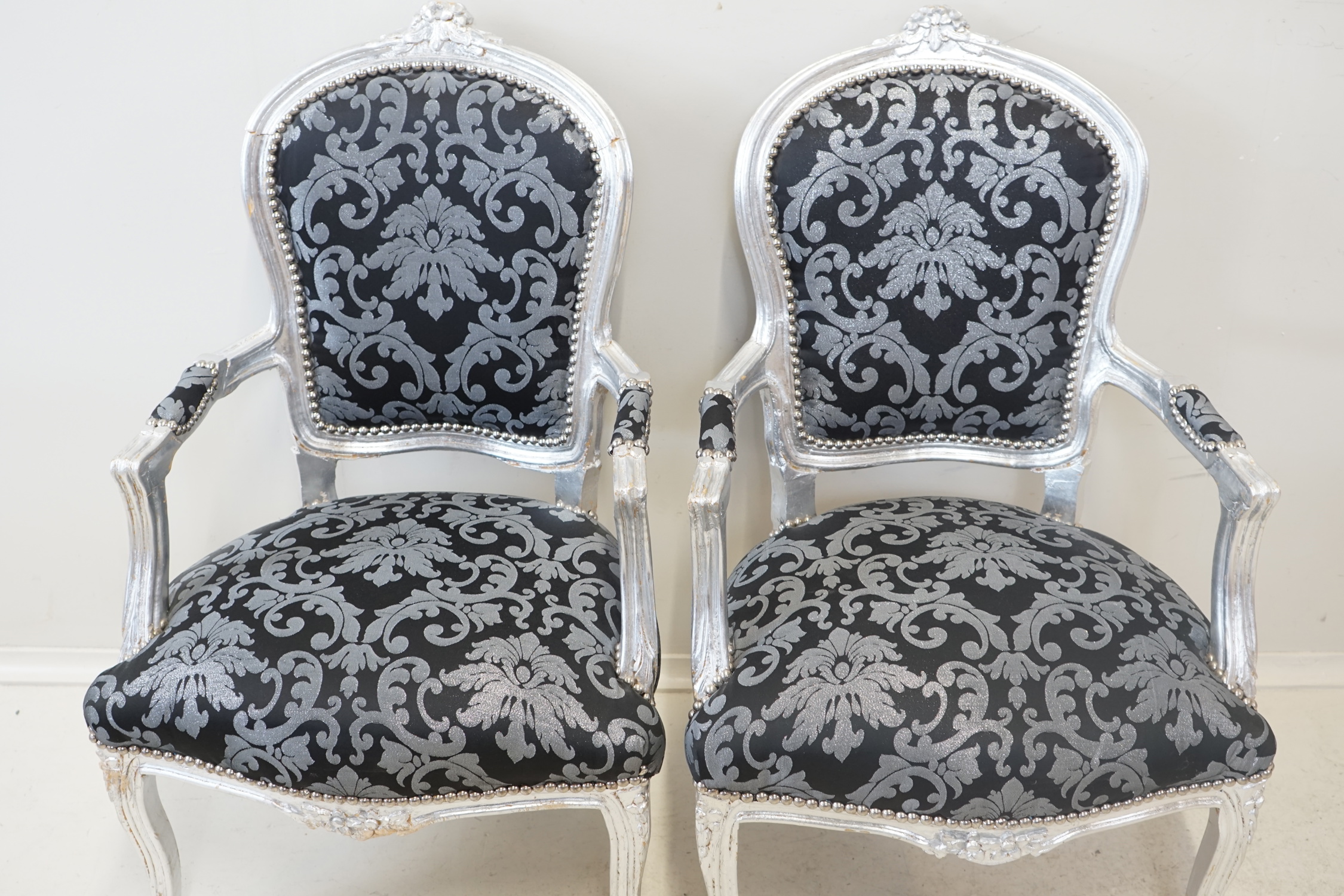 Karmstolar, ett par, trä, textil, rokokostil, 1900-tal.