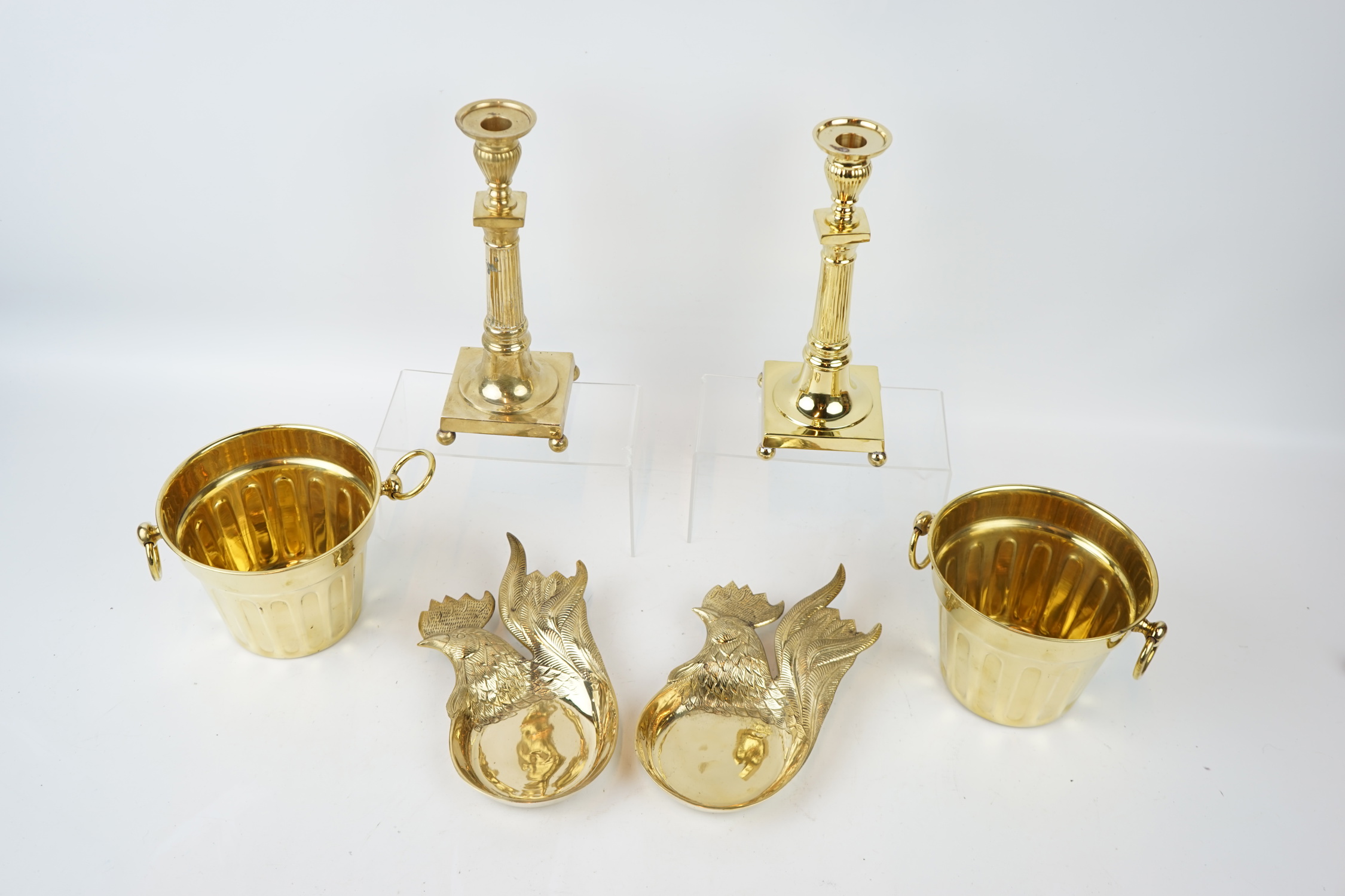 Bilder Skålar, ljusstakar och ytterfoder, 6 delar, mässing, Munka Sweden, samtida.