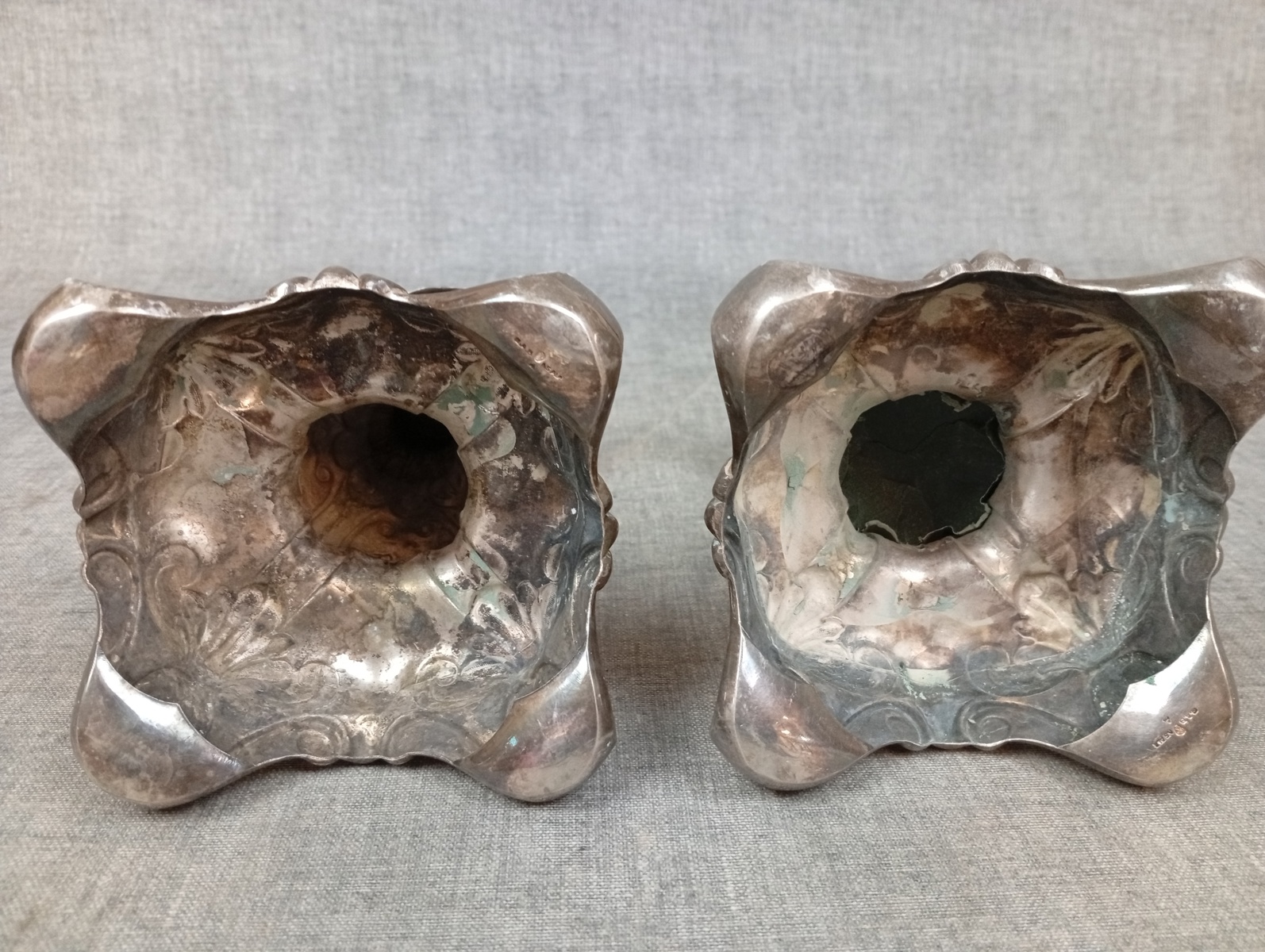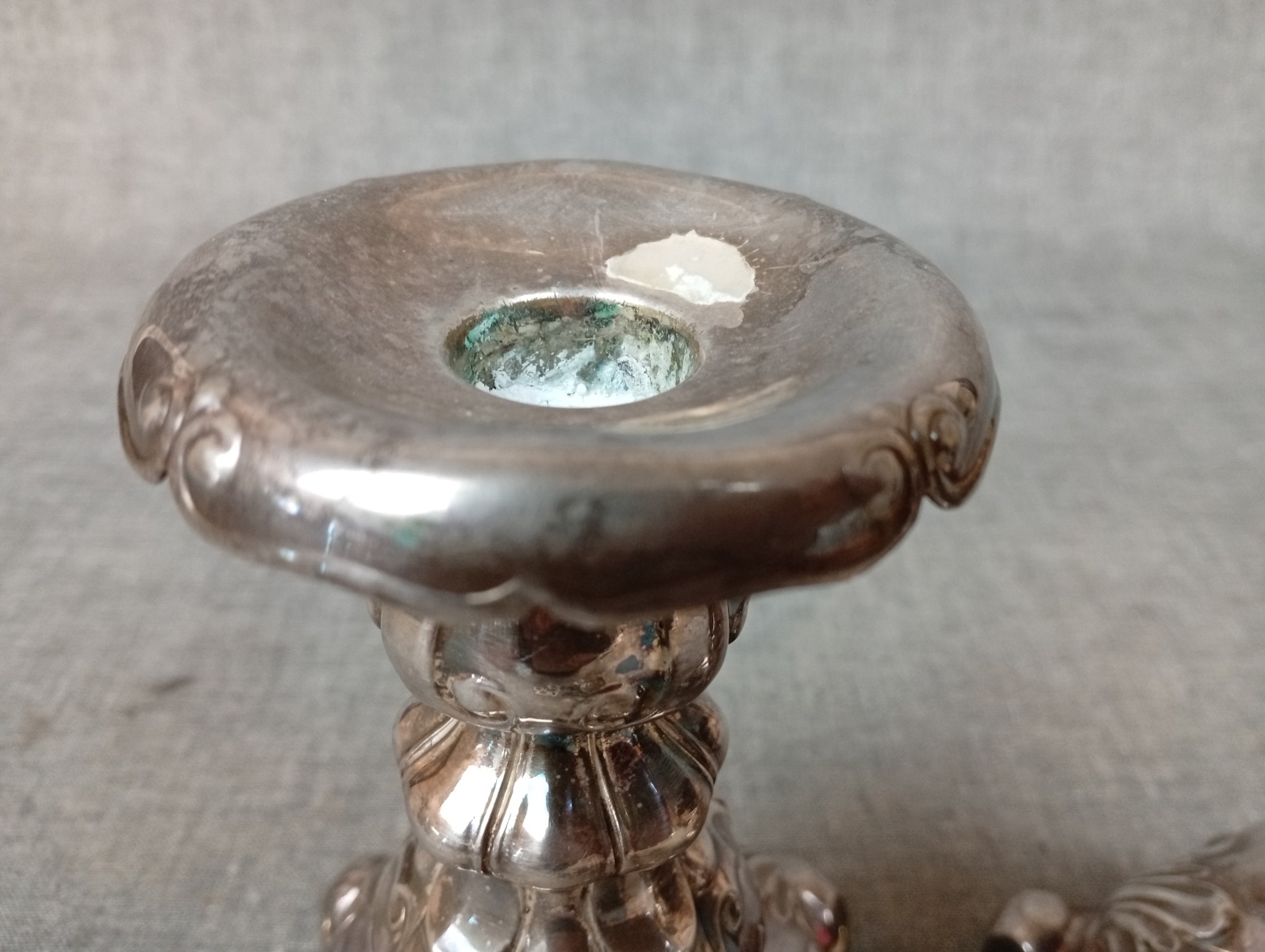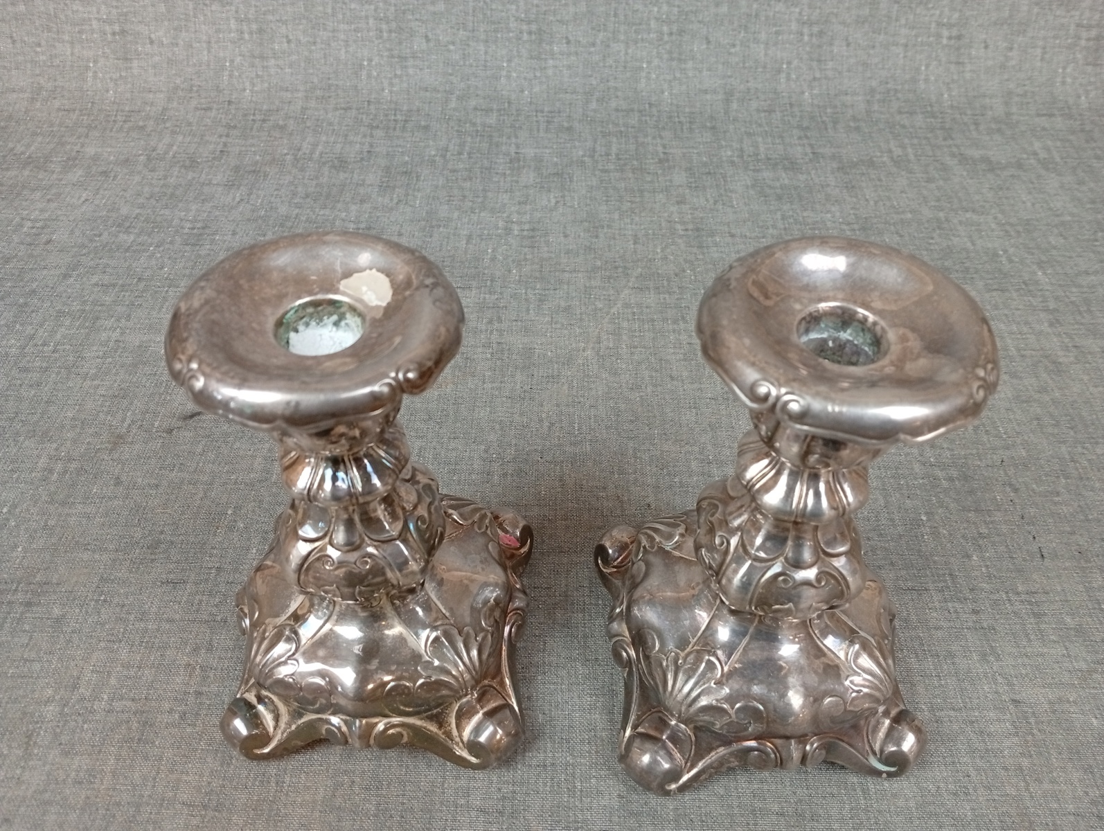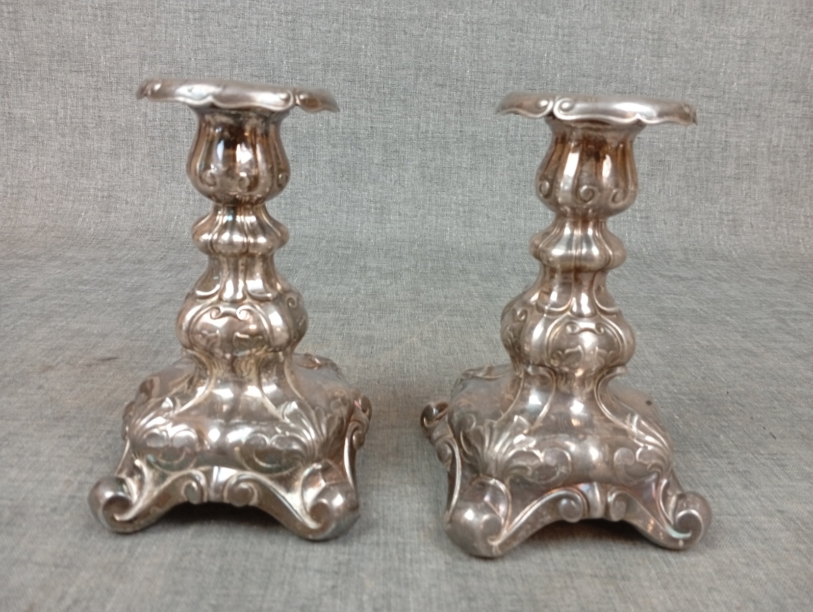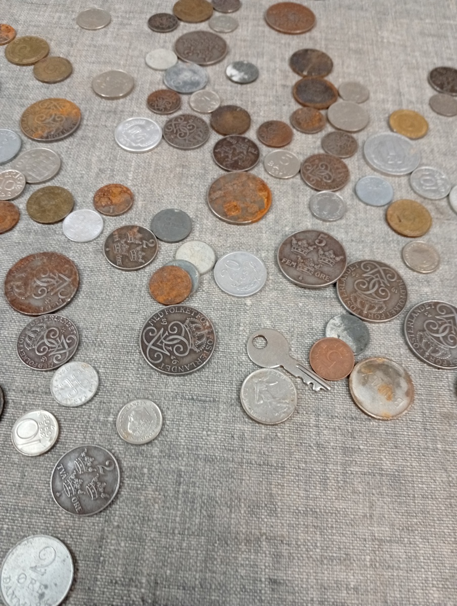 Bilder 2 Ljusstakar, Barock-stil, Nysilver & diverse mynt.
