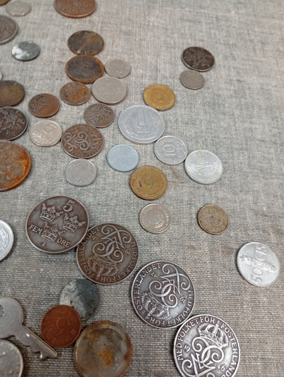2 Ljusstakar, Barock-stil, Nysilver & diverse mynt.