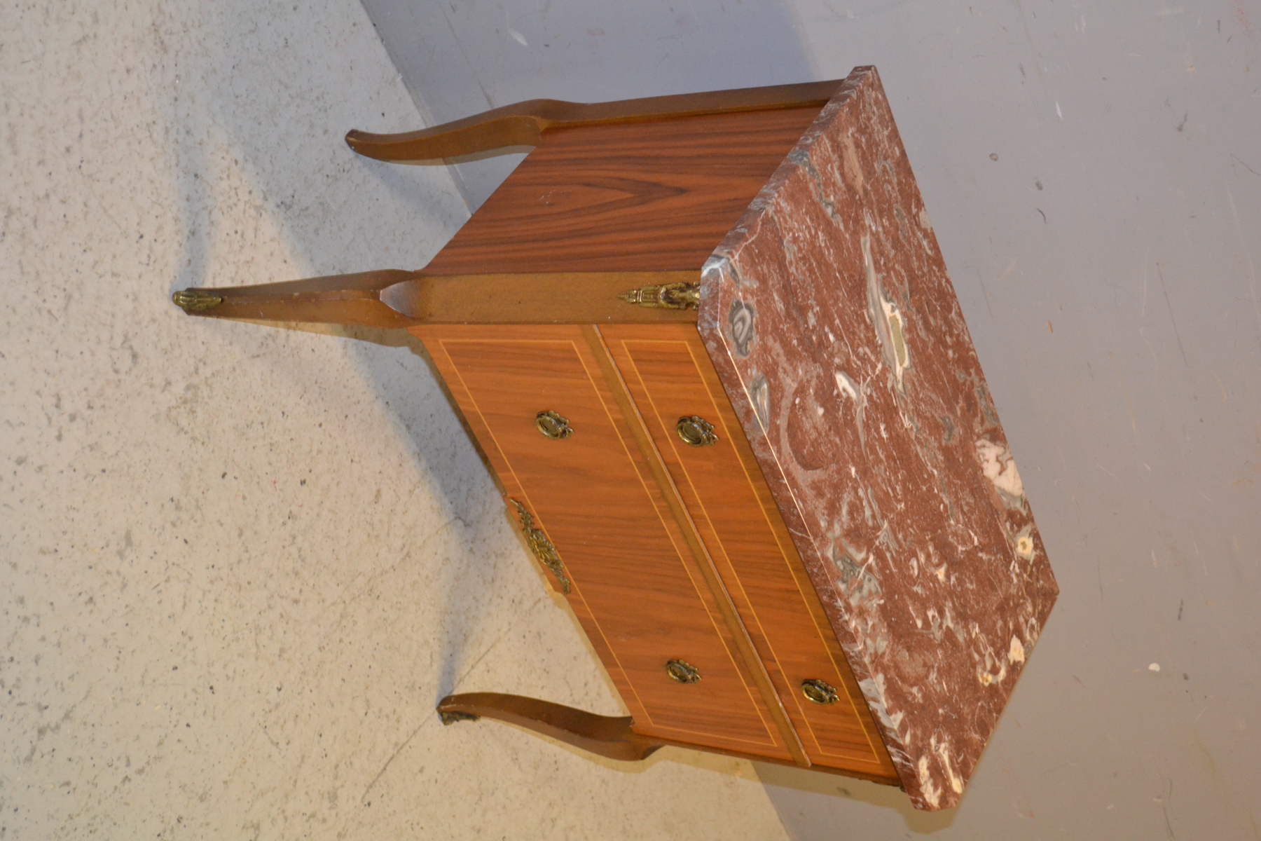 Bilder Byrå. 2-Lådig, Mahogny med stenskiva, Gustaviansk-stil, 1900-talets andra hälft.