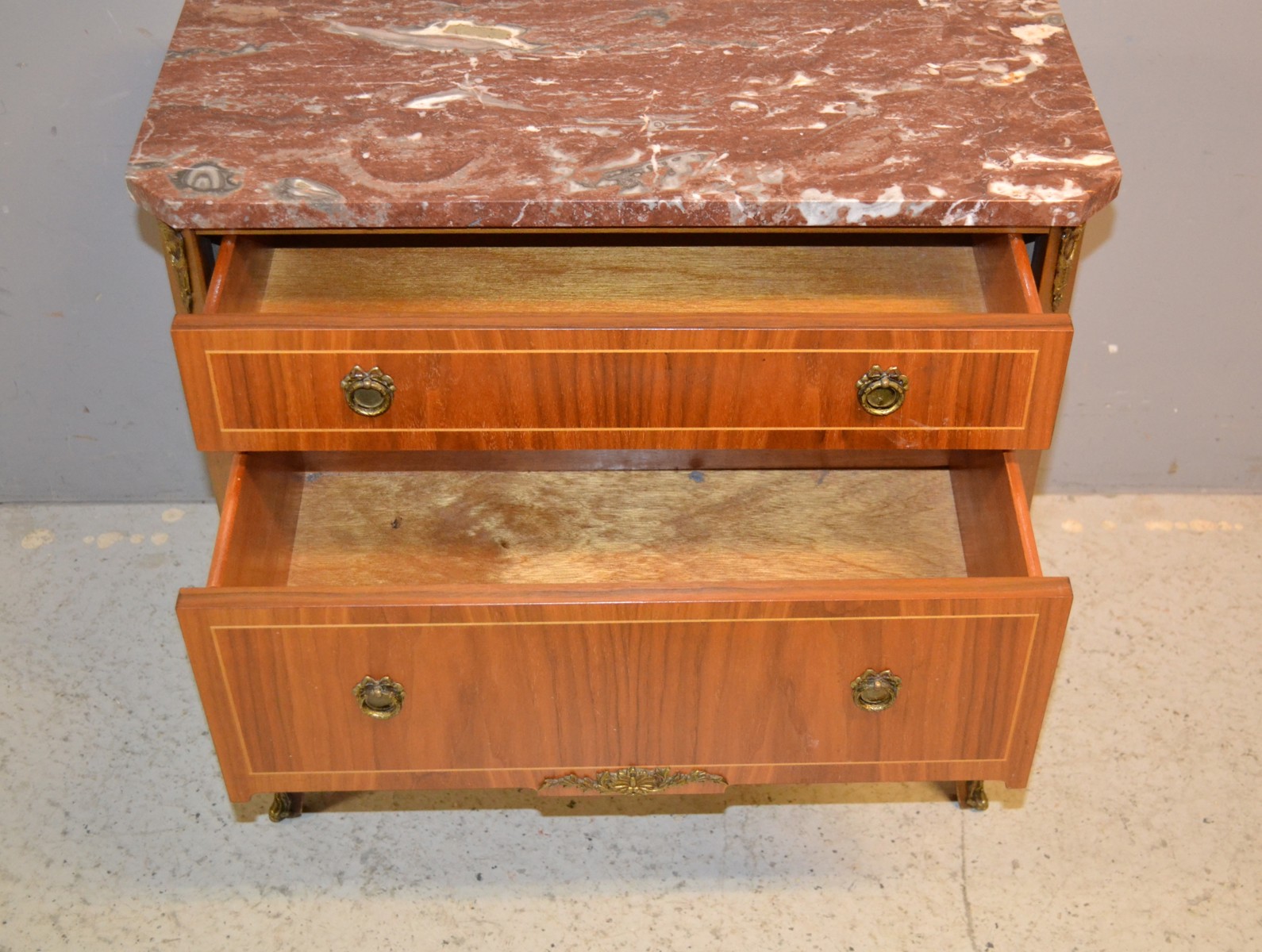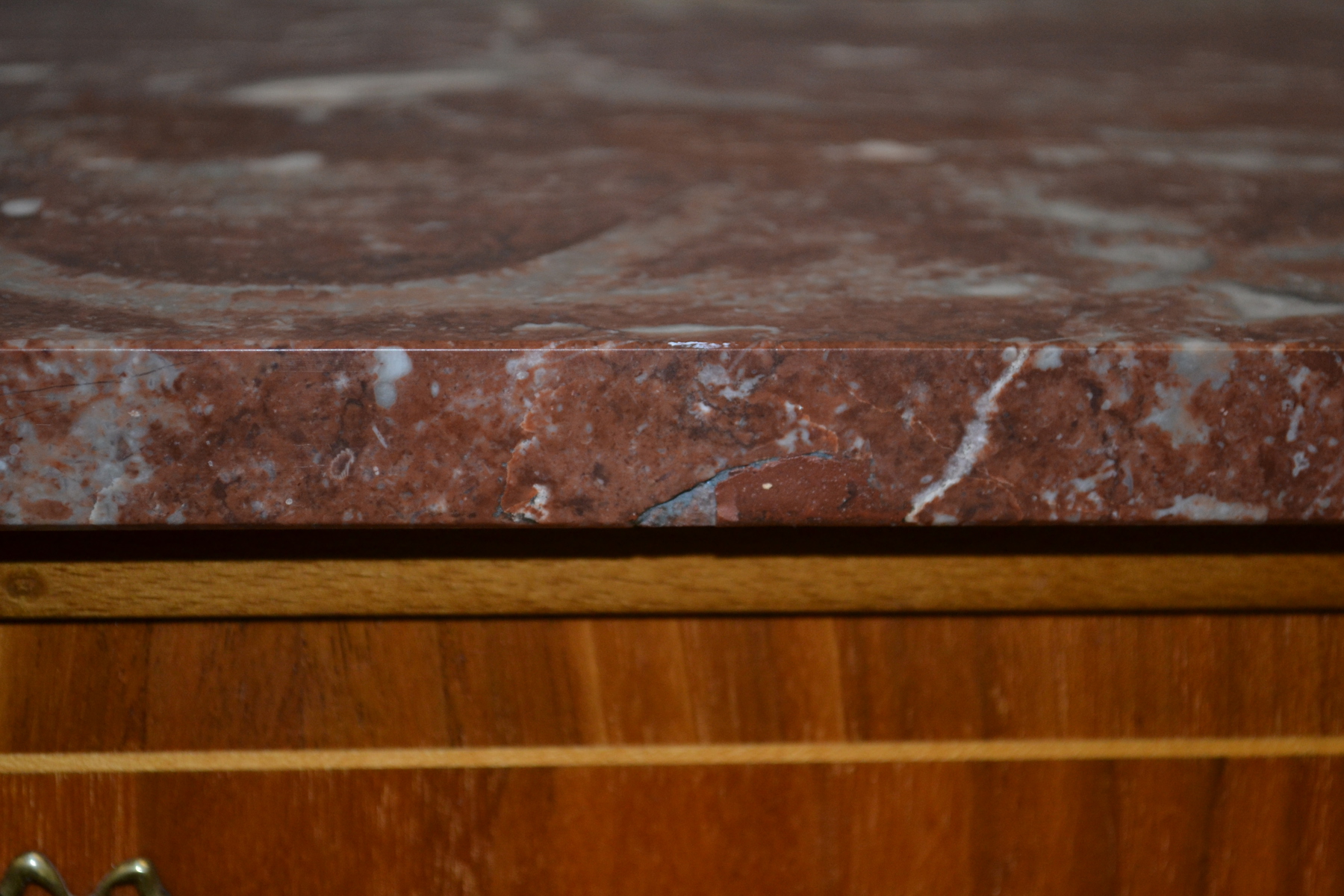 Byrå. 2-Lådig, Mahogny med stenskiva, Gustaviansk-stil, 1900-talets andra hälft.