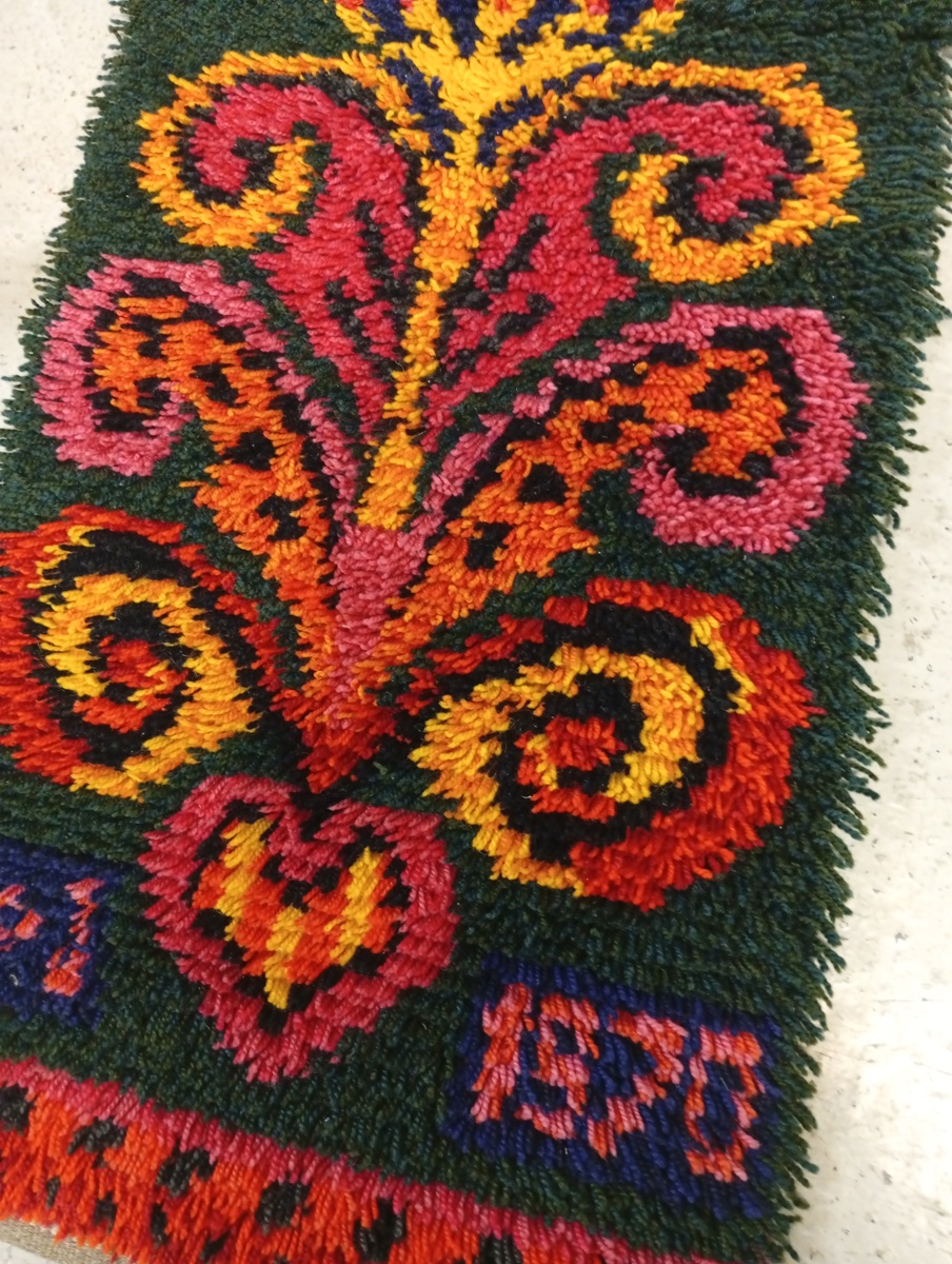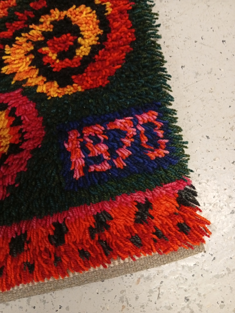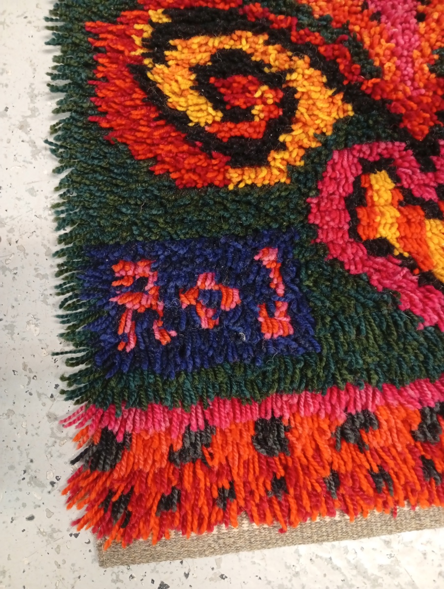 Rya. Väggbonad. Signerad A.J & daterad 1970.