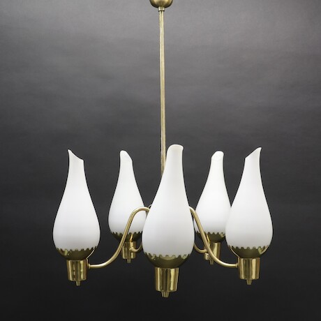 Bilder Taklampa, 1900-talets mitt, mässing glas och trä, diameter 50 cm