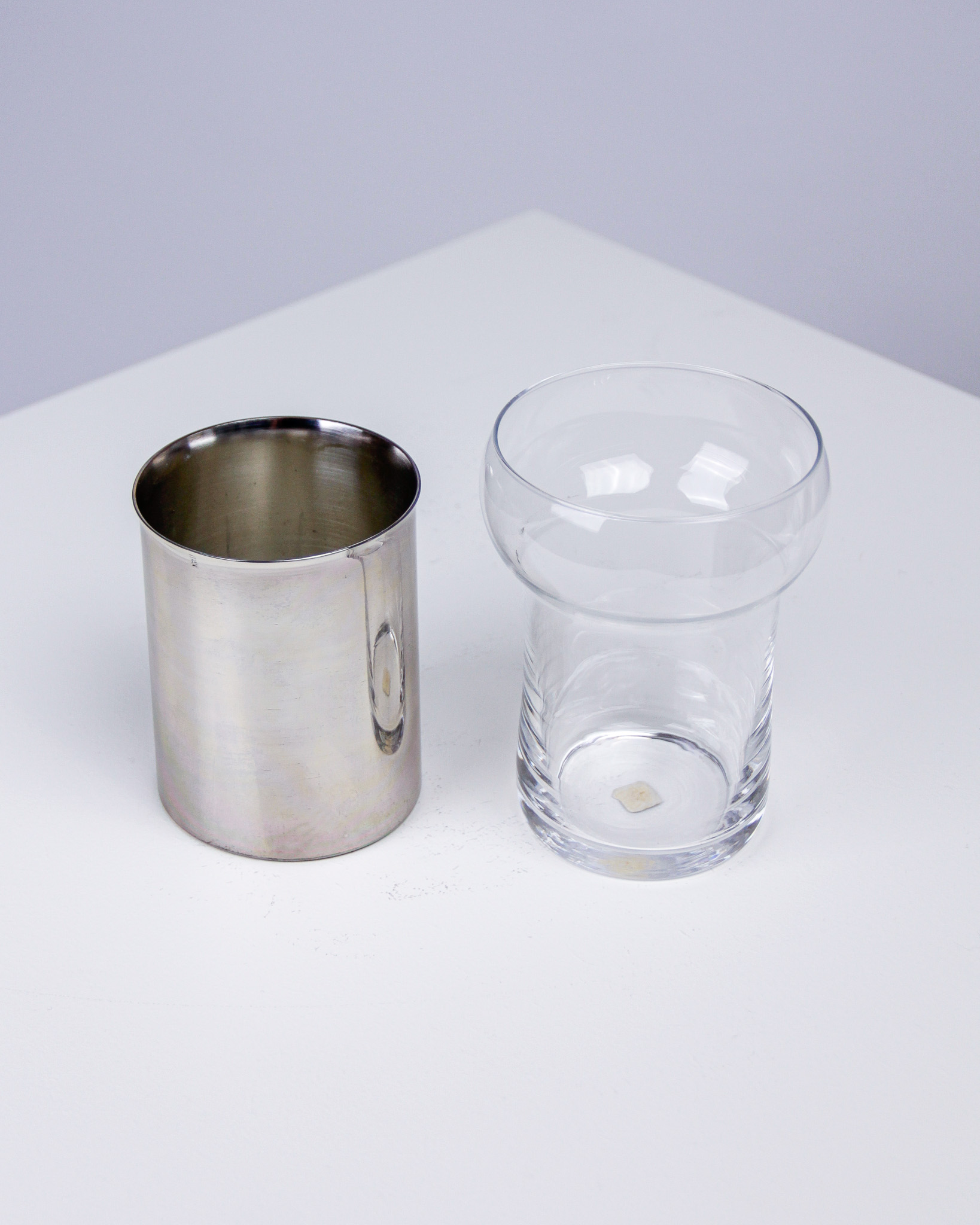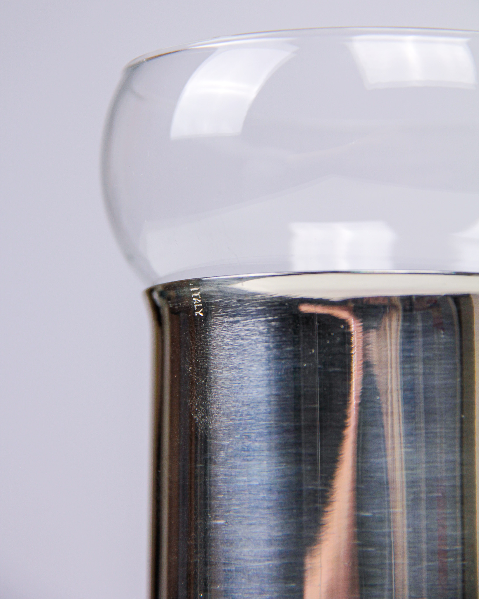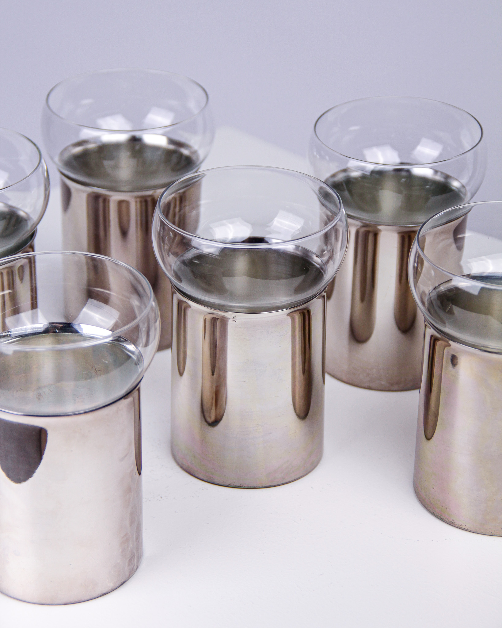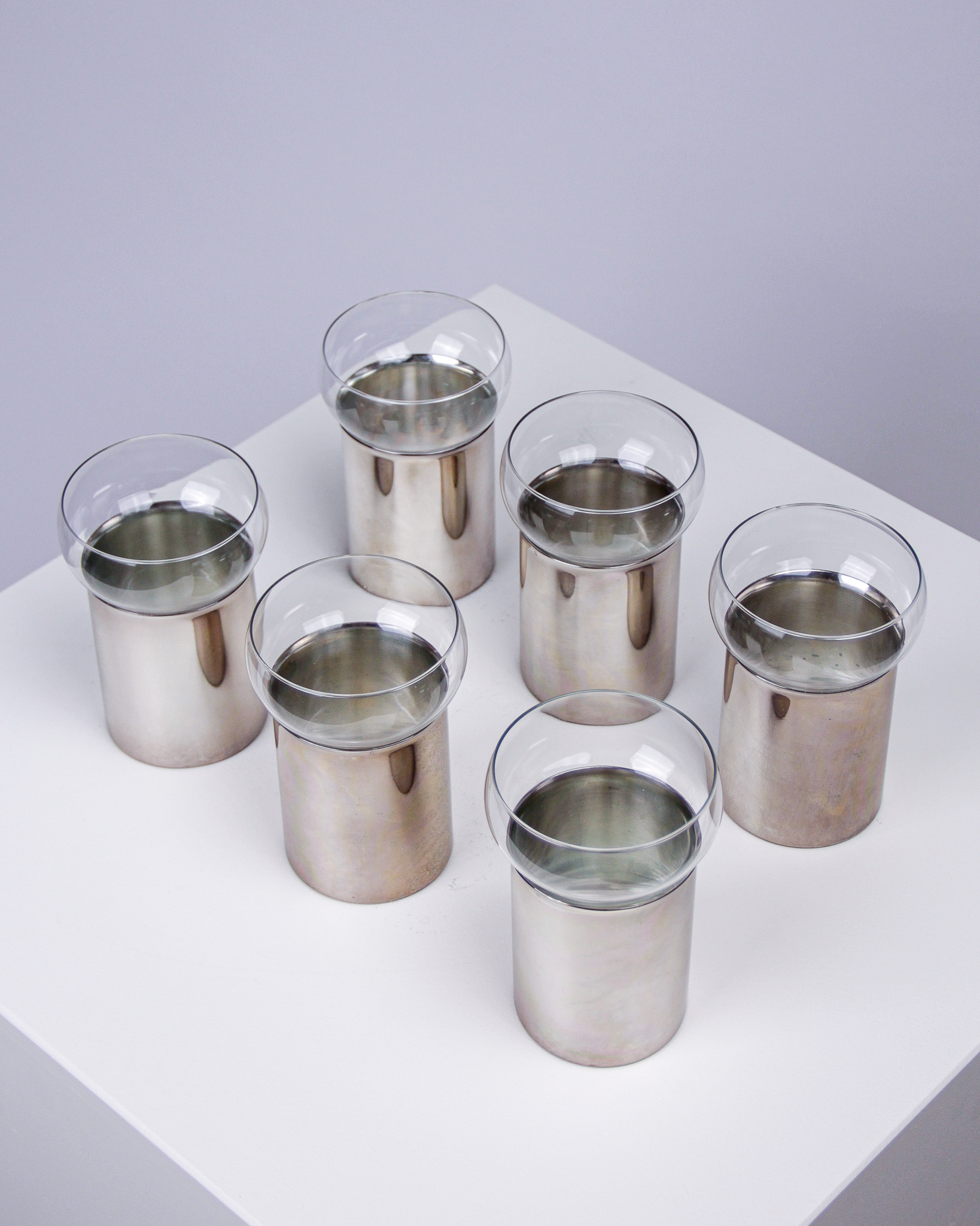 Auktioner Keramik & Porslin Italienska dricksglas, 6 st, glas och rostfritt stål, etikettmärkta PB Peruzzi & Bozzi Italy