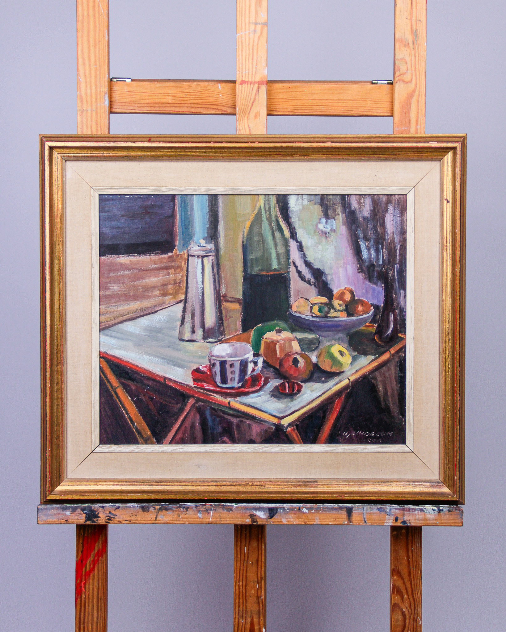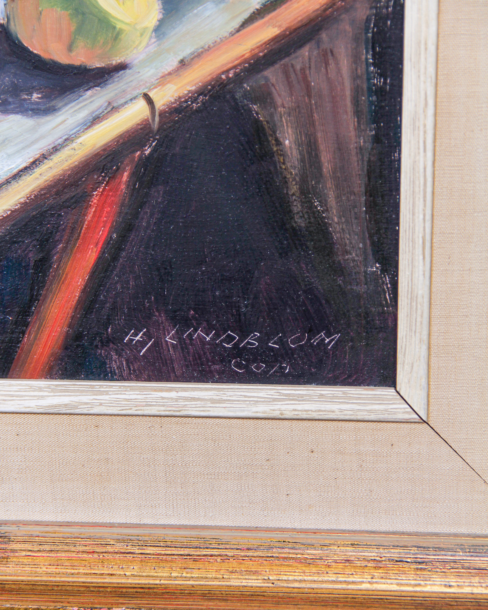 Hjalmar Lindblom, stilleben, olja på pannå, signerad