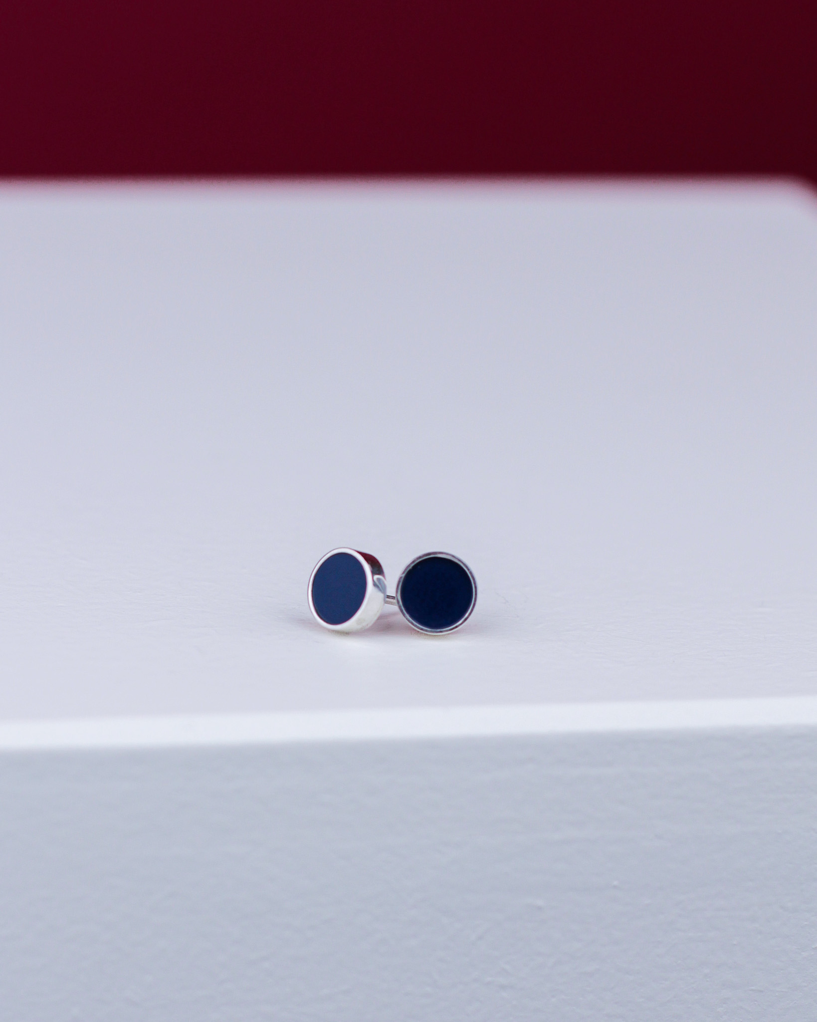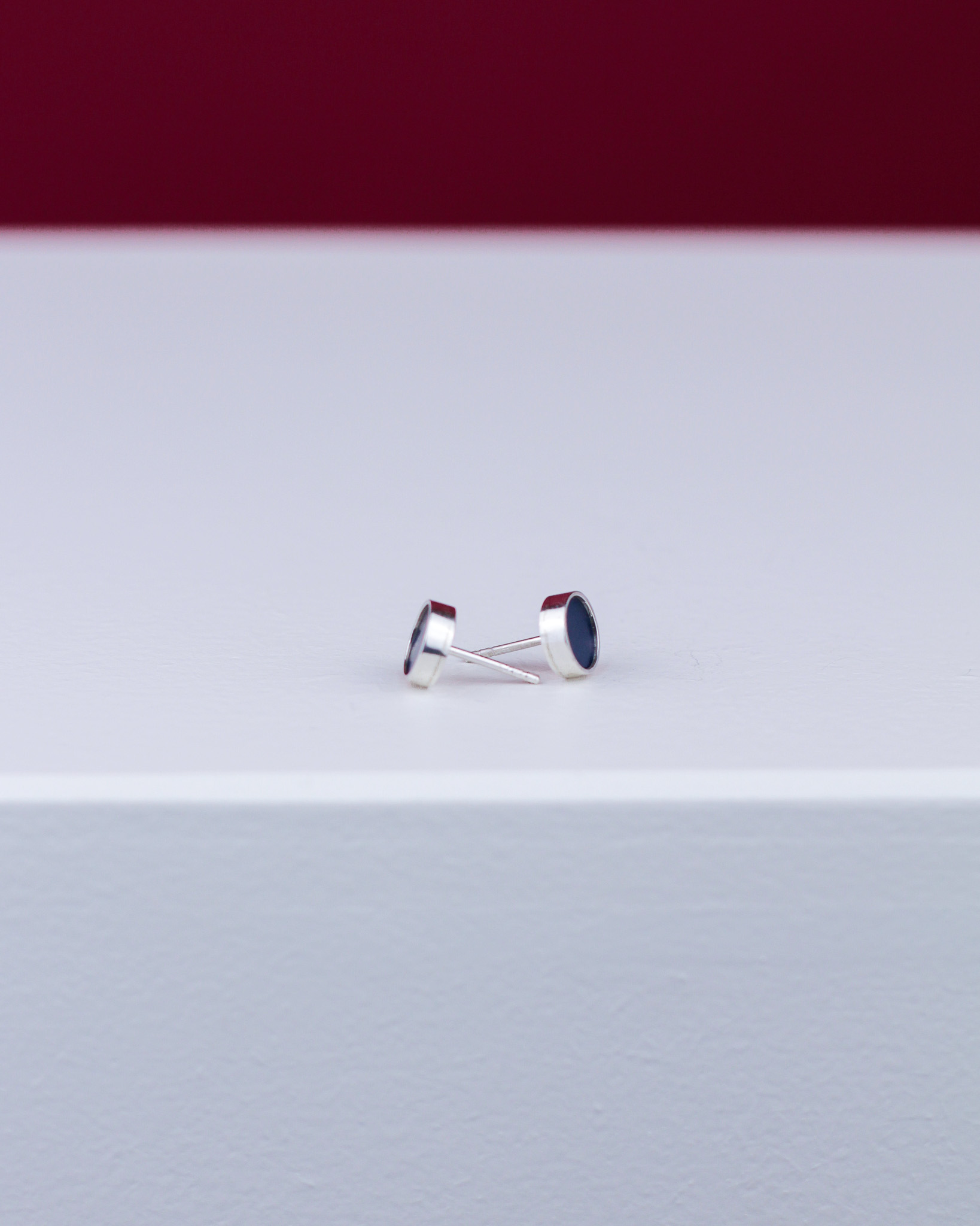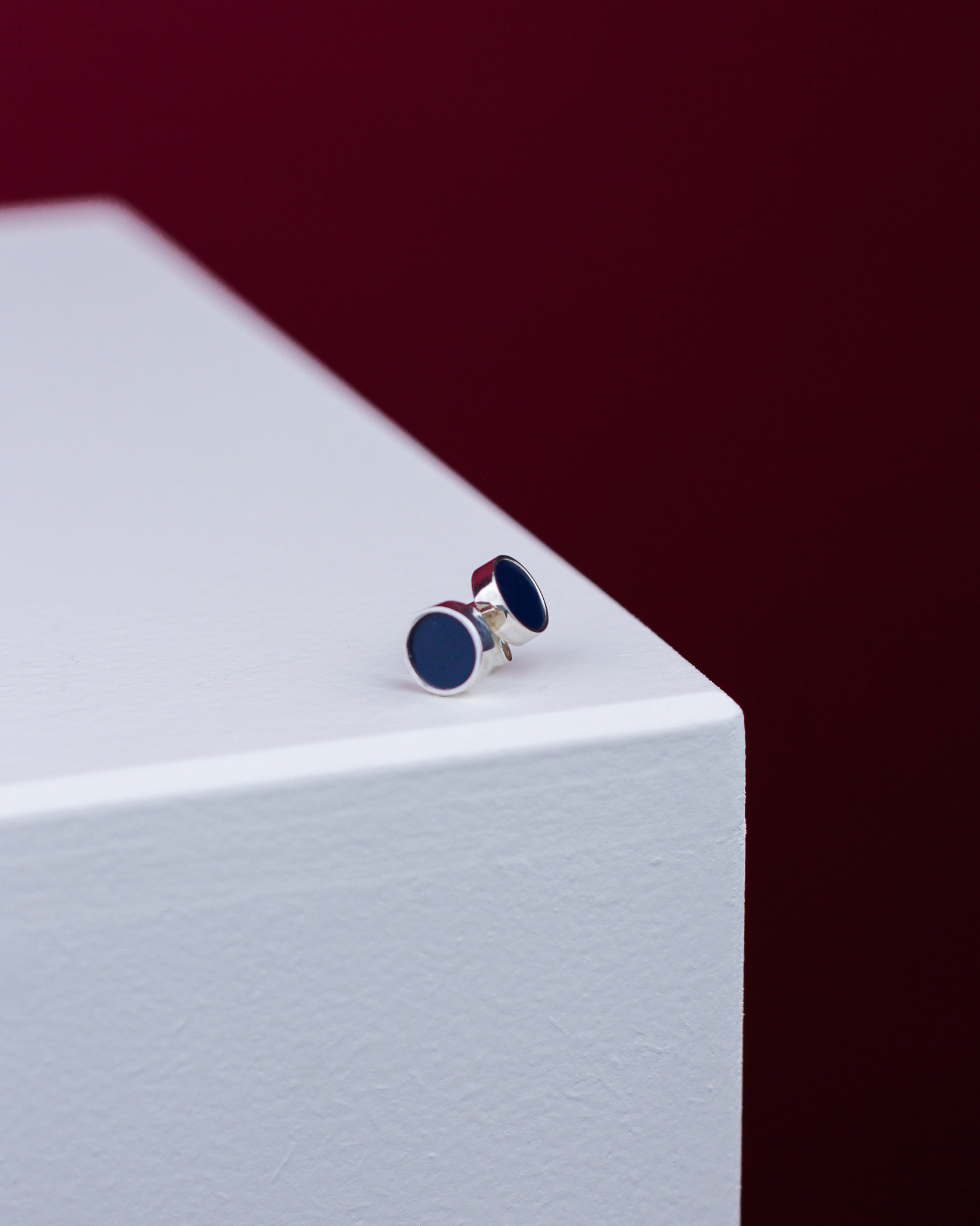Bilder Thomas Everlund, örhänge, ett par, blå plastlaminat och sterling silver, stämplat 925, M och TE