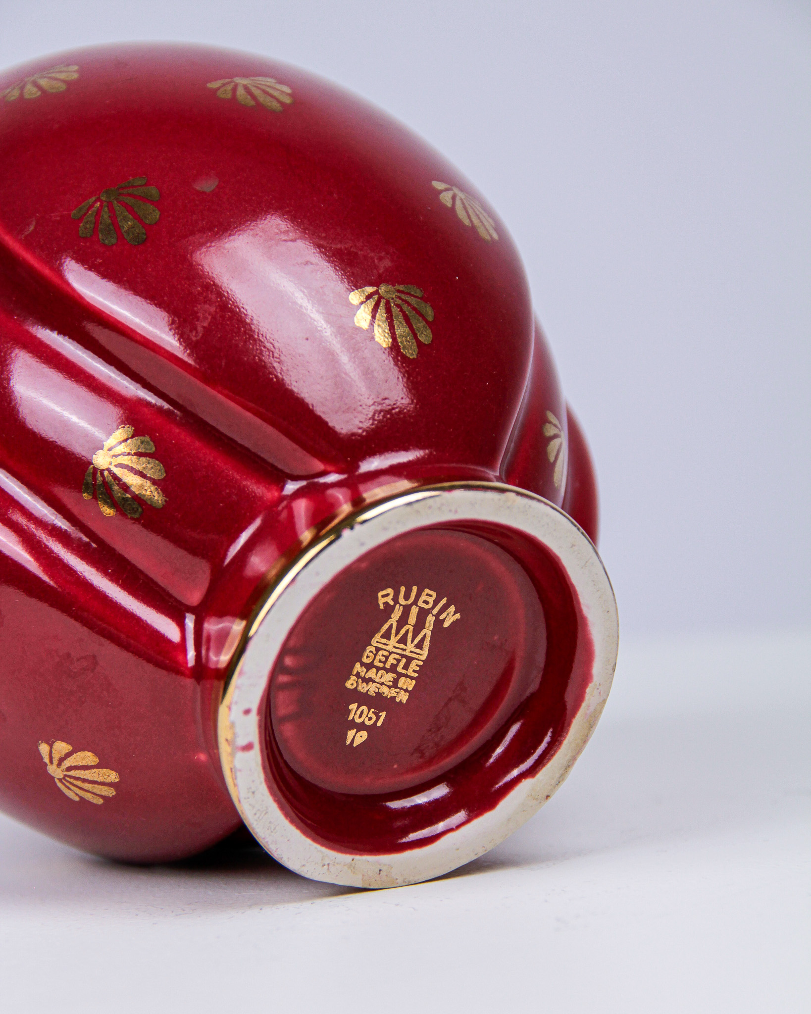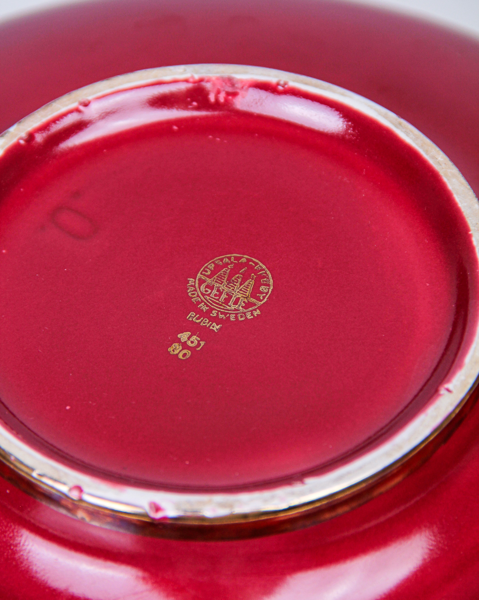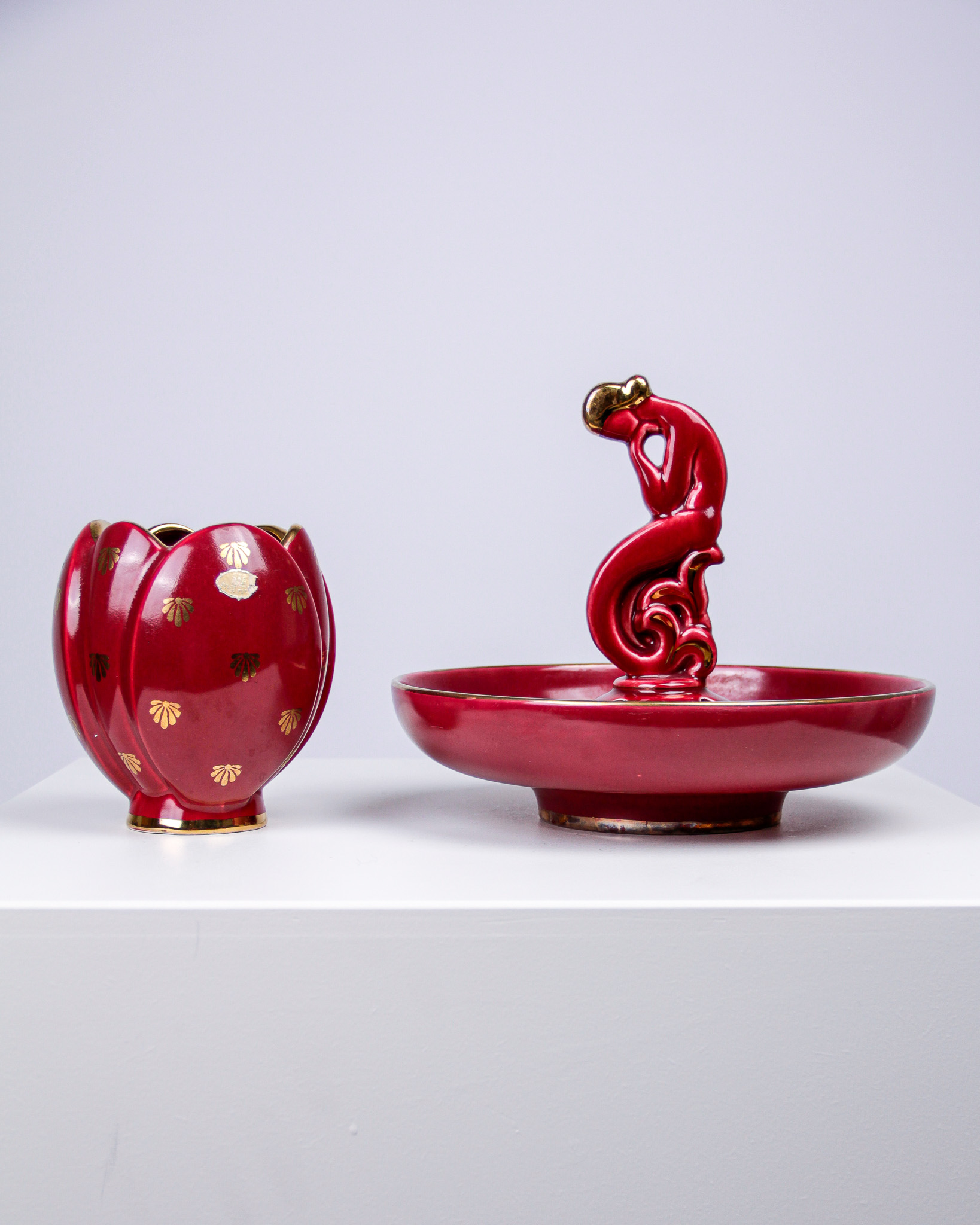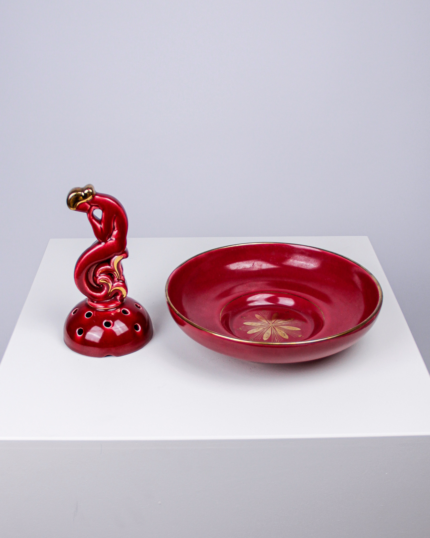 Auktioner Keramik & Porslin Arthur Percy, blomsteruppsats och vas, âRubinâ, rödglaserat stengods, tillverkarmĂ€rkta Upsala Ekeby Gefle